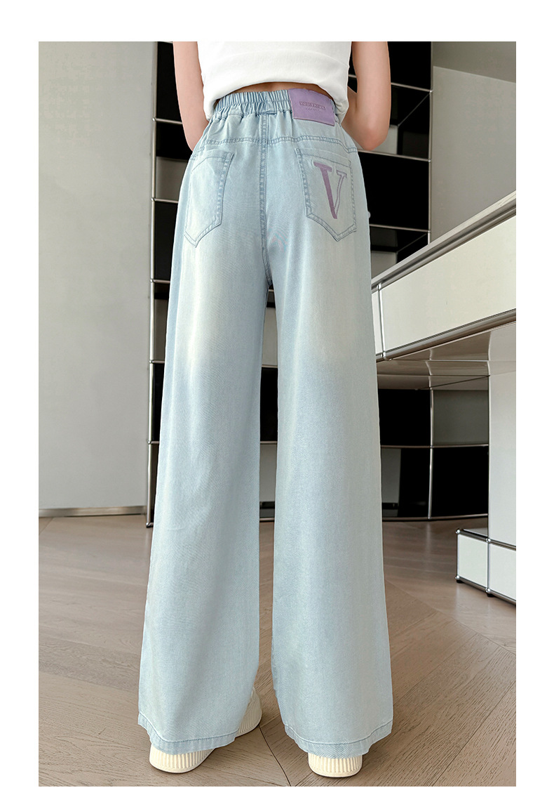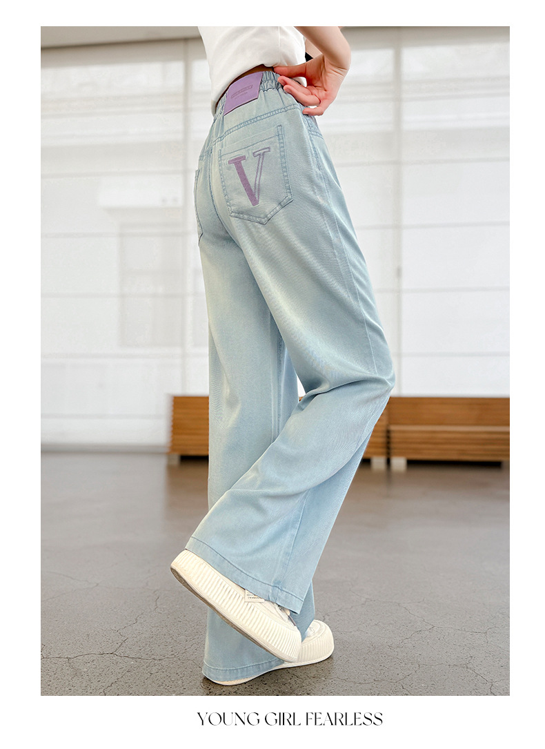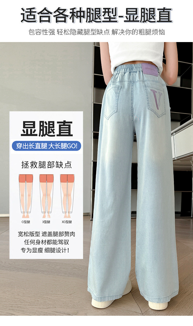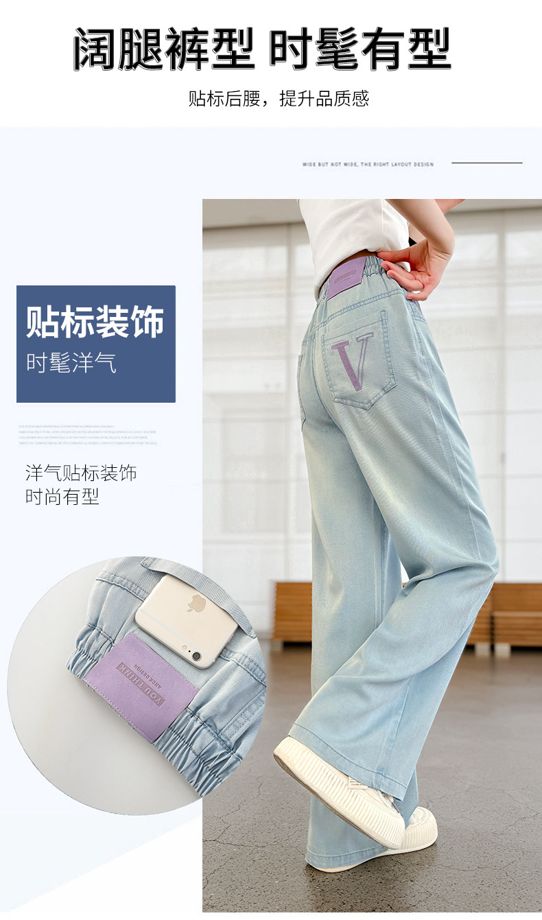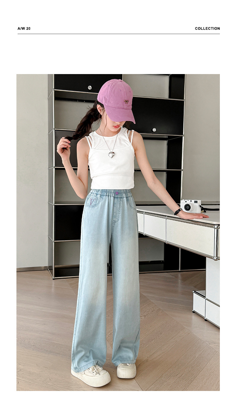 여아 바지 여름 2026 아동용 다용도 와이드 팬츠 중대형 아동용 텐셀 데님 스트레이트 롱 팬츠 블루 텐셀스토어 가기
