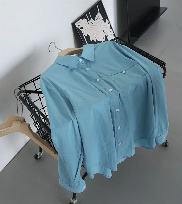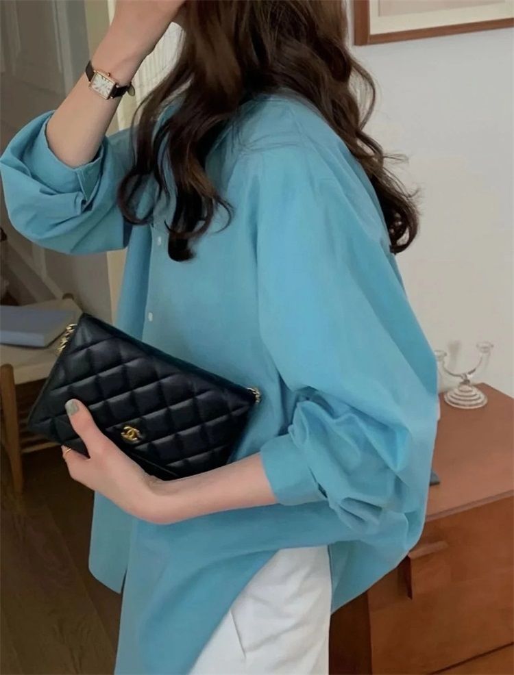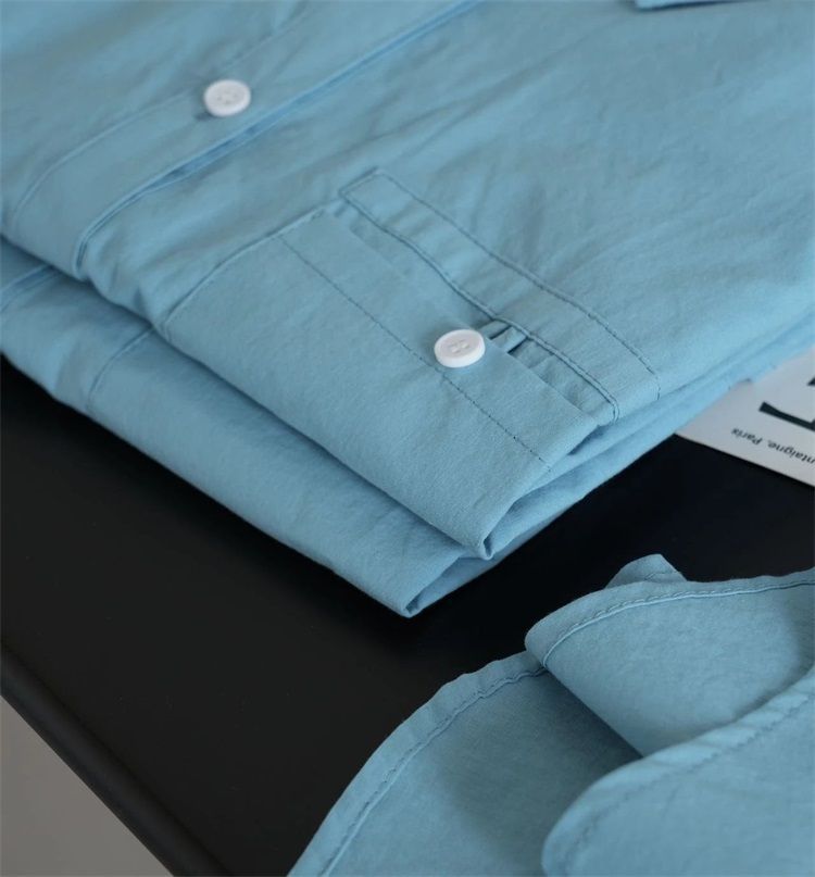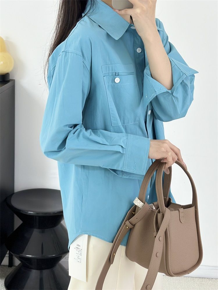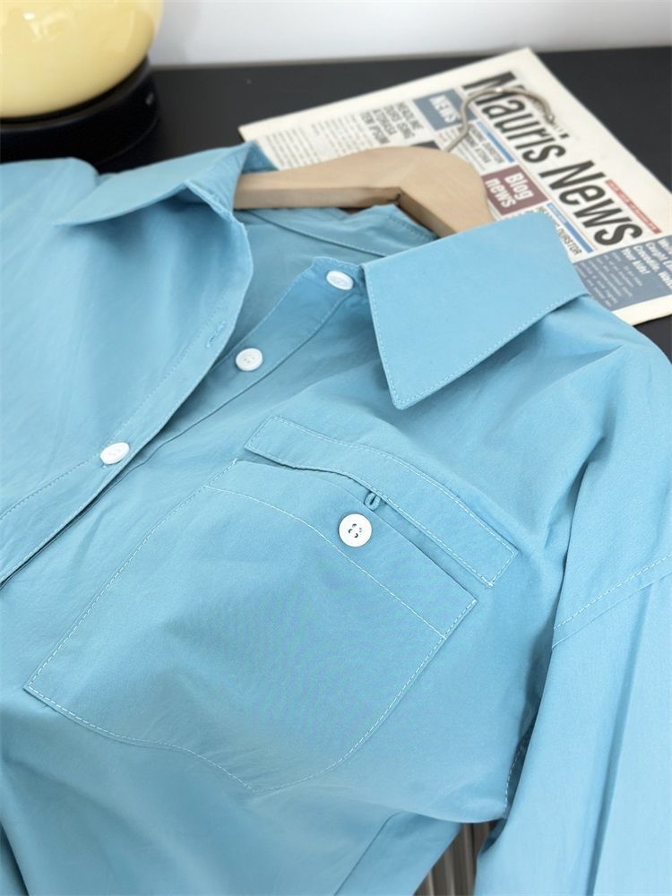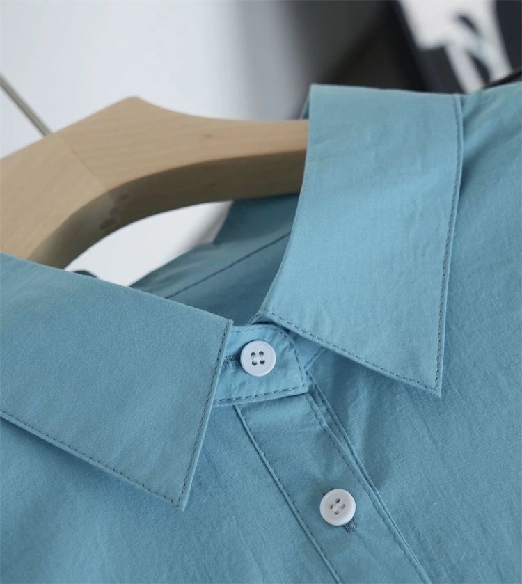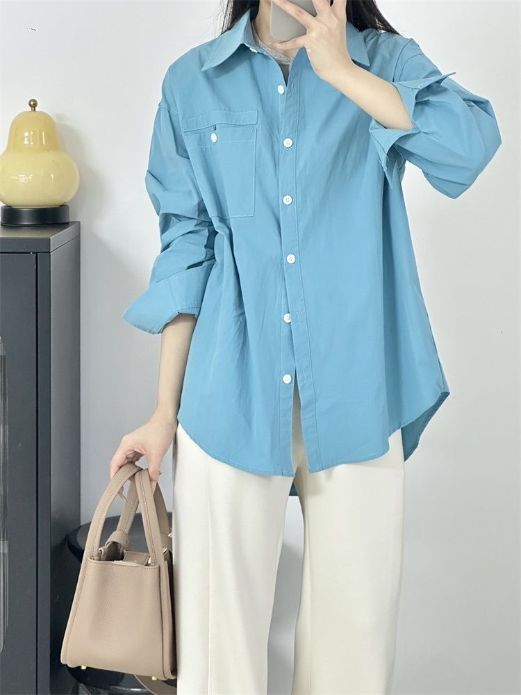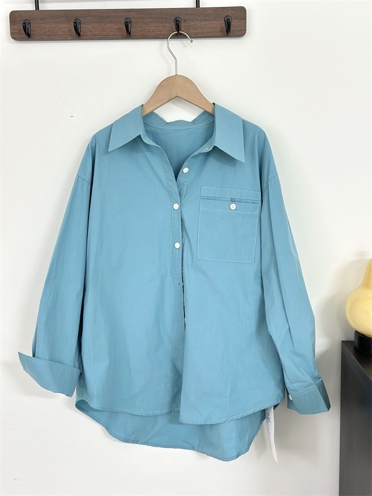 월든 레이크 블루 셔츠 100% 코튼 이른 봄 콜드 화이트 스킨 긴팔 루즈한 마이크로 와이드 드롭 숄더 슬리브 캐주얼 통근복스토어 가기