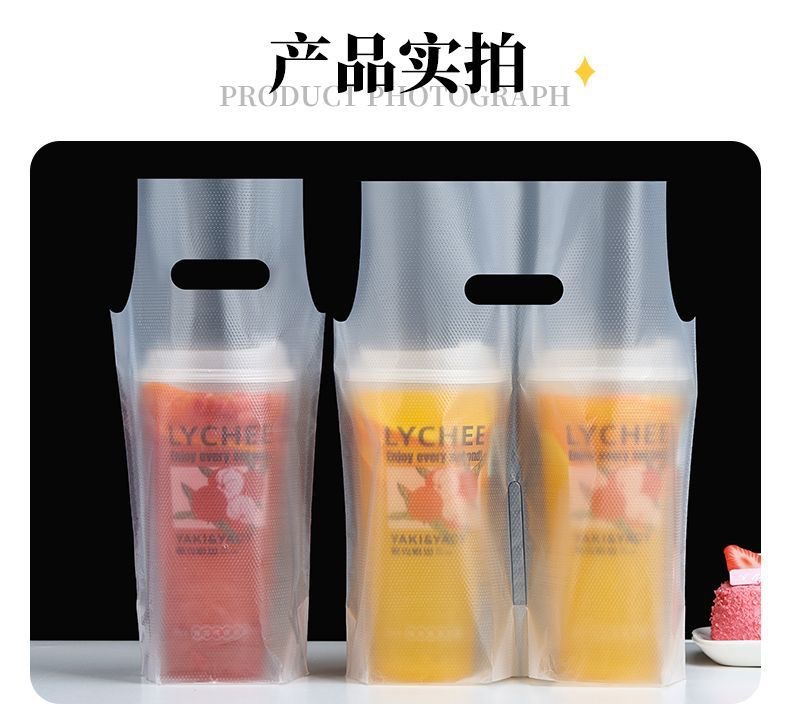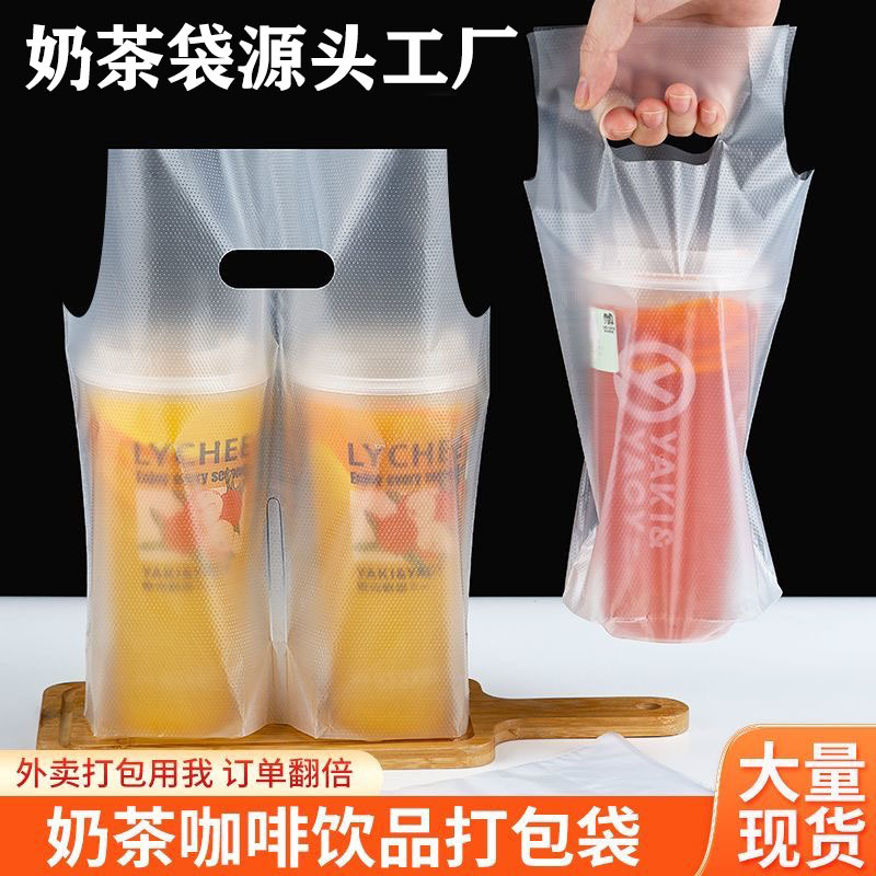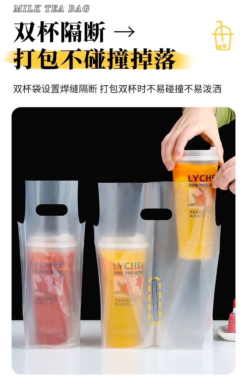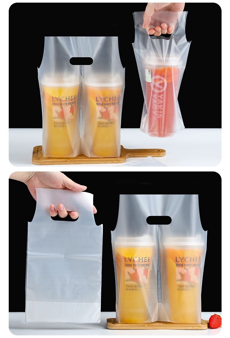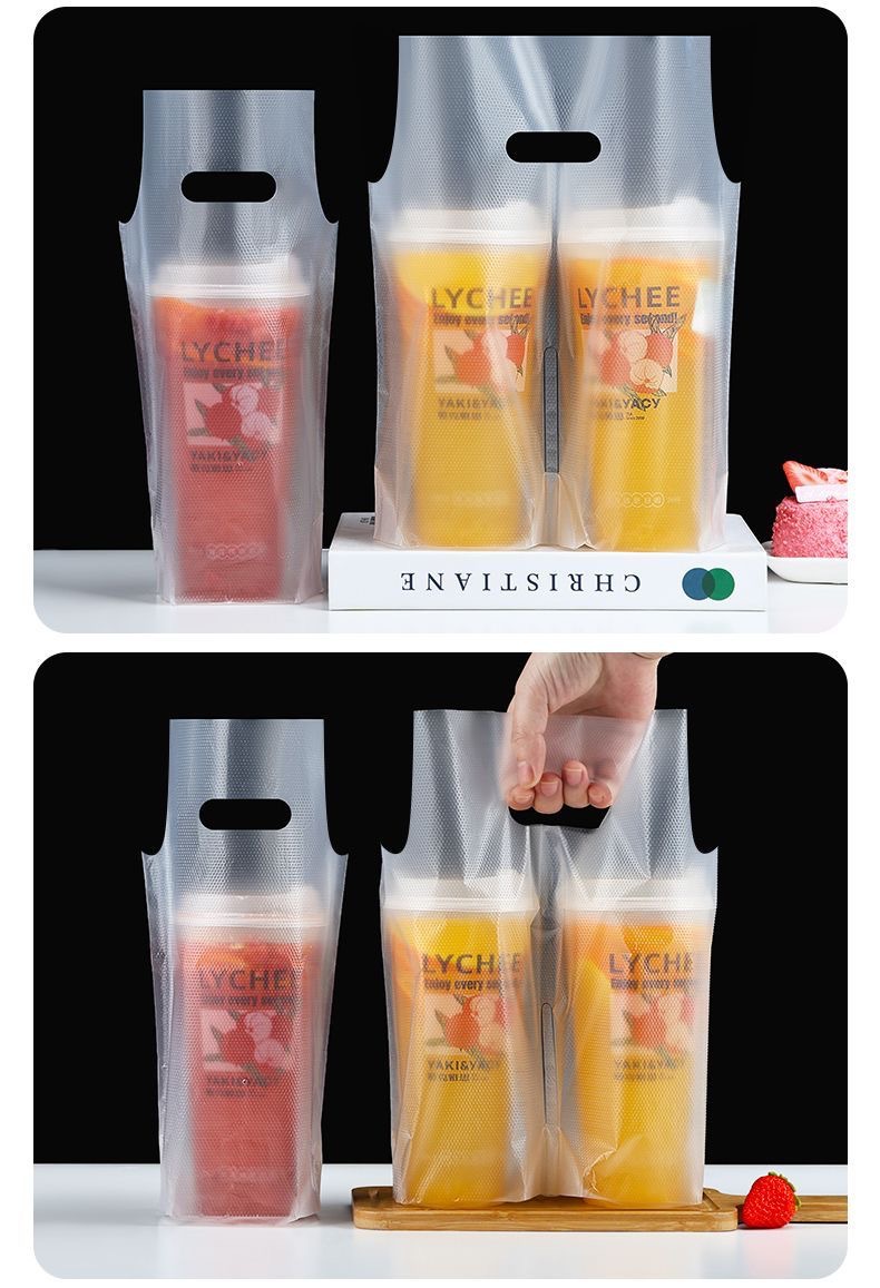 커피/밀크티 봉투, 플라스틱 봉투, 로고 인쇄, 두꺼운 테이크아웃 토트백, 싱글/더블컵 일회용 음료 포장 봉투