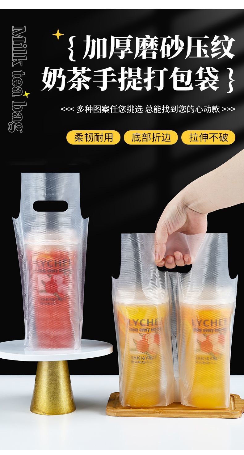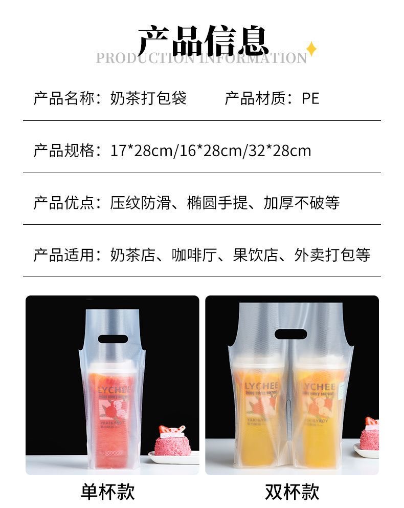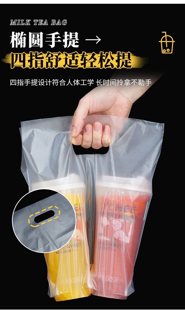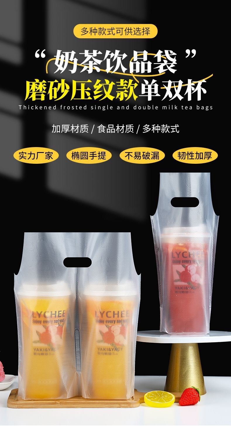 커피/밀크티 봉투, 플라스틱 봉투, 로고 인쇄, 두꺼운 테이크아웃 토트백, 싱글/더블컵 일회용 음료 포장 봉투