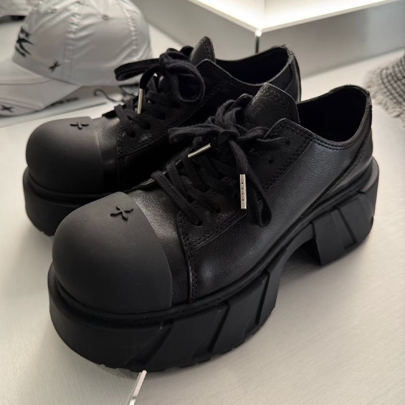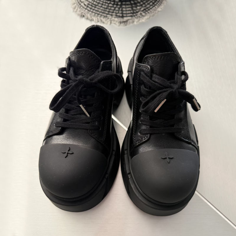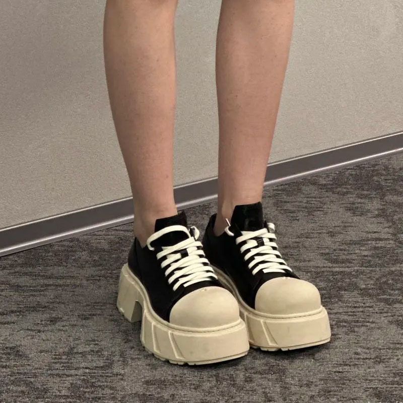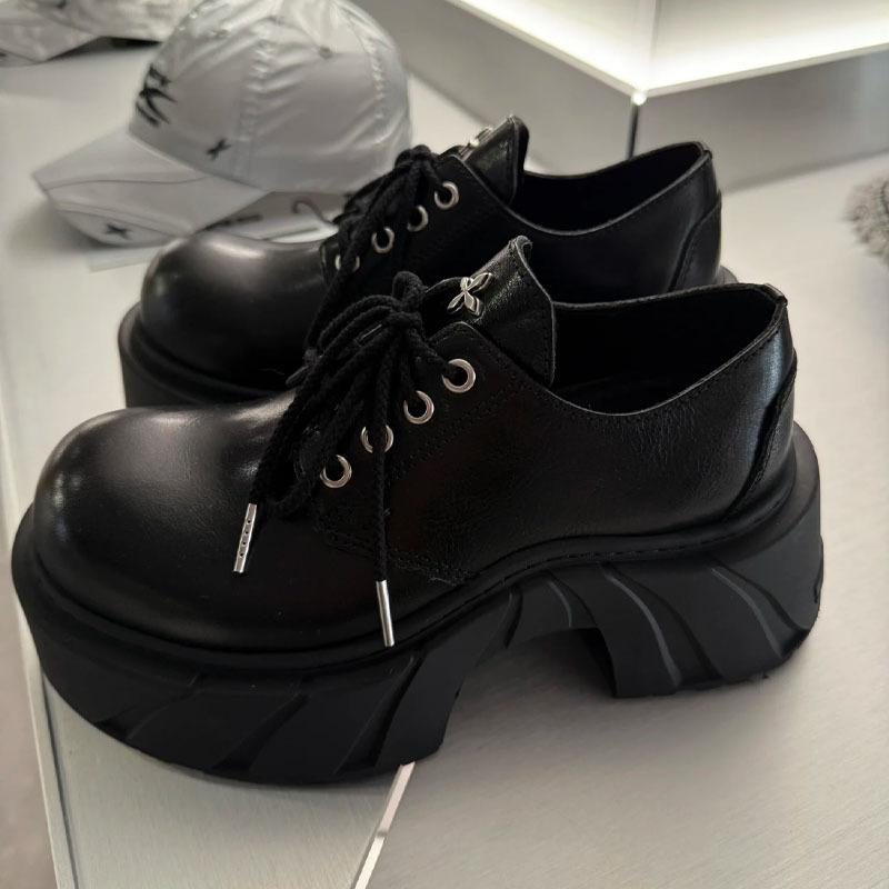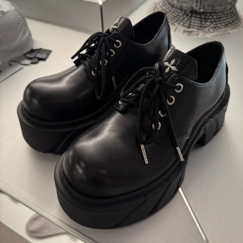 SMKK 팬텀 하이힐 스니커즈 두꺼운 밑창 가죽 여성화 흑백 더비 슈즈 키높이 캐주얼 가죽신발 다용도 여성 숏부츠스토어 가기