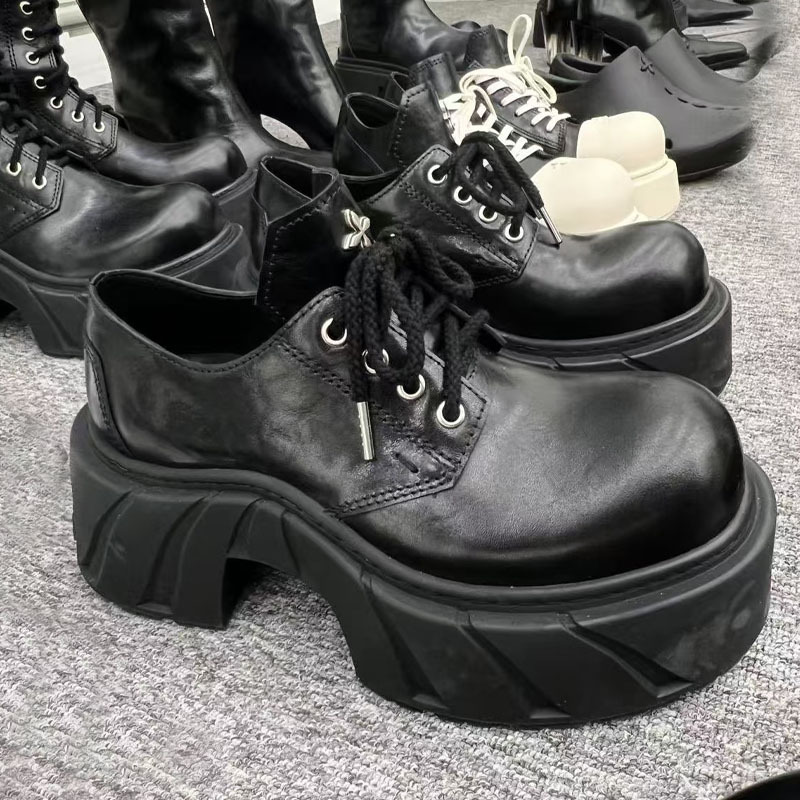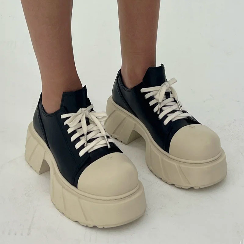 SMKK 팬텀 하이힐 스니커즈 두꺼운 밑창 가죽 여성화 흑백 더비 슈즈 키높이 캐주얼 가죽신발 다용도 여성 숏부츠