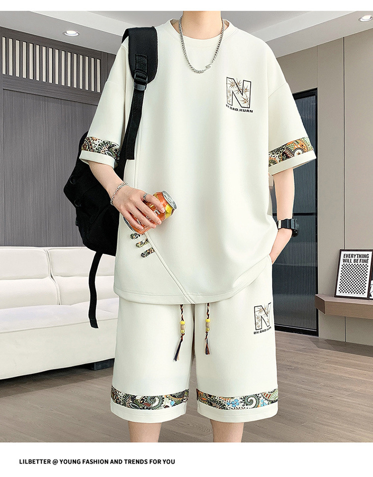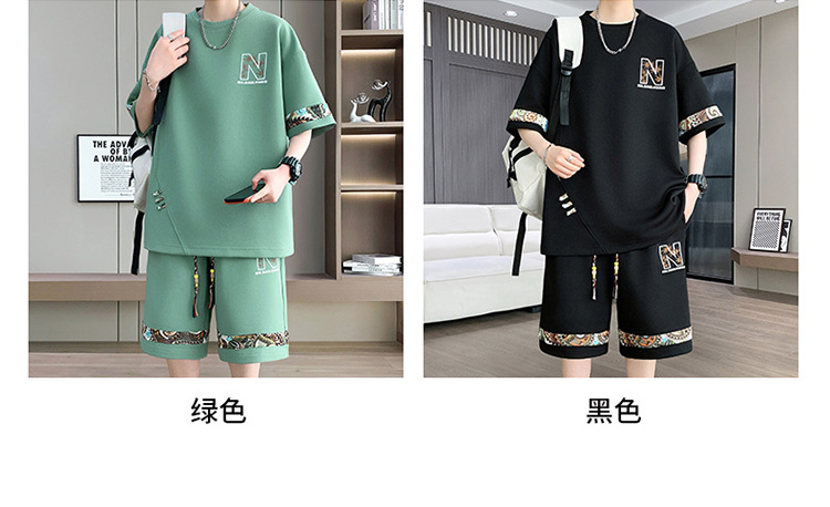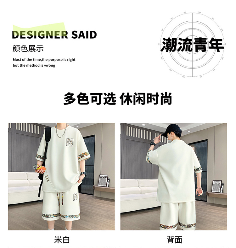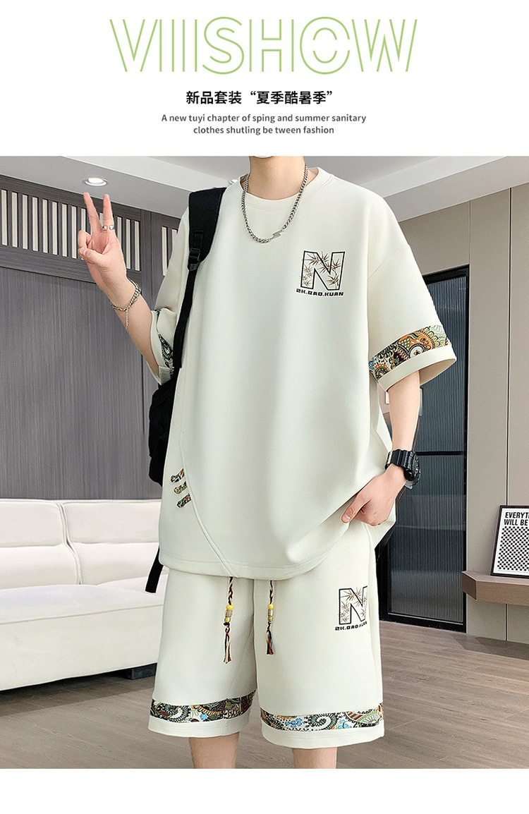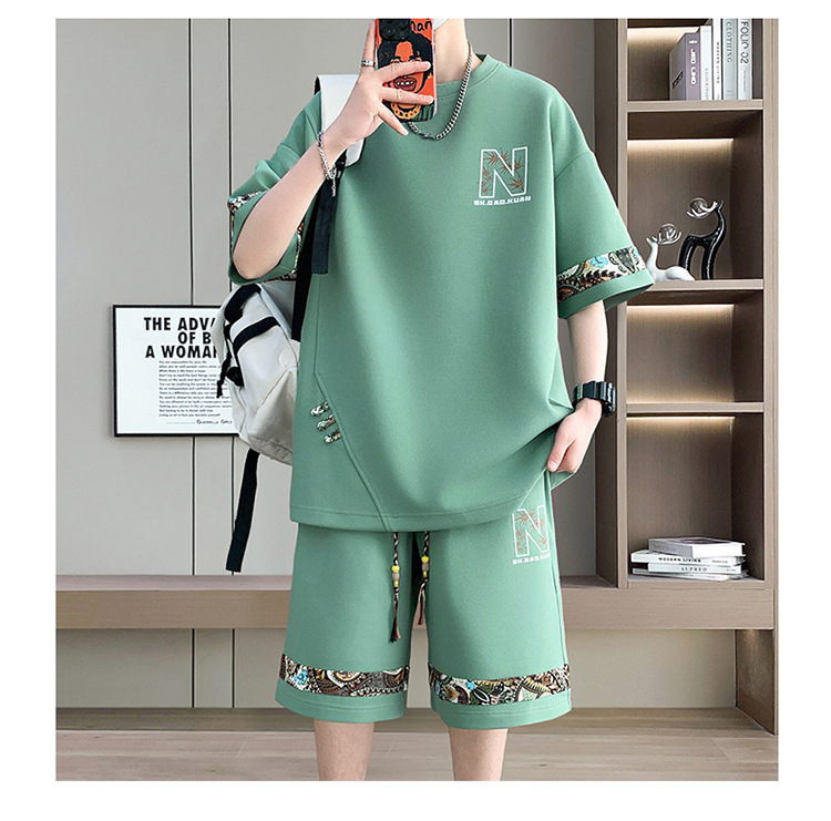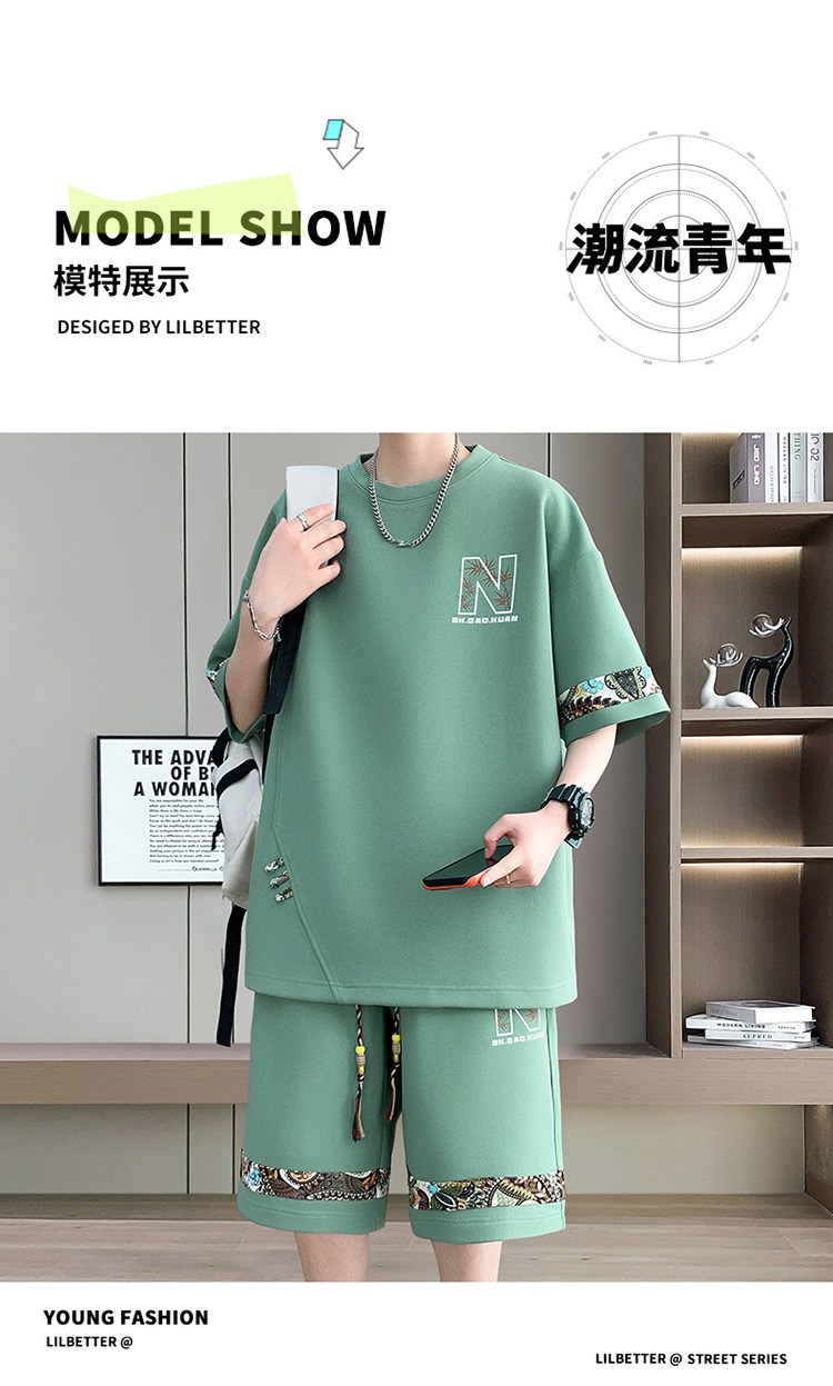 2025 새로운 폭발 세트 홍콩 스타일 청소년 패션 트렌드 조커 짧은 소매 반바지 남성스토어 가기