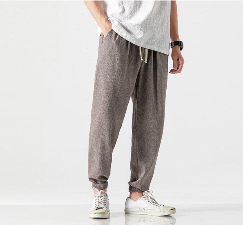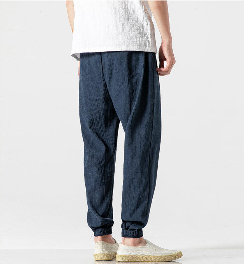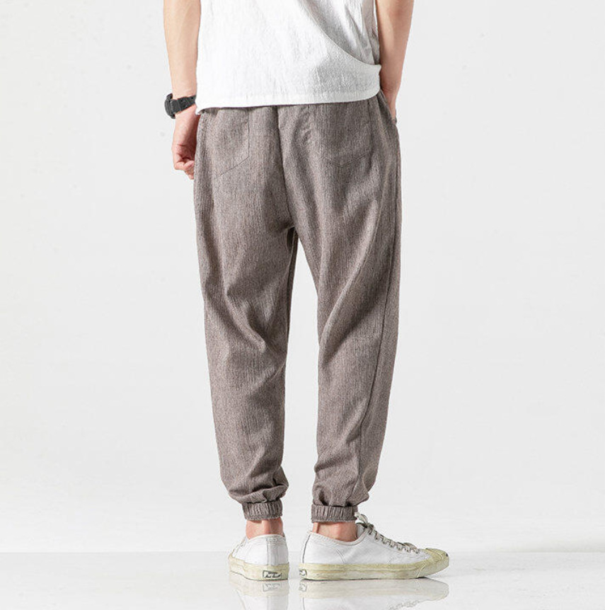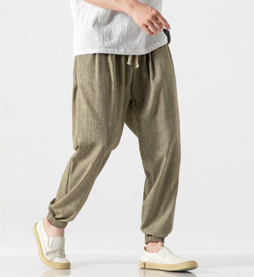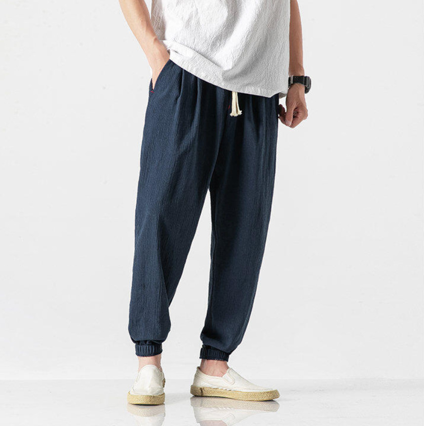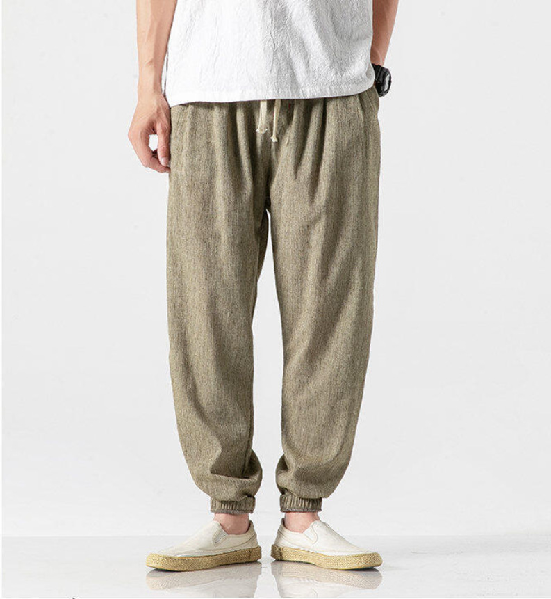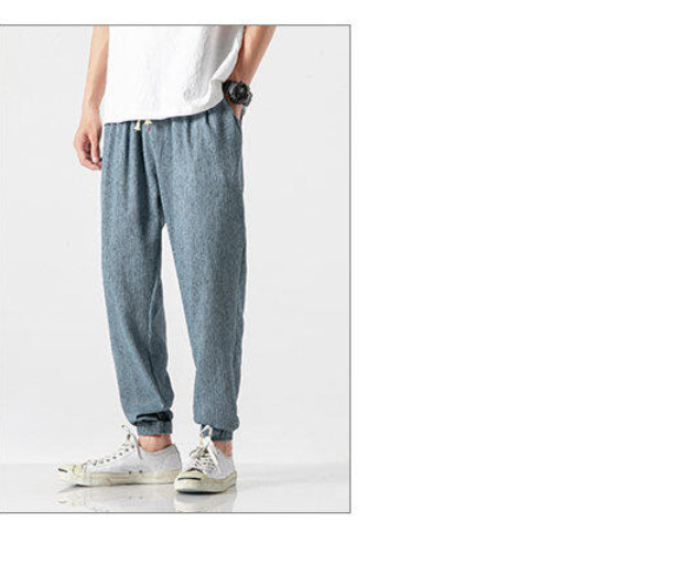 25 봄 여름 남성 중국 스타일 면 및 린넨 캐주얼 바지 일본 하렘 바지 린넨 청소년 루즈한 대형 작은 발 바지