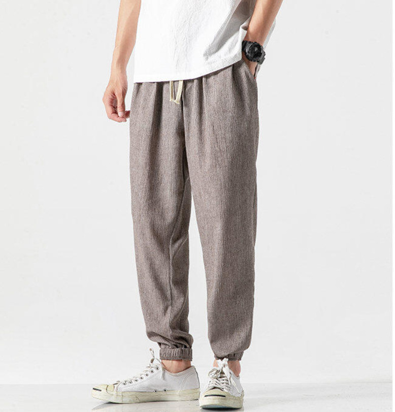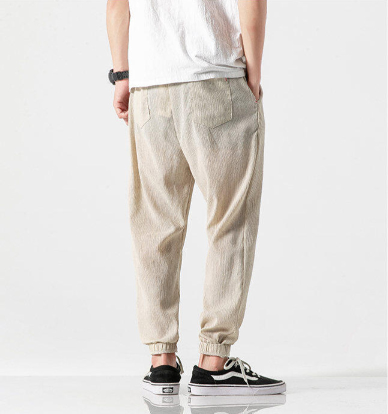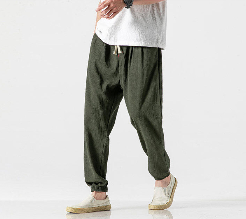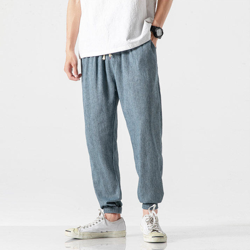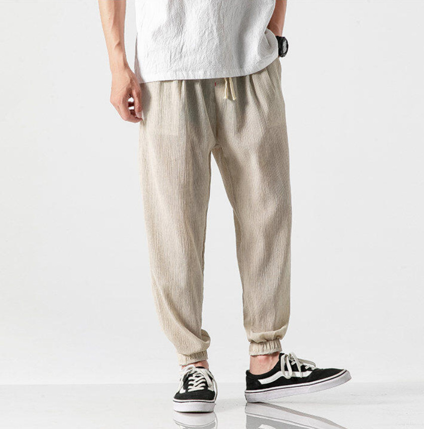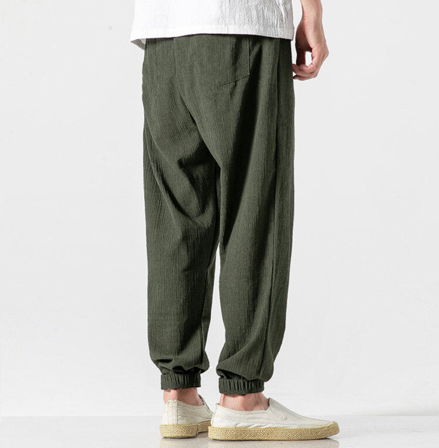 25 봄 여름 남성 중국 스타일 면 및 린넨 캐주얼 바지 일본 하렘 바지 린넨 청소년 루즈한 대형 작은 발 바지