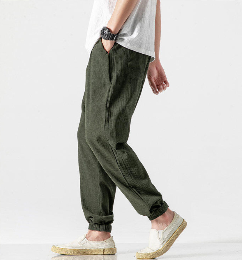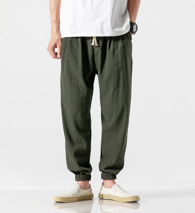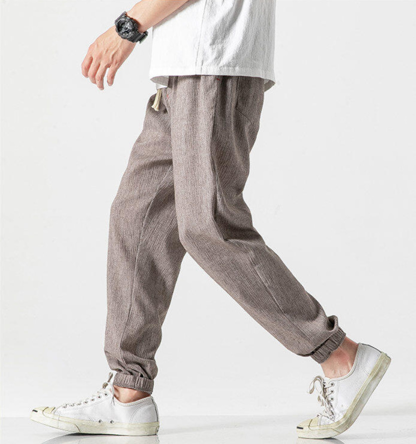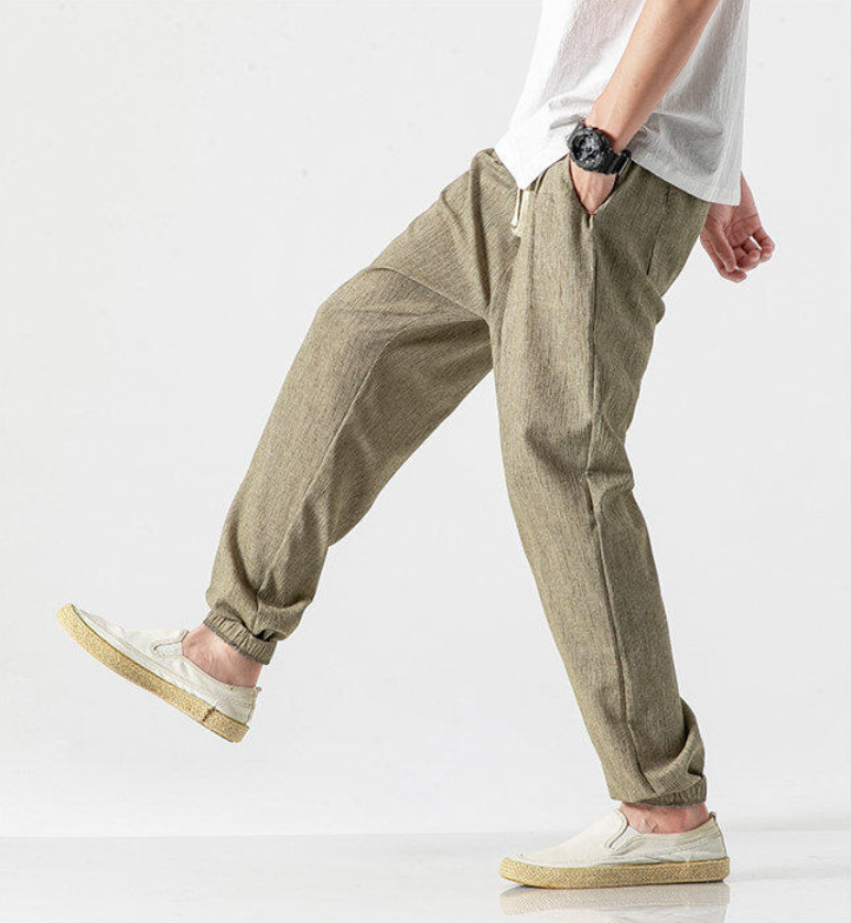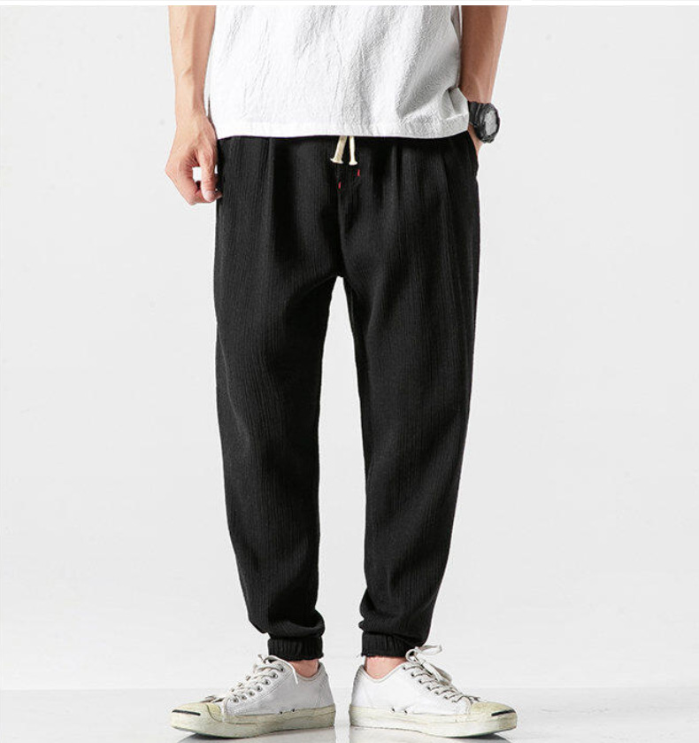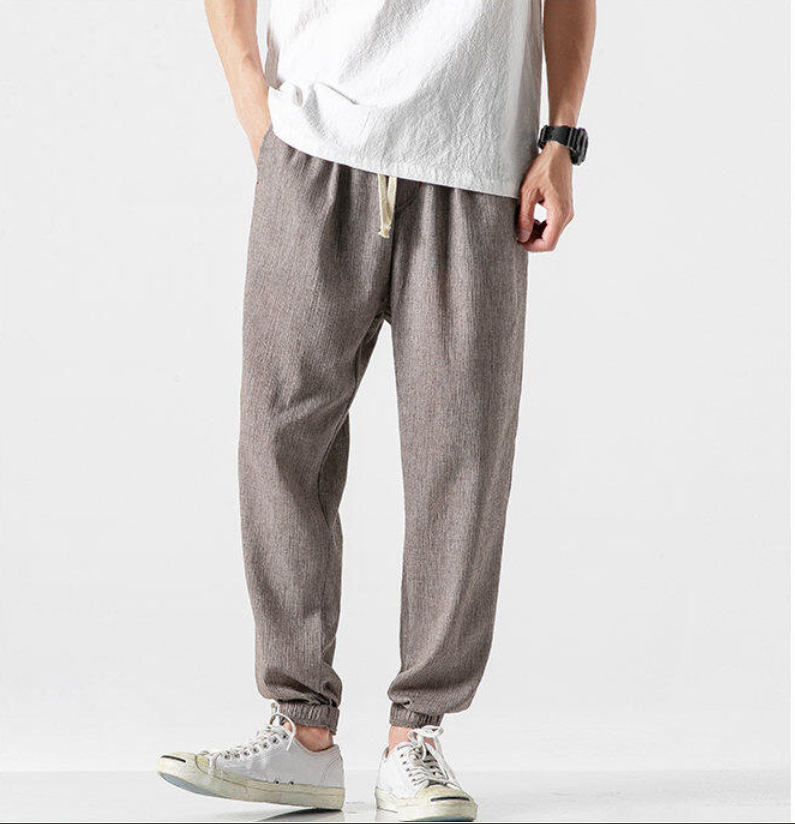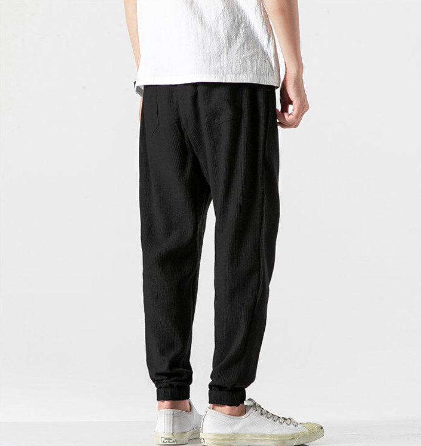 25 봄 여름 남성 중국 스타일 면 및 린넨 캐주얼 바지 일본 하렘 바지 린넨 청소년 루즈한 대형 작은 발 바지