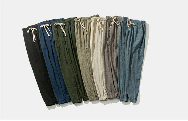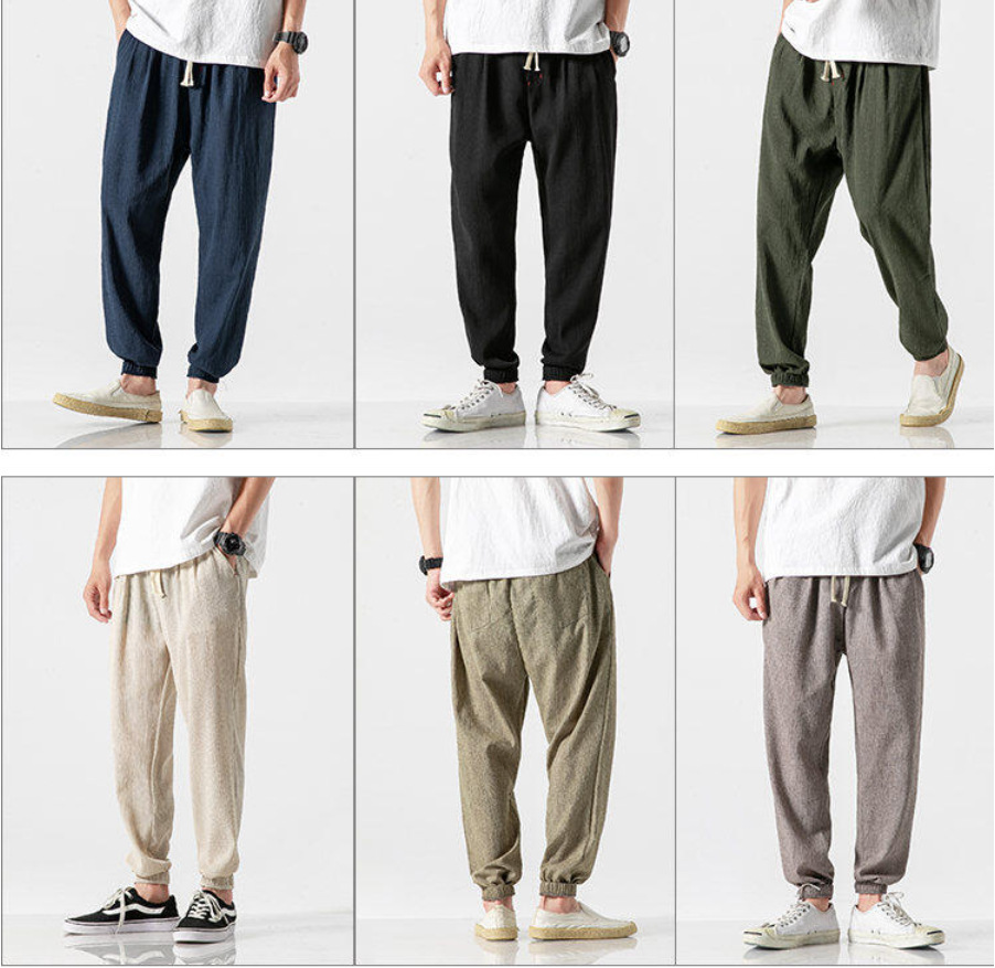 25 봄 여름 남성 중국 스타일 면 및 린넨 캐주얼 바지 일본 하렘 바지 린넨 청소년 루즈한 대형 작은 발 바지스토어 가기