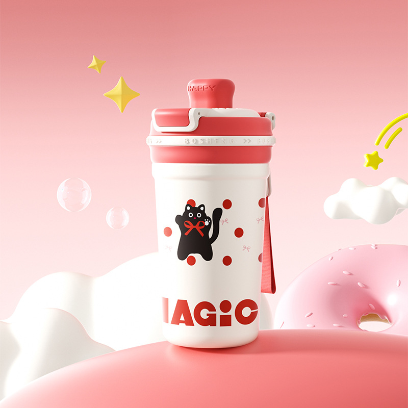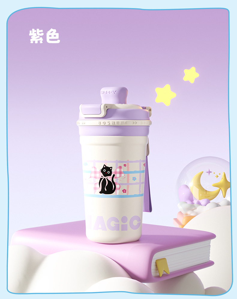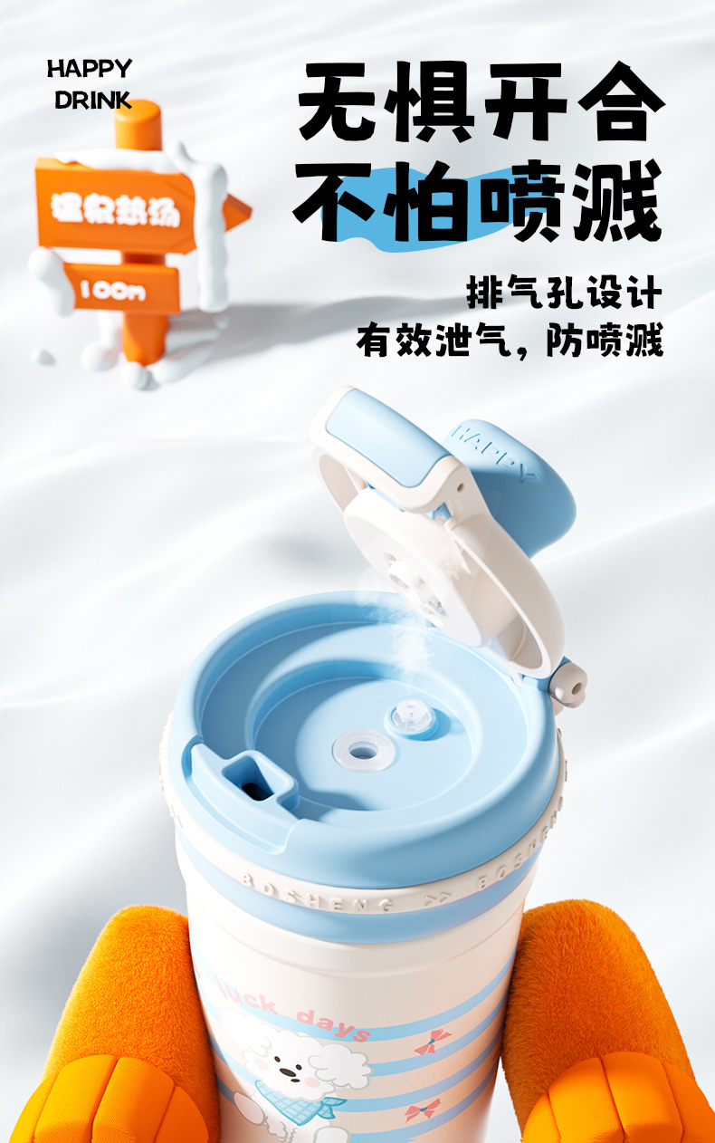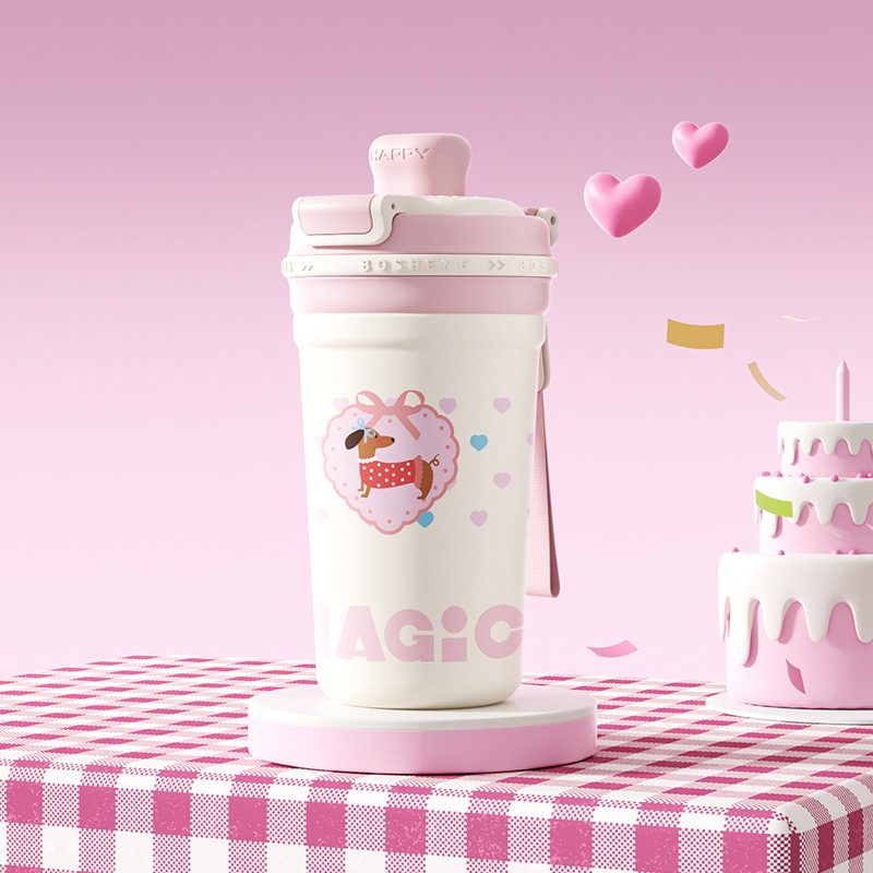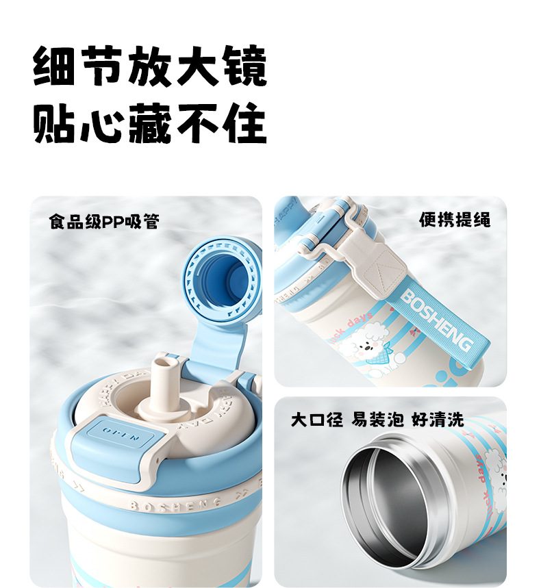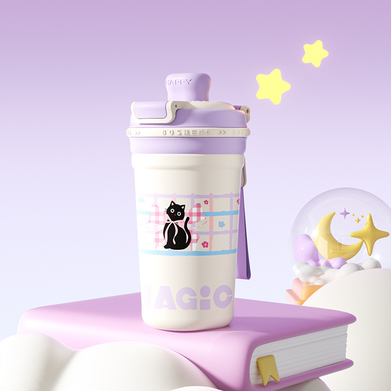 높은 색상 가치 커피 보온병 컵 소녀 2025 새로운 더블 마시는 컵 대형 학생 빨대 동반 컵