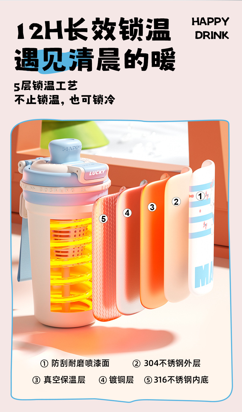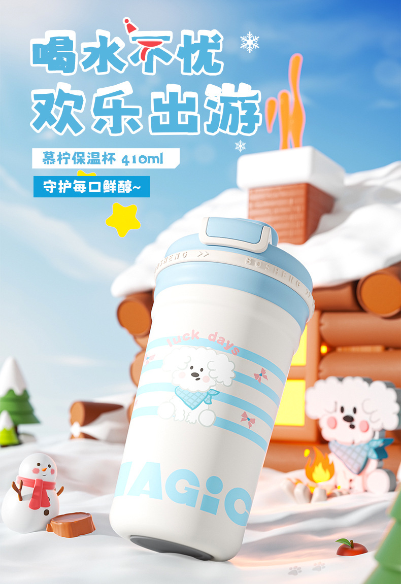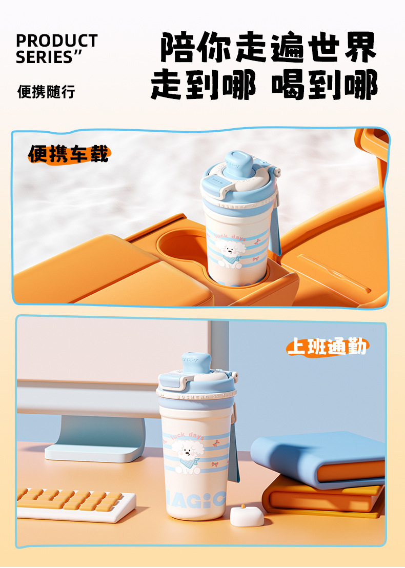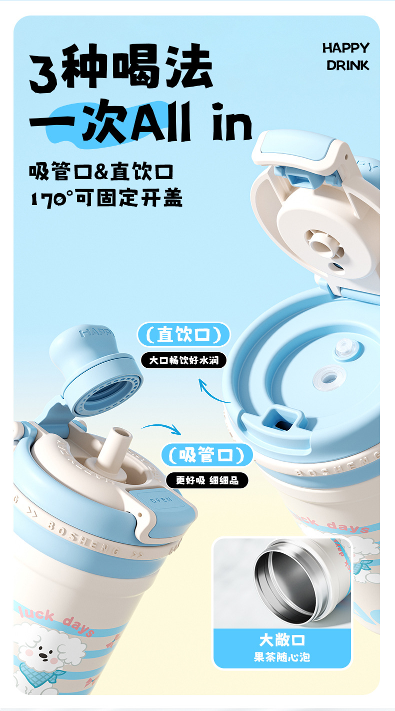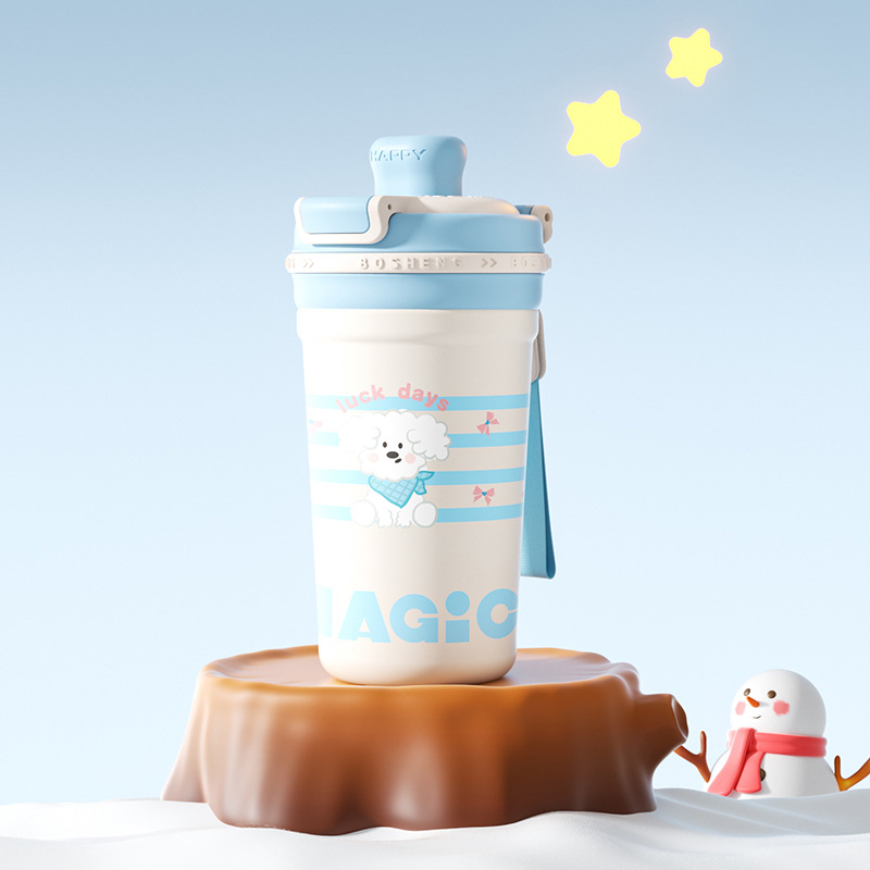 높은 색상 가치 커피 보온병 컵 소녀 2025 새로운 더블 마시는 컵 대형 학생 빨대 동반 컵