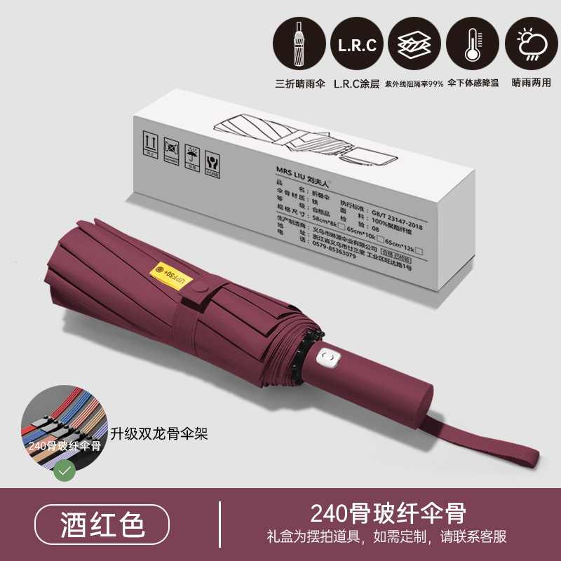 • 전자동 플래그십 모델 [240 유리섬유 방풍 우산 갈비뼈 업그레이드 및 강화, 비가 오나 눈이 오나 사용 가능] 버건디