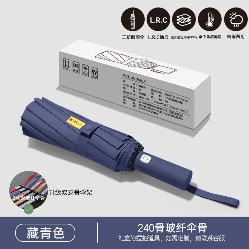 • 전자동 플래그십 모델 [240 유리섬유 방풍 우산 갈비뼈 업그레이드 및 강화, 비가 오나 눈이 오나 사용 가능] 네이비 블루