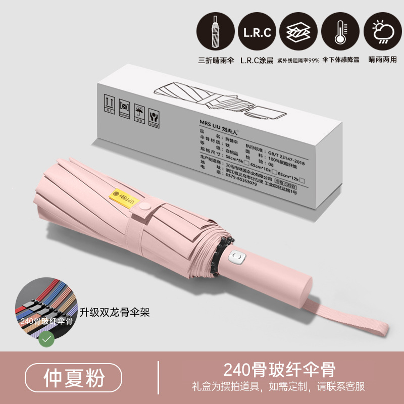 • 전자동 플래그십 모델 [240 유리섬유 방풍 우산 갈비뼈 업그레이드 및 강화, 비가 오나 눈이 오나 사용 가능] 한여름 핑크