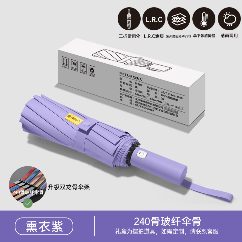 • 전자동 플래그십 모델 [240 유리섬유 방풍 우산 갈비뼈 업그레이드 및 강화, 비가 오나 눈이 오나 사용 가능] 라벤더 퍼플