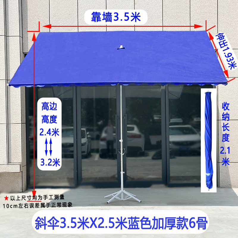• [경사우산] 블루 3.5X 2.5m 두꺼운 6갈비 + 접이식 베이스