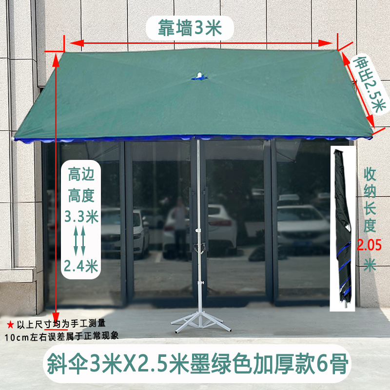 • [경사우산] 다크그린 3X 2.5m 두꺼운 6갈비 + 접이식 베이스