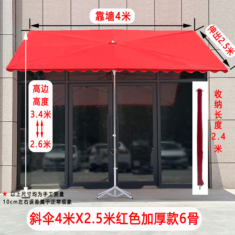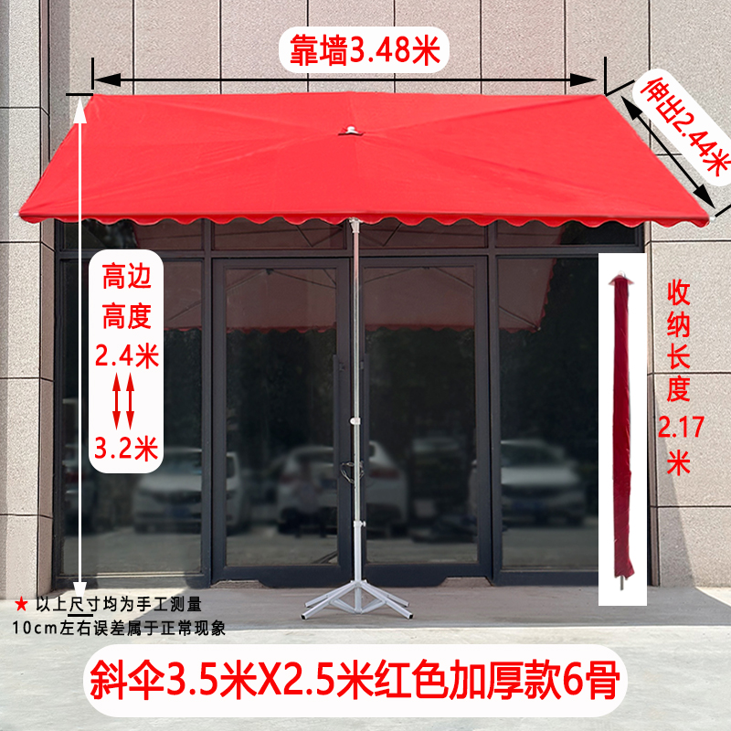 • [경사우산] 레드 3.5X 2.5m 두꺼운 6갈비 + 접이식 베이스
