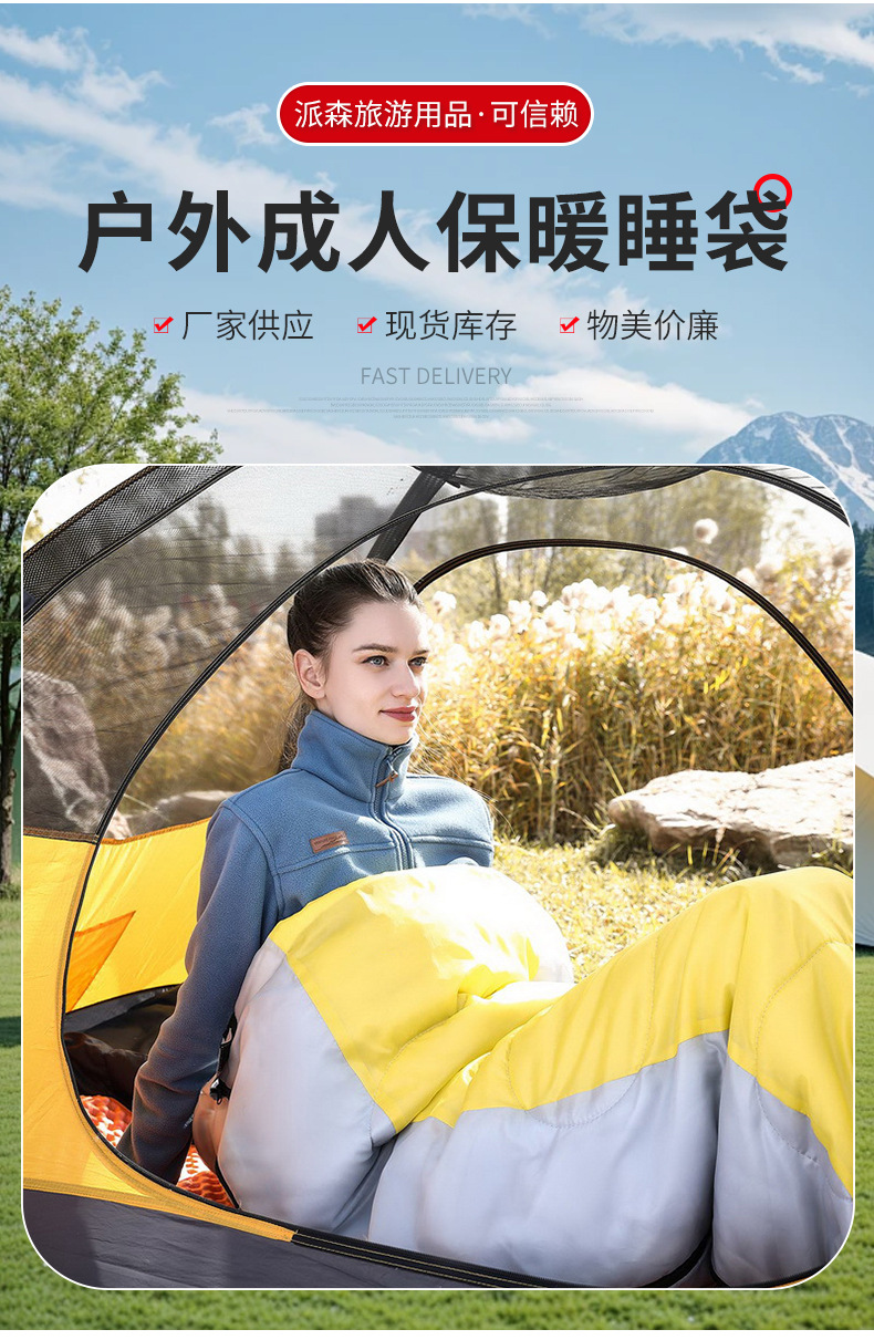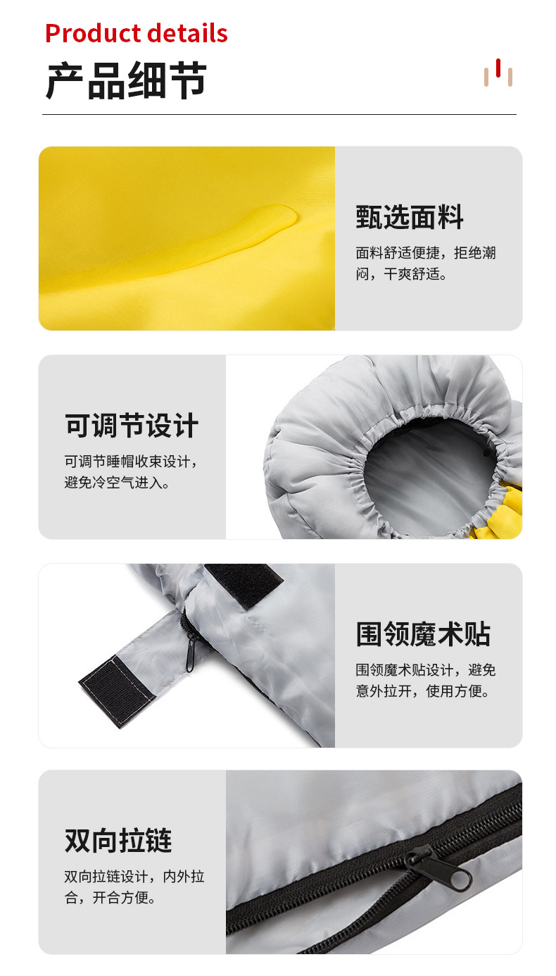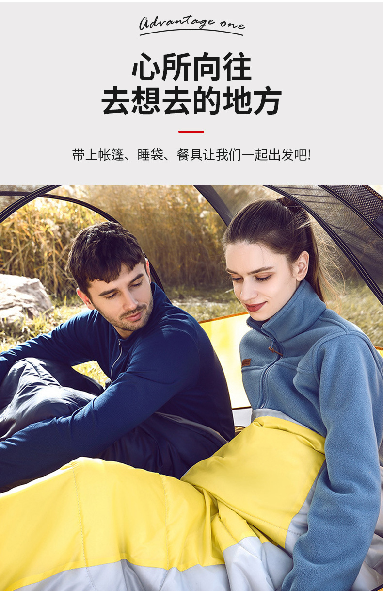 야외 성인 따뜻한 침낭, 확대 및 확장, 기계 세탁 가능한 캠핑 침낭, 방한 및 먼지 방지 제조업체 도매스토어 가기