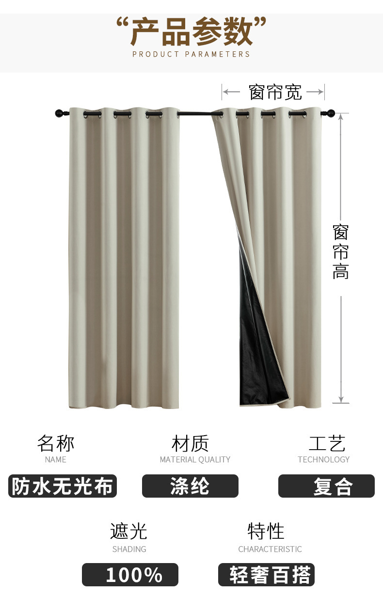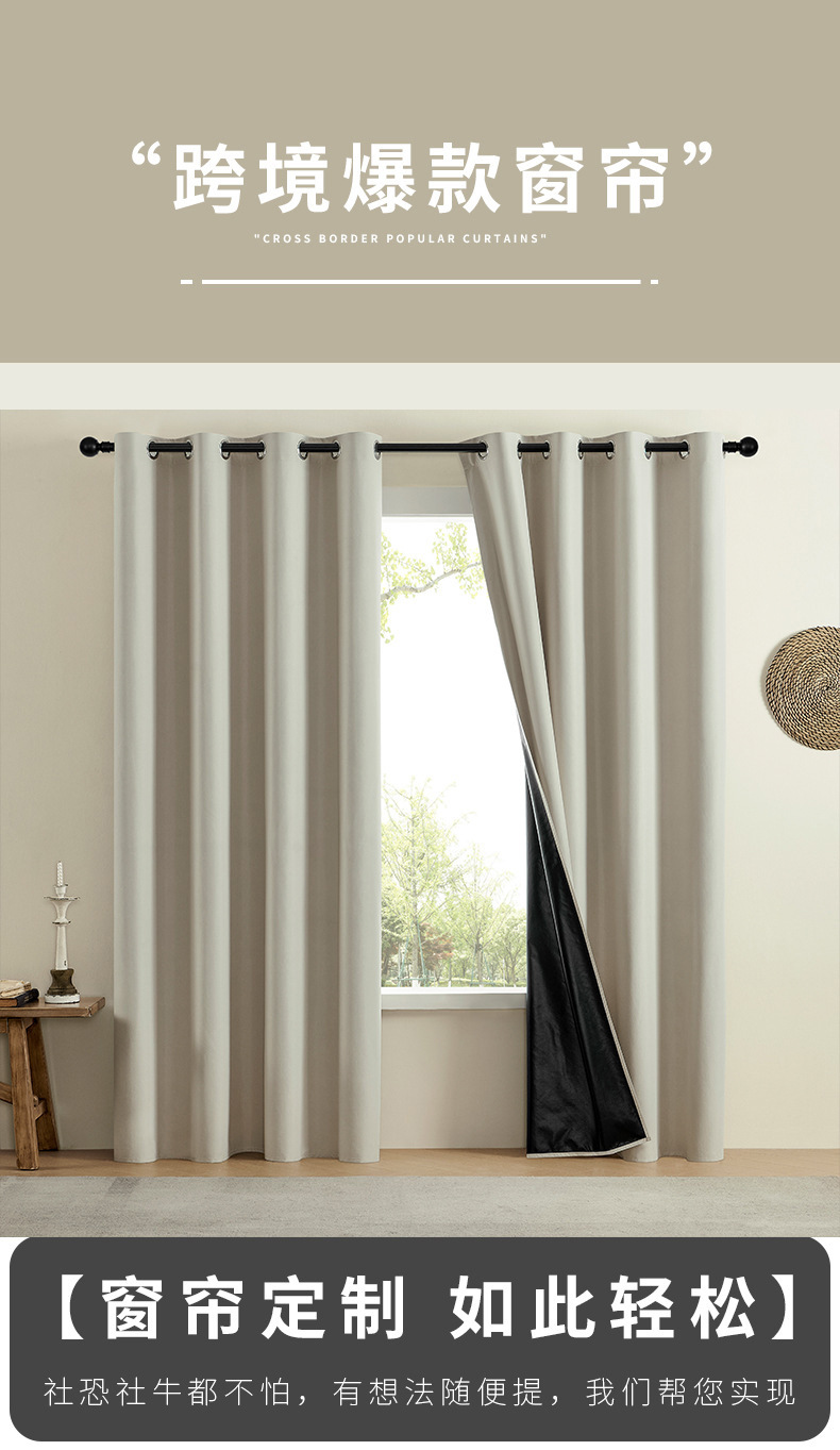 외국 무역용 코팅 완전 암막 커튼, 거실 및 침실용 고급 무타공 암막 천, 두꺼운 완제품 암막 커튼