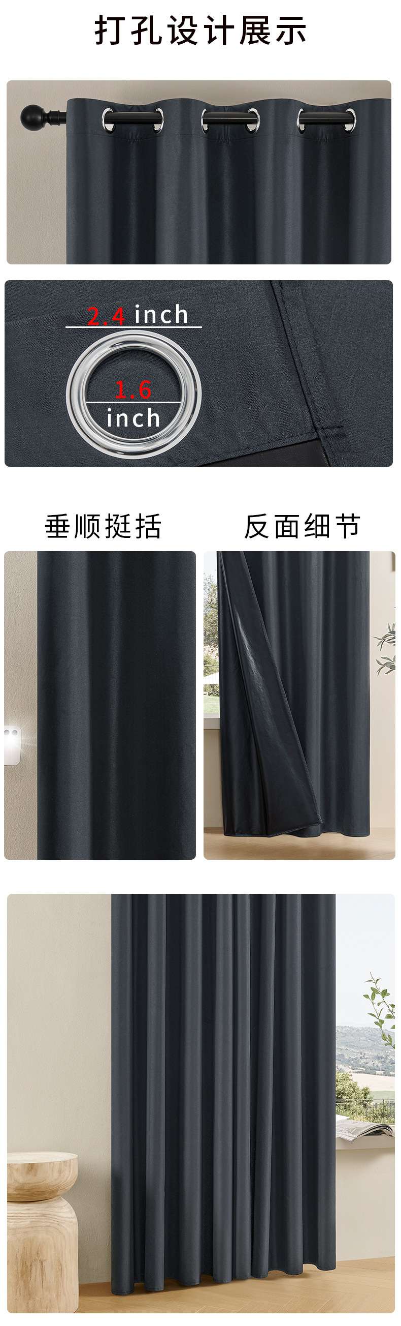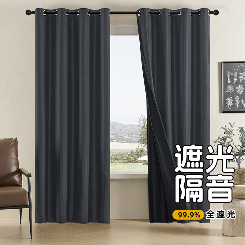 외국 무역용 코팅 완전 암막 커튼, 거실 및 침실용 고급 무타공 암막 천, 두꺼운 완제품 암막 커튼스토어 가기