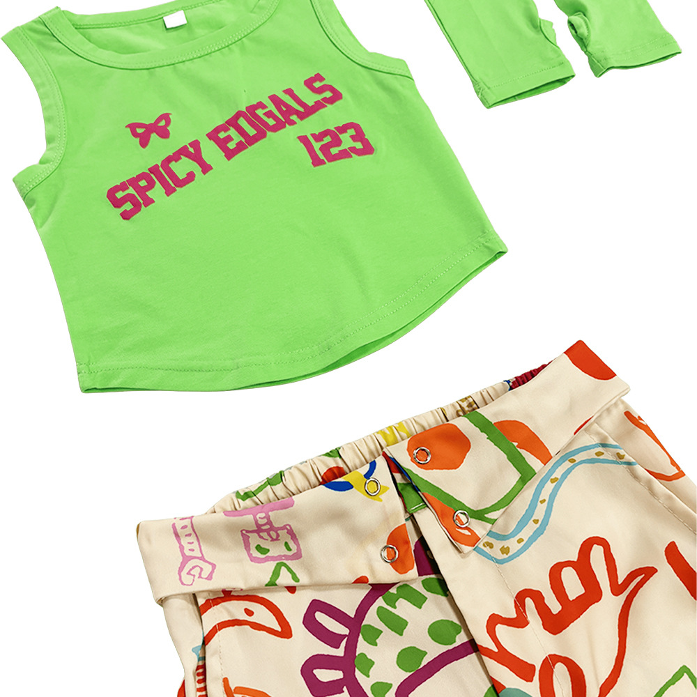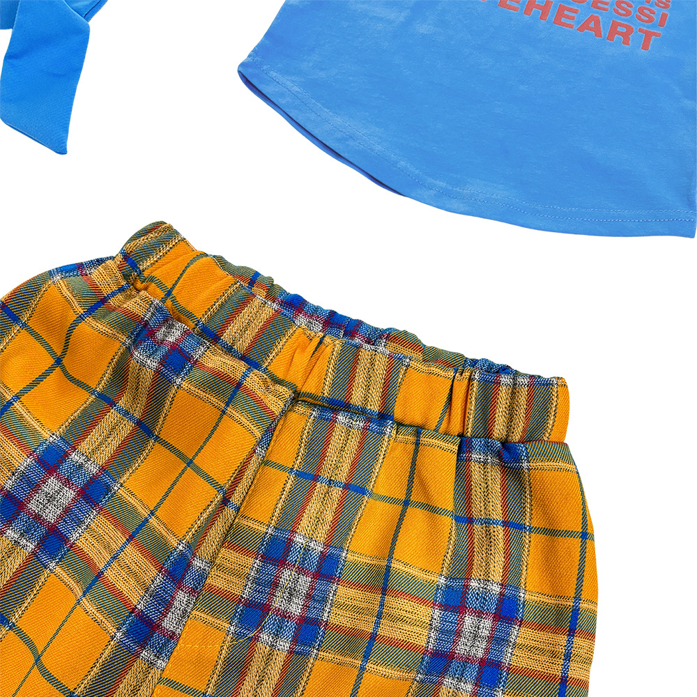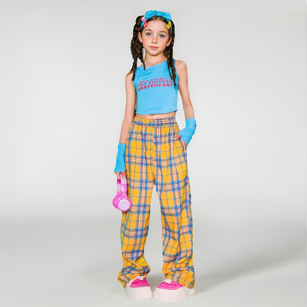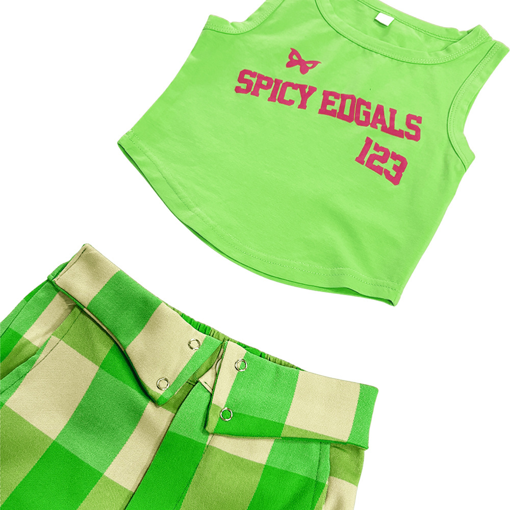 EW 대외 무역 아동복 큰 어린이를위한 새로운 스타일 소녀 봄, 여름 편지 조끼 격자 무늬 바지 정장 DTZ1156-D