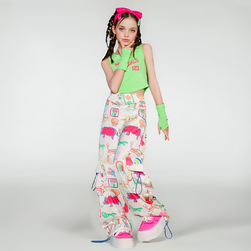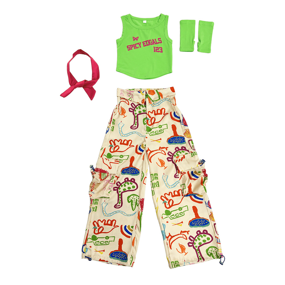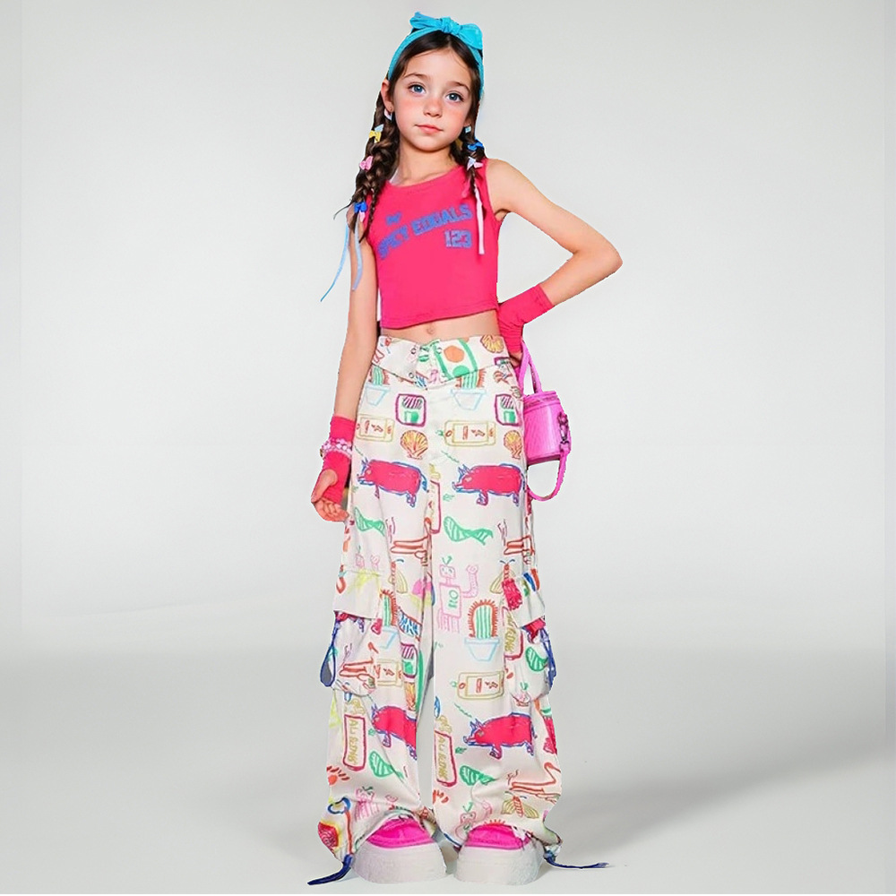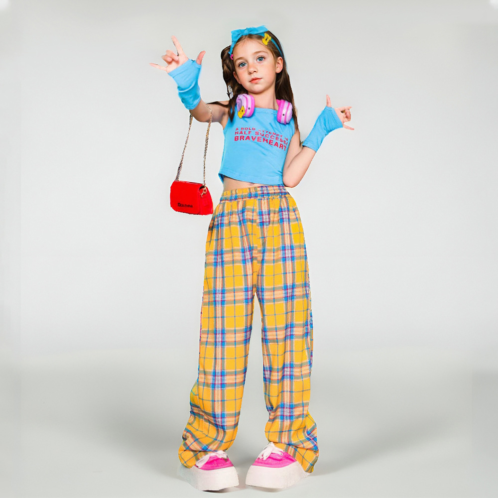 EW 대외 무역 아동복 큰 어린이를위한 새로운 스타일 소녀 봄, 여름 편지 조끼 격자 무늬 바지 정장 DTZ1156-D