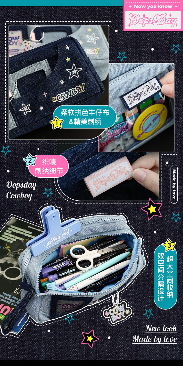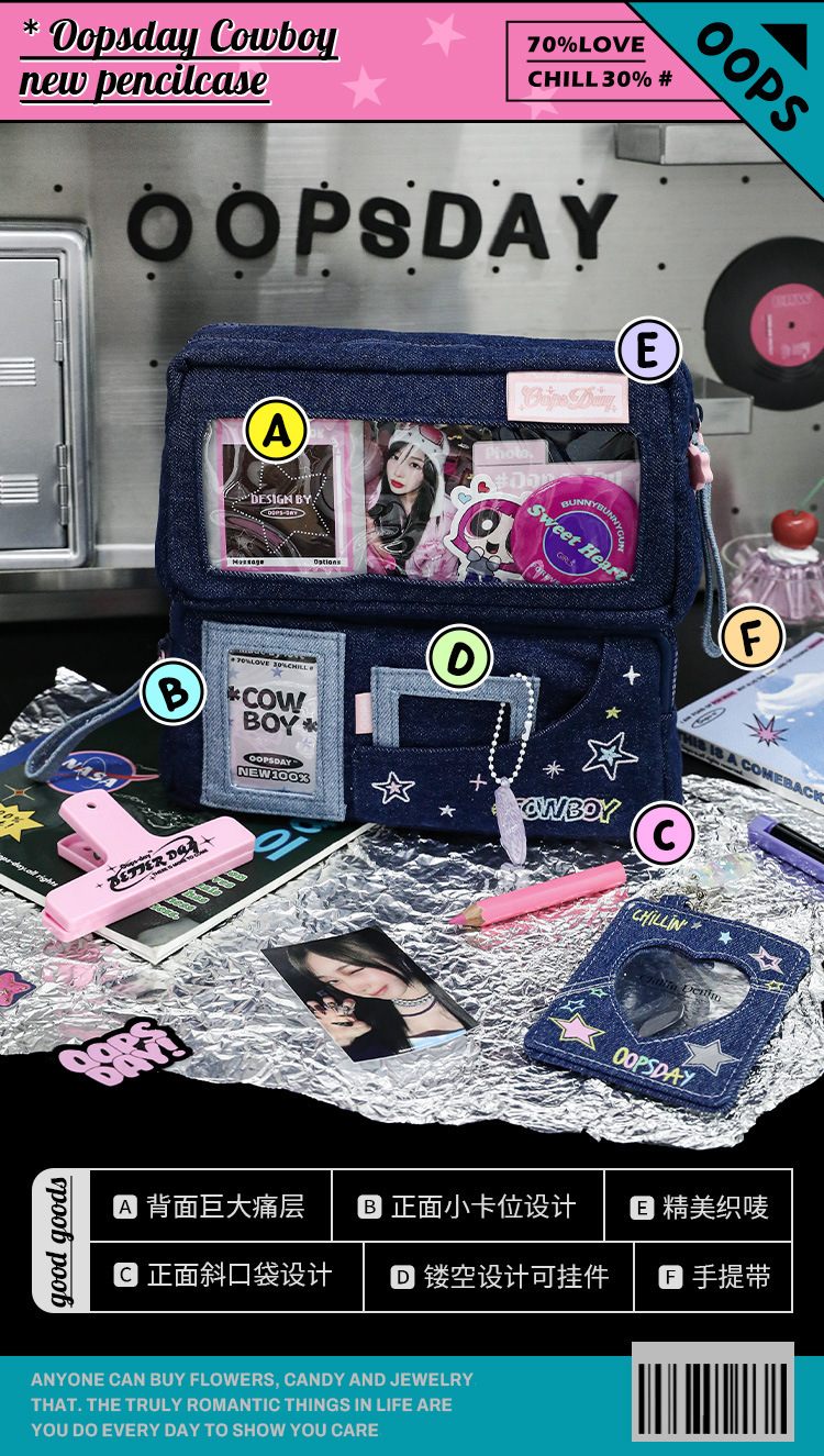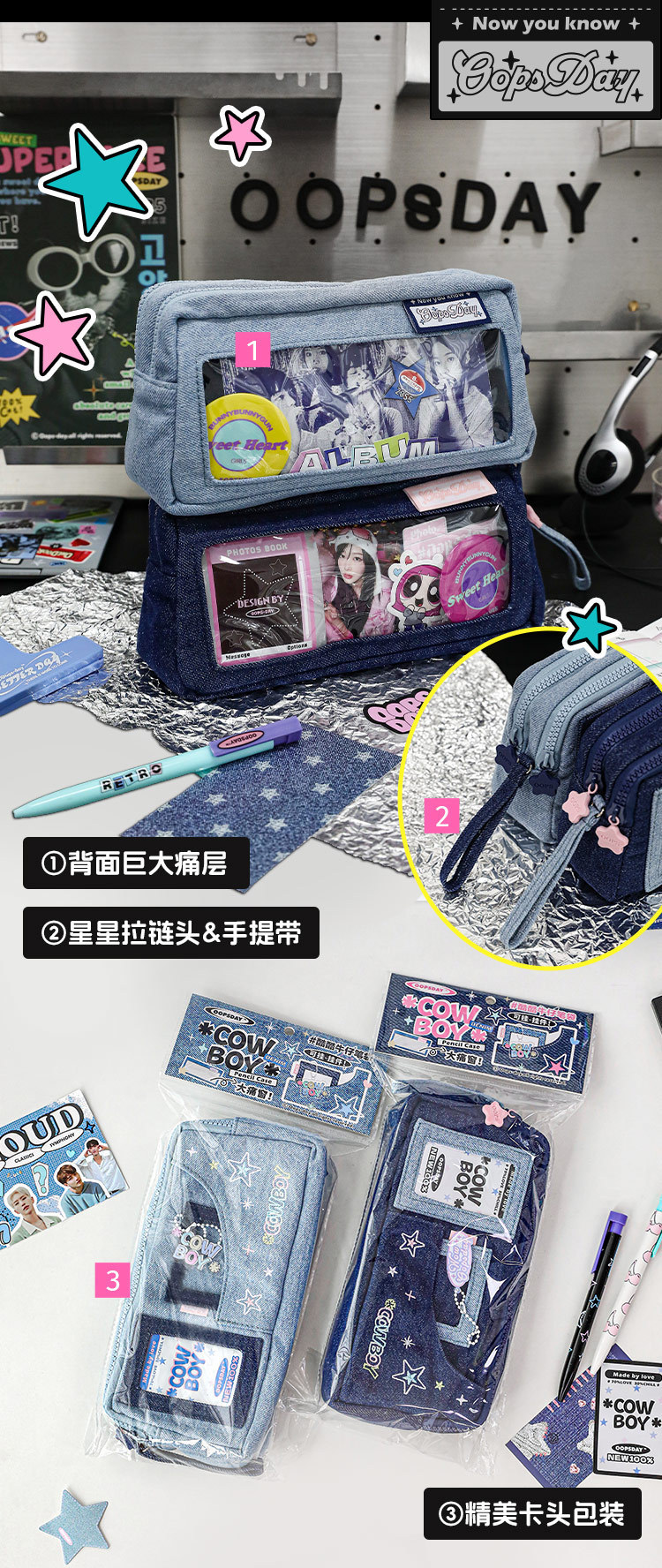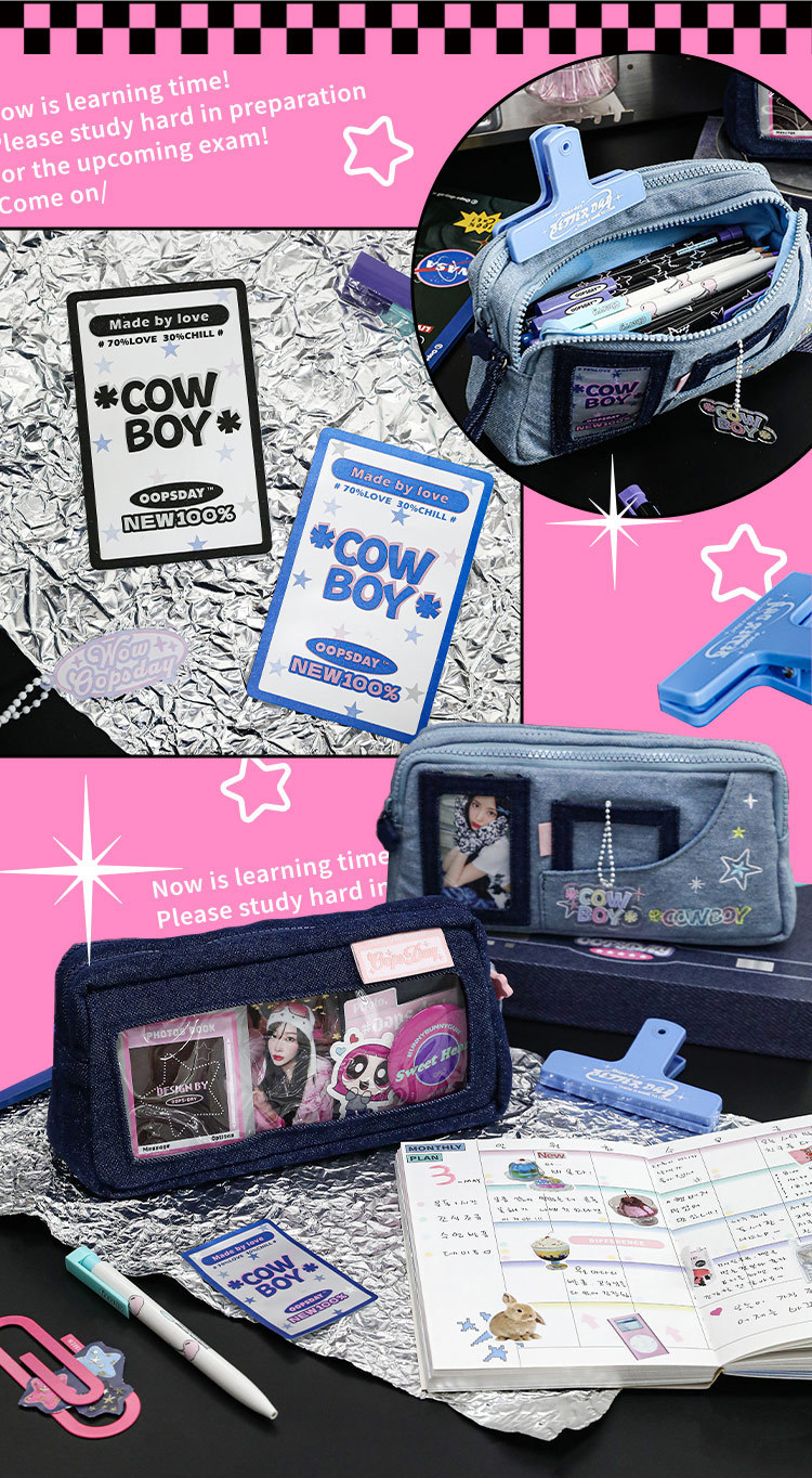 OOPSDAY 레스트데이 COWBOY 카우보이 펀 윈도우 펜 가방 팬 카드 대용량 수납 문구 가방스토어 가기