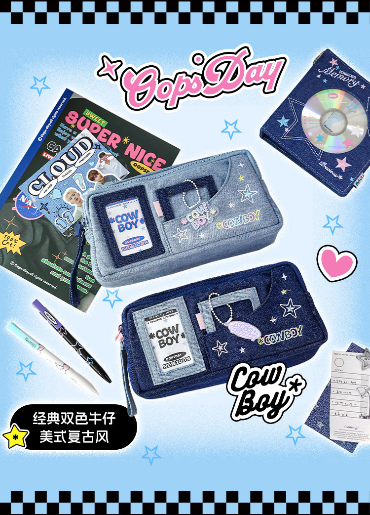 OOPSDAY 레스트데이 COWBOY 카우보이 펀 윈도우 펜 가방 팬 카드 대용량 수납 문구 가방
