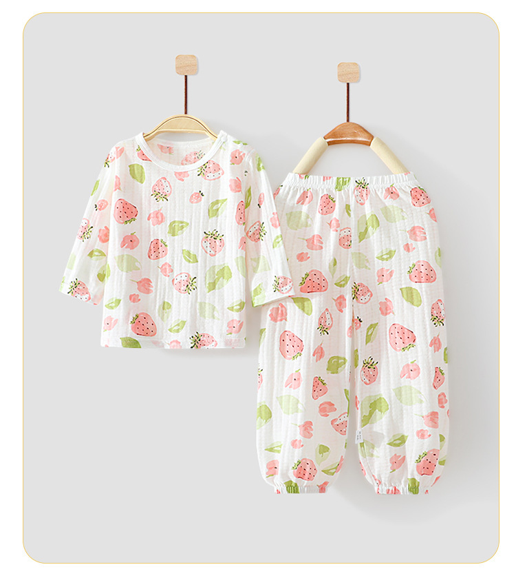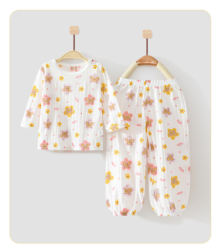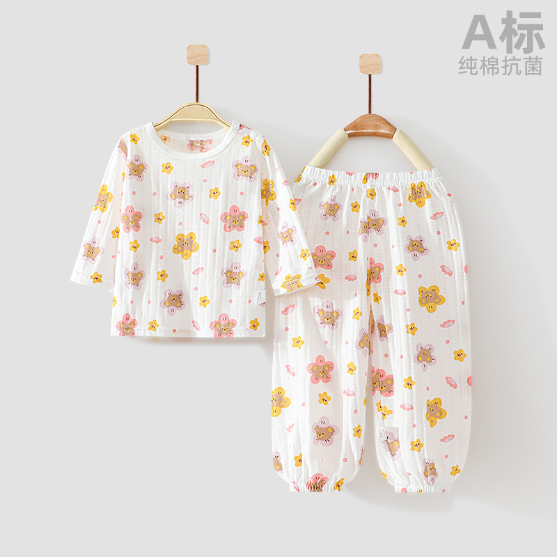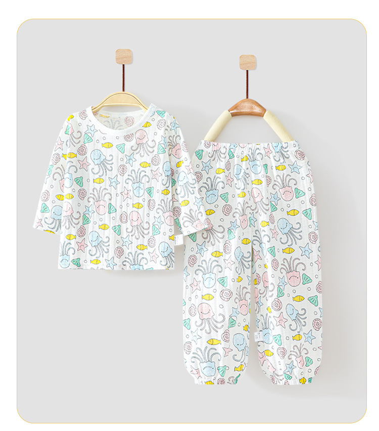 아기 홈 에어컨 옷 순면 항균 얇은 소년과 소녀 여름 유아 및 어린이 긴팔 잠옷 세트