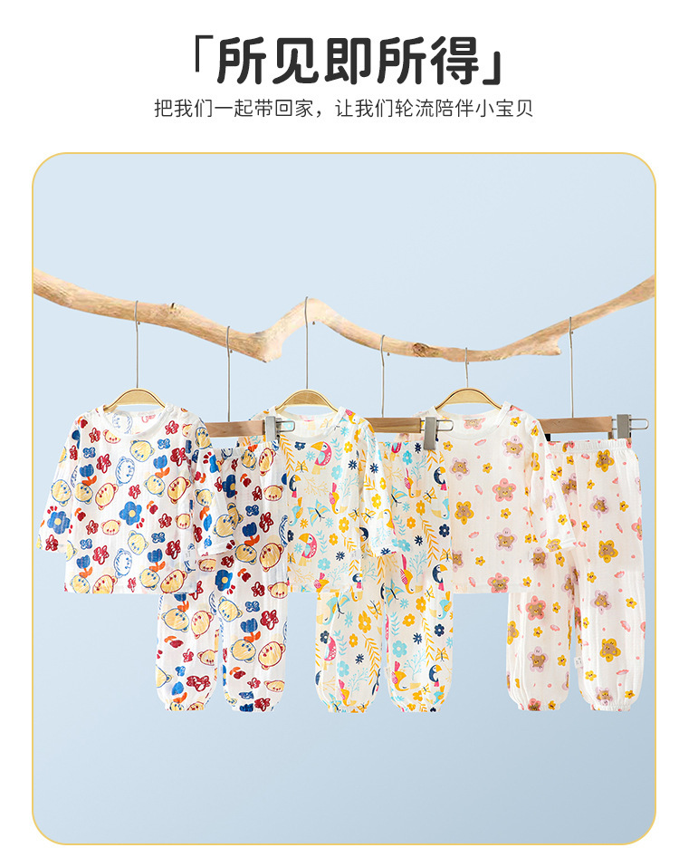 아기 홈 에어컨 옷 순면 항균 얇은 소년과 소녀 여름 유아 및 어린이 긴팔 잠옷 세트스토어 가기