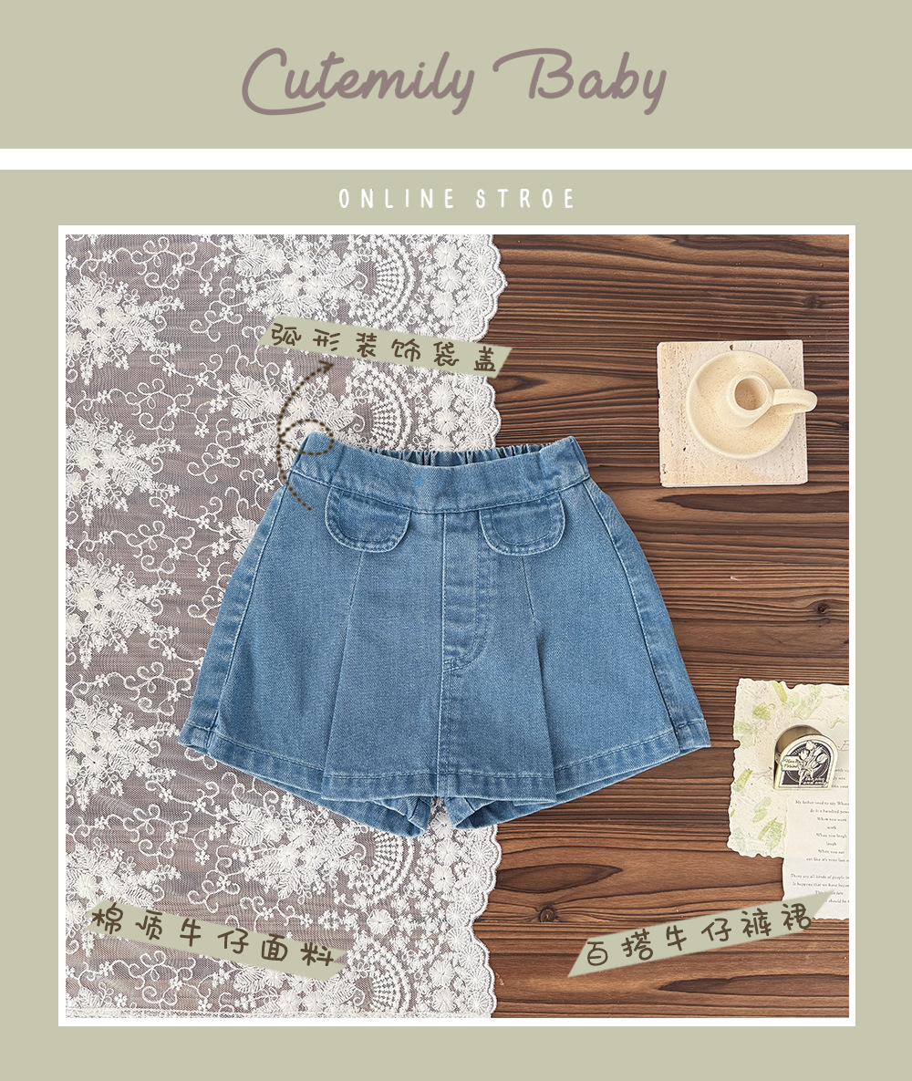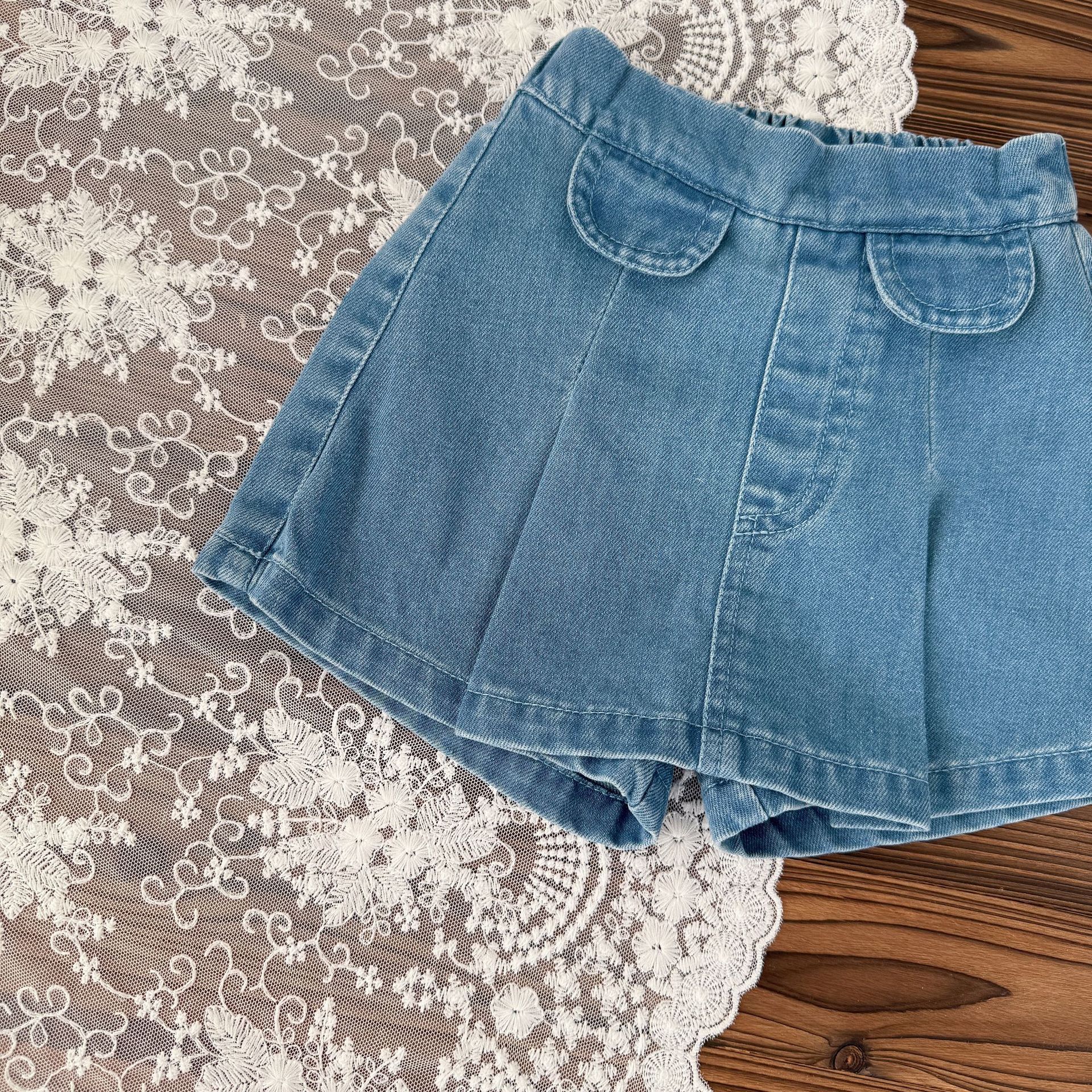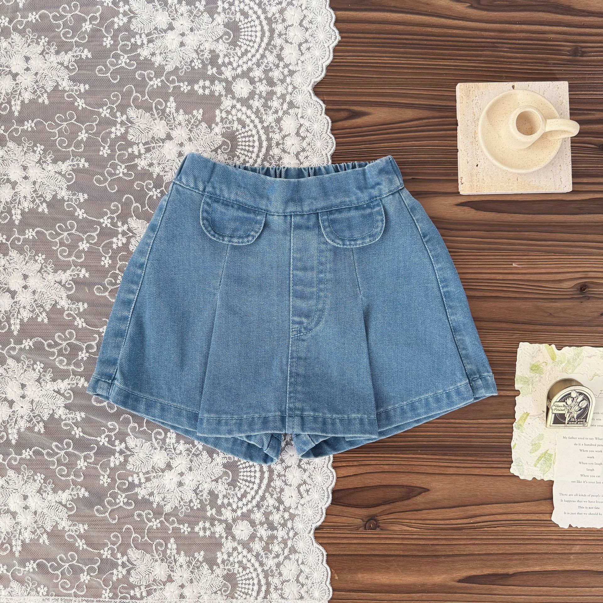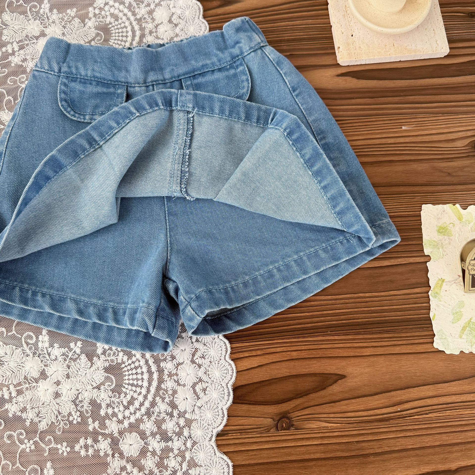 귀여운 봄과 여름 아기 소녀의 귀여운 데님 흉상 바지 스커트 여성용 포켓 커버 부드러운 데님 반바지스토어 가기