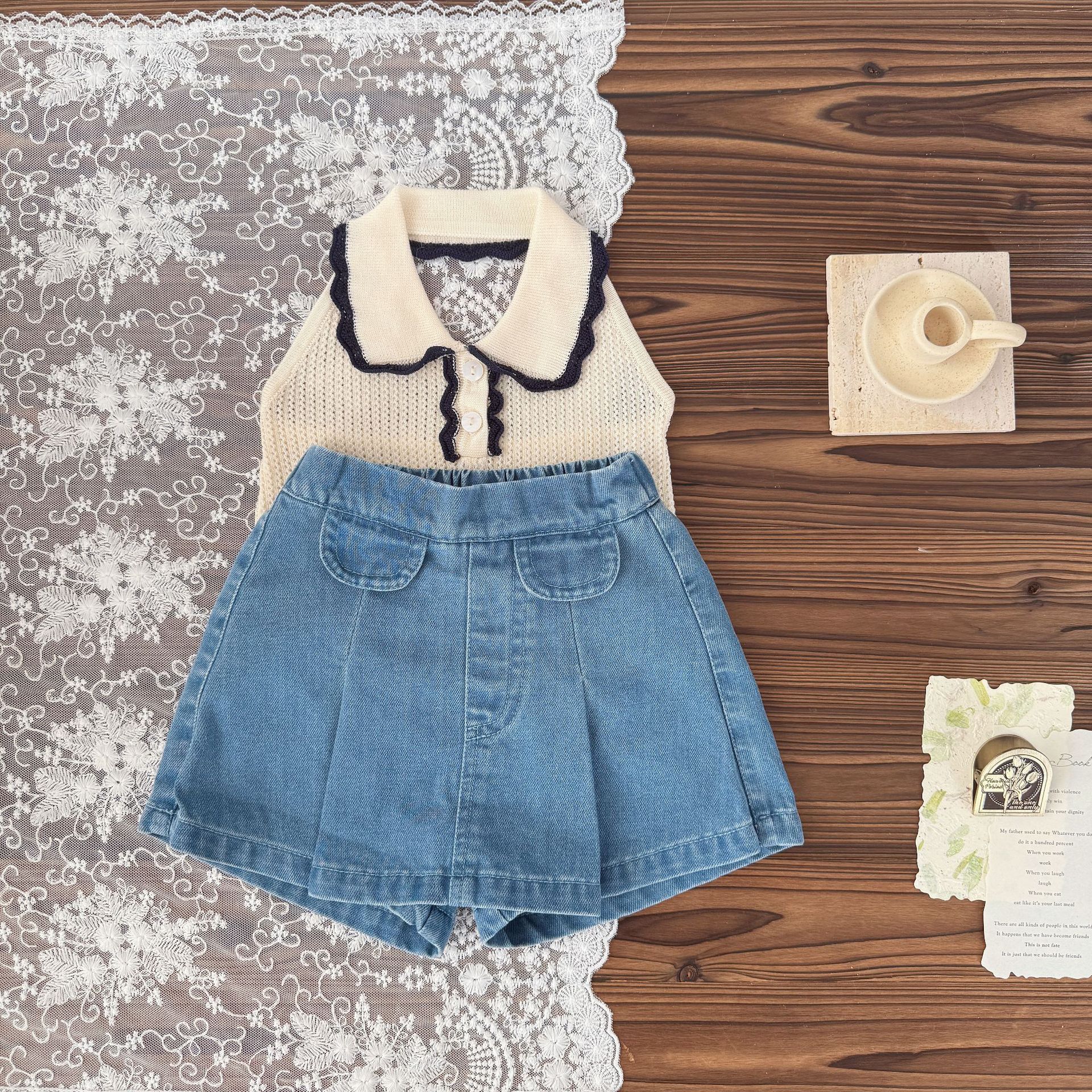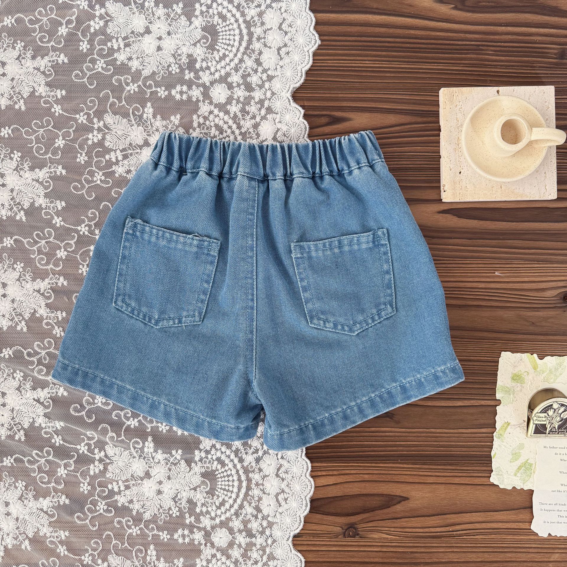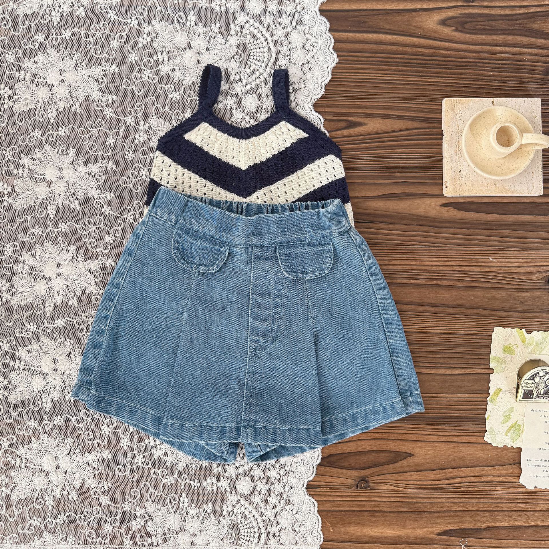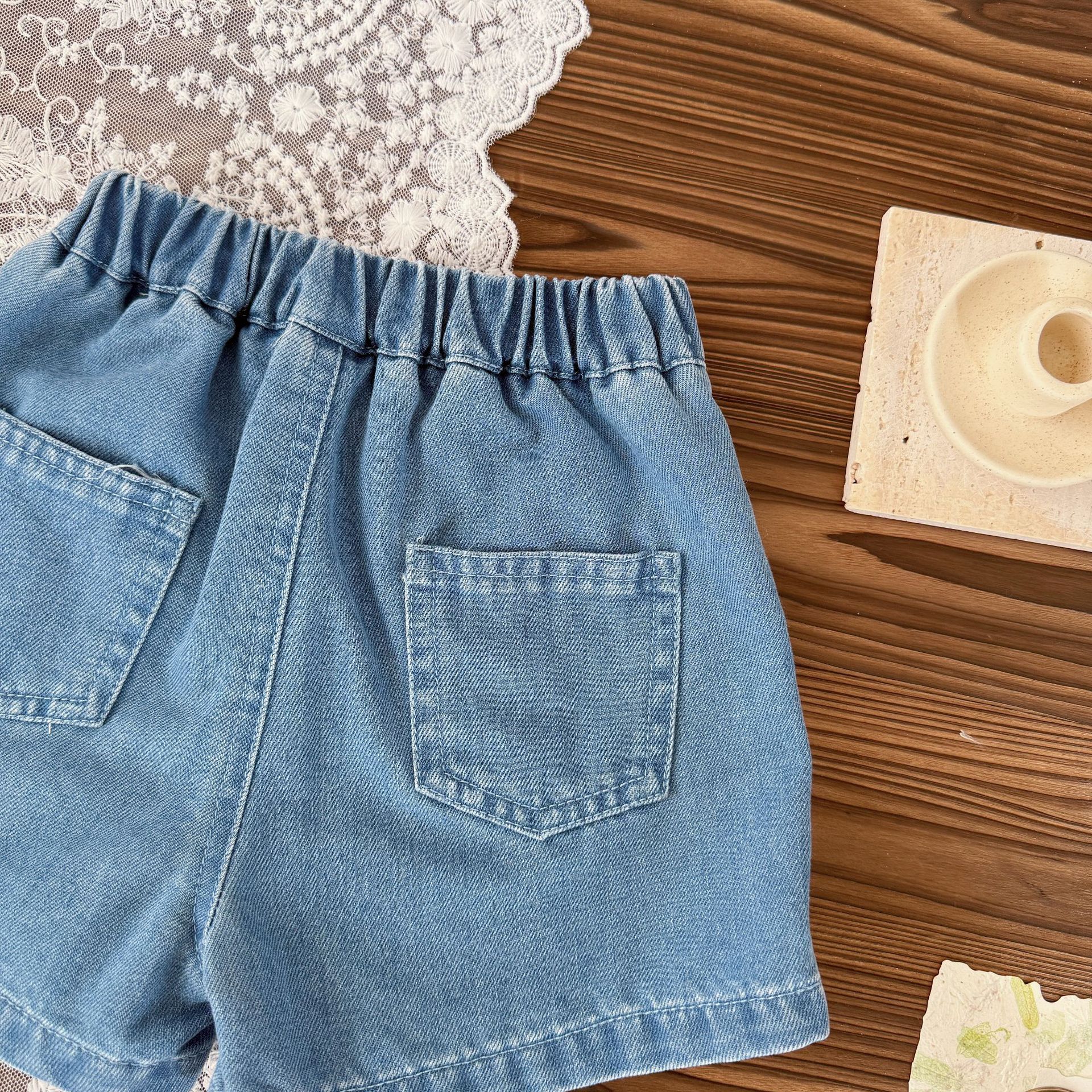 귀여운 봄과 여름 아기 소녀의 귀여운 데님 흉상 바지 스커트 여성용 포켓 커버 부드러운 데님 반바지스토어 가기