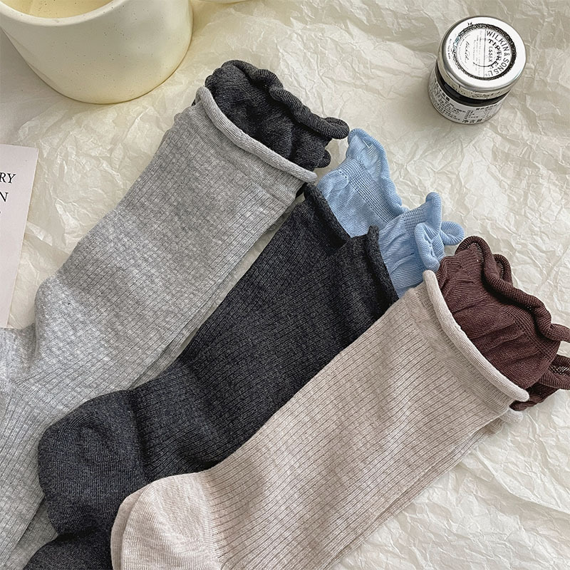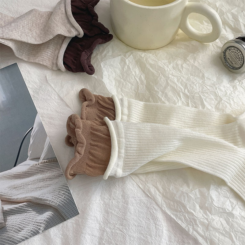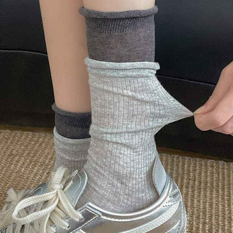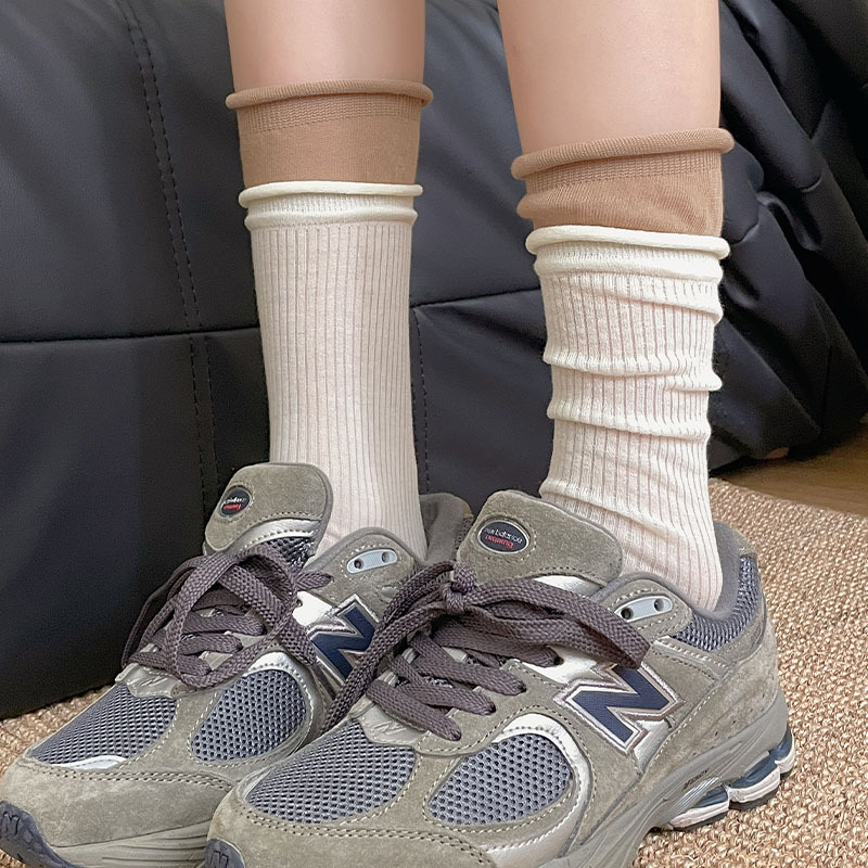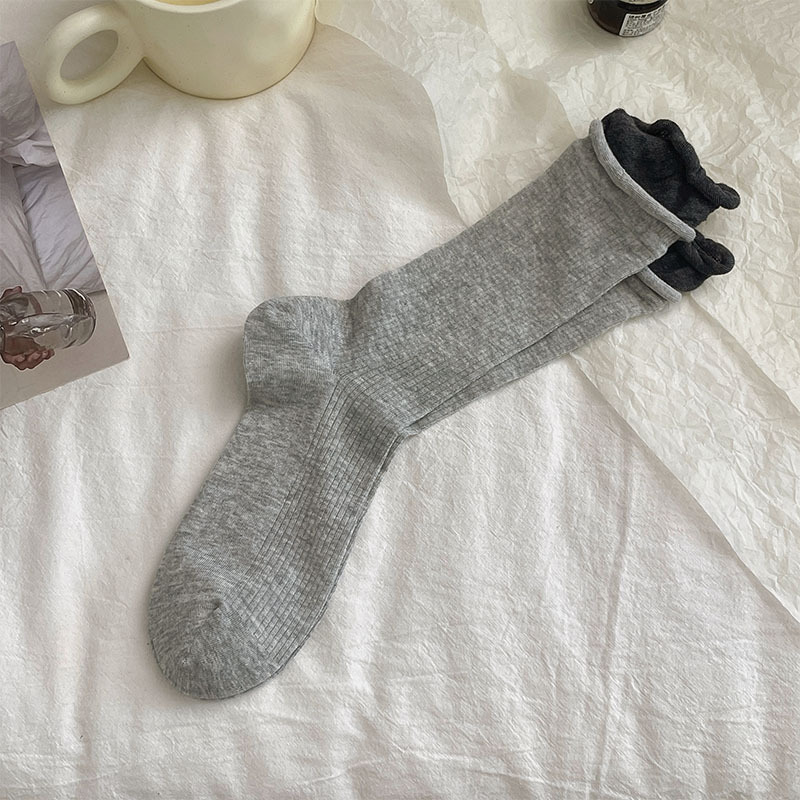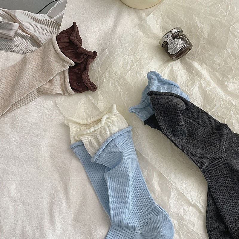 중간 길이의 스타킹 여성의 독특한 컬러 매칭 더블 라커우 컬 엣지 양말 인 한국 스타일 유행 봄과 여름 얇은 더미 스타킹스토어 가기