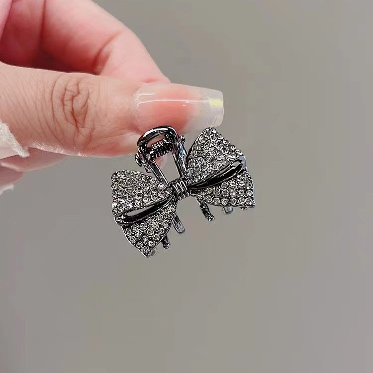 흑요석 라인스톤 상어 클립, 리본 머리핀, 고급스럽고 절묘한 작은 귀여운 앞머리 헤어 액세서리, 그립 클립 탑 클립스토어 가기