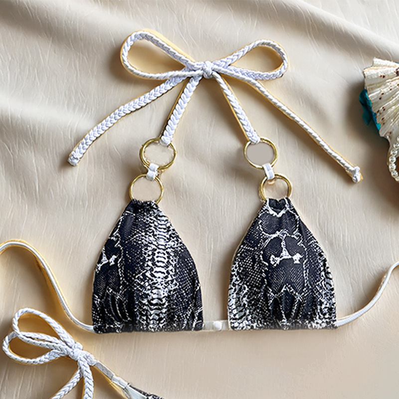 새로운 뱀 패턴 분할 수영복 여성 유럽과 미국의 비키니 섹시한 삼각형 가방 넥타이-염료 교수형 목 순수한 욕망 비키니 여성