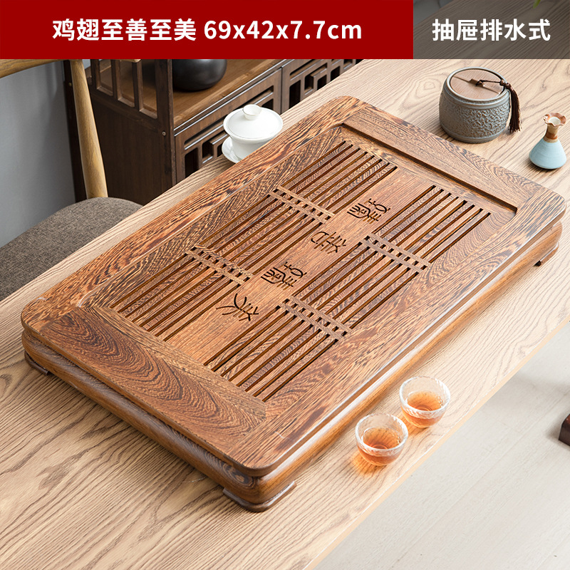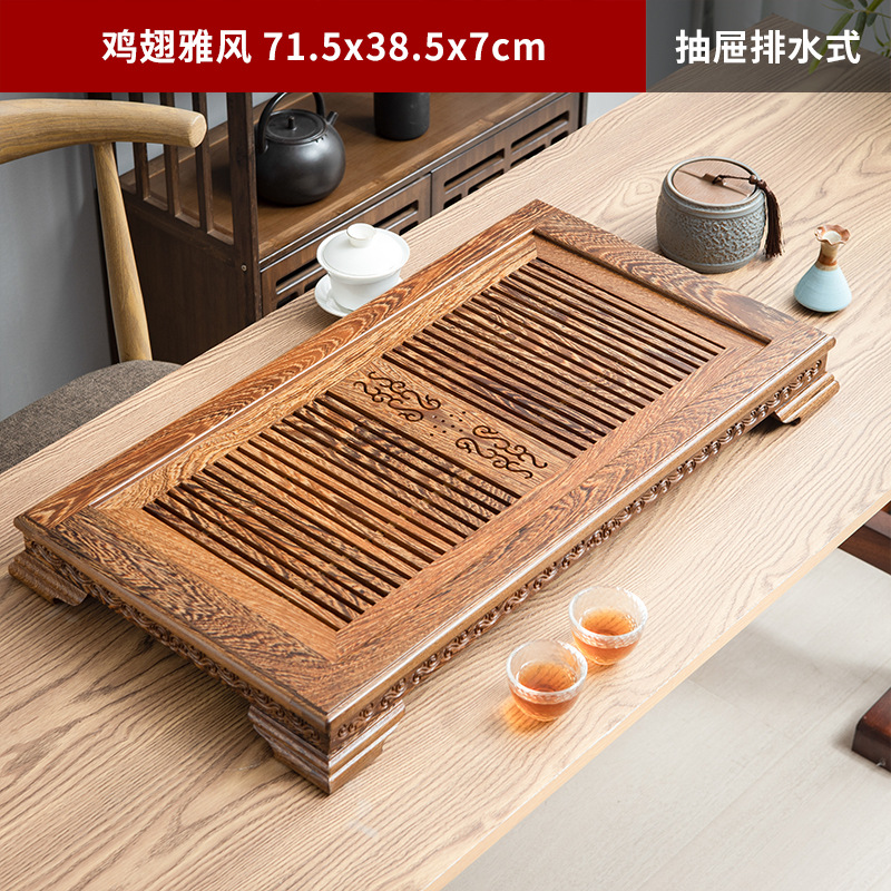 닭 날개 나무 차 트레이 서랍 유형 가정용 단단한 나무 차 테이블 간단한 대형 스몰 사이즈 차 바다 쿵푸 차 세트 차 트레이 거실