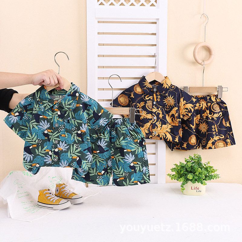 남학생 여름 의류 신식 중소형 어린이 대외 무역 어린이 의류 반팔 셔츠 비치 아기 옷 잘 생긴 셔츠스토어 가기