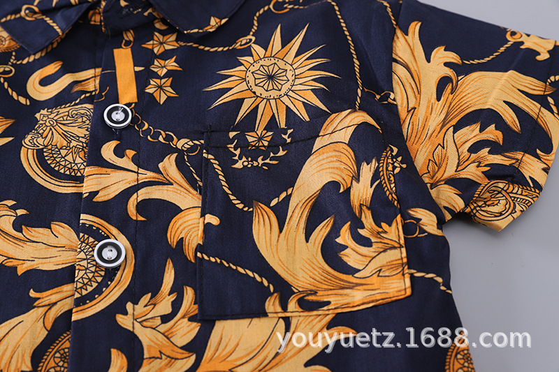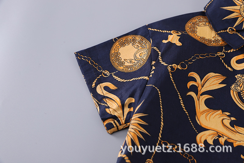 남학생 여름 의류 신식 중소형 어린이 대외 무역 어린이 의류 반팔 셔츠 비치 아기 옷 잘 생긴 셔츠