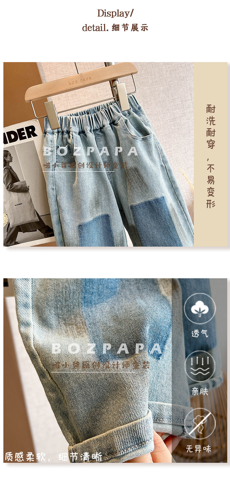 2025 봄, 가을 새로운 스타일 소년 한국 캐주얼 다목적 디자인 데님 바지 어린이 베이비 스트레이트 바지스토어 가기