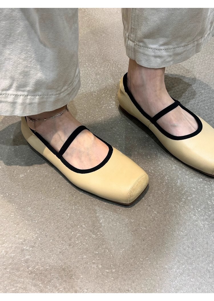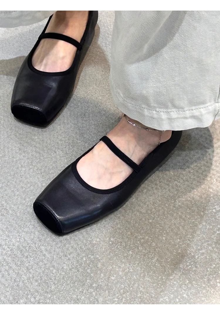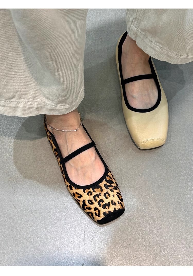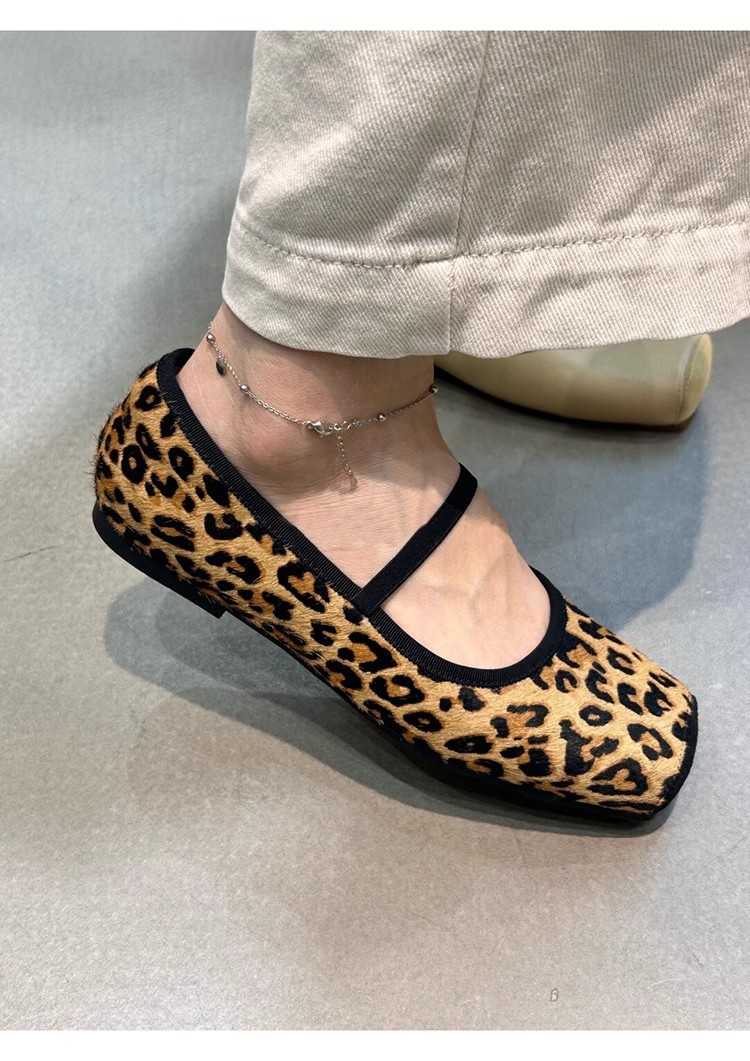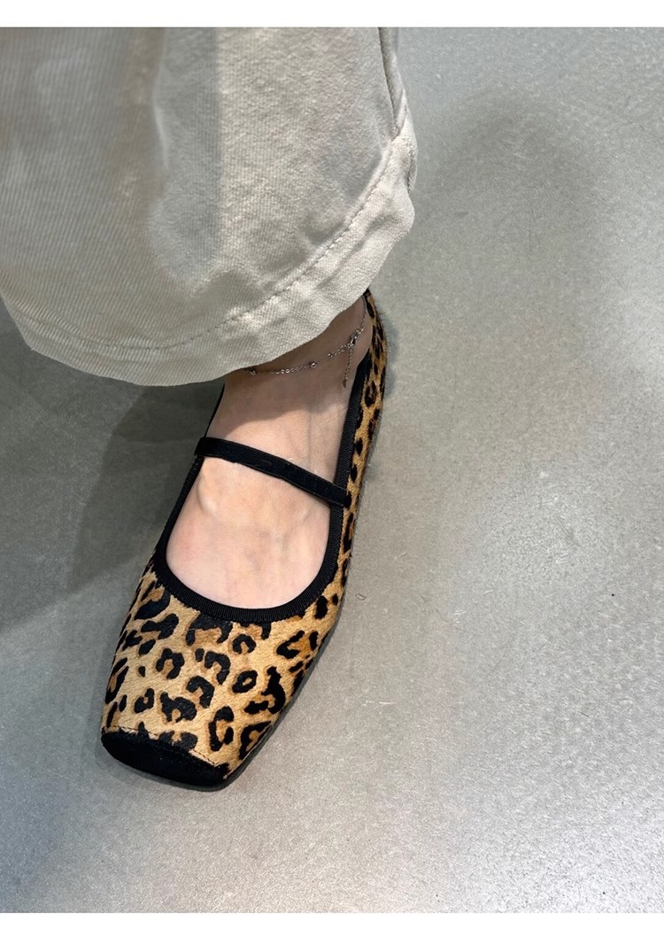 재고 있음 ~ 프렌치 원라인 버클 스트랩 스퀘어 토 메리제인 슈즈, 편안하고 가볍고 부드러운 레오파드 프린트 여성용 플랫 슈즈스토어 가기