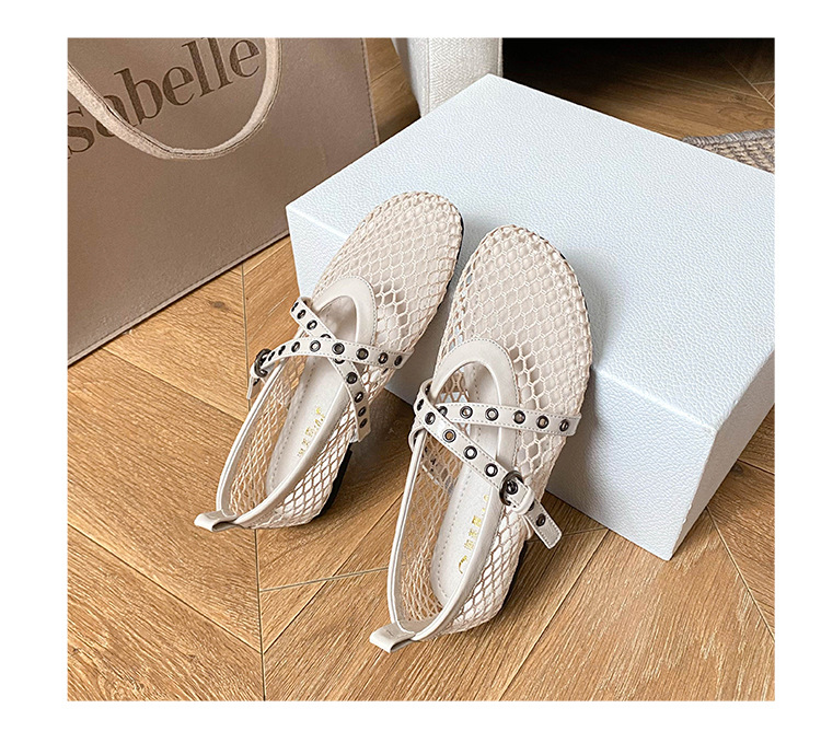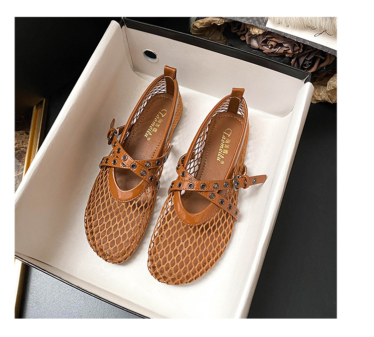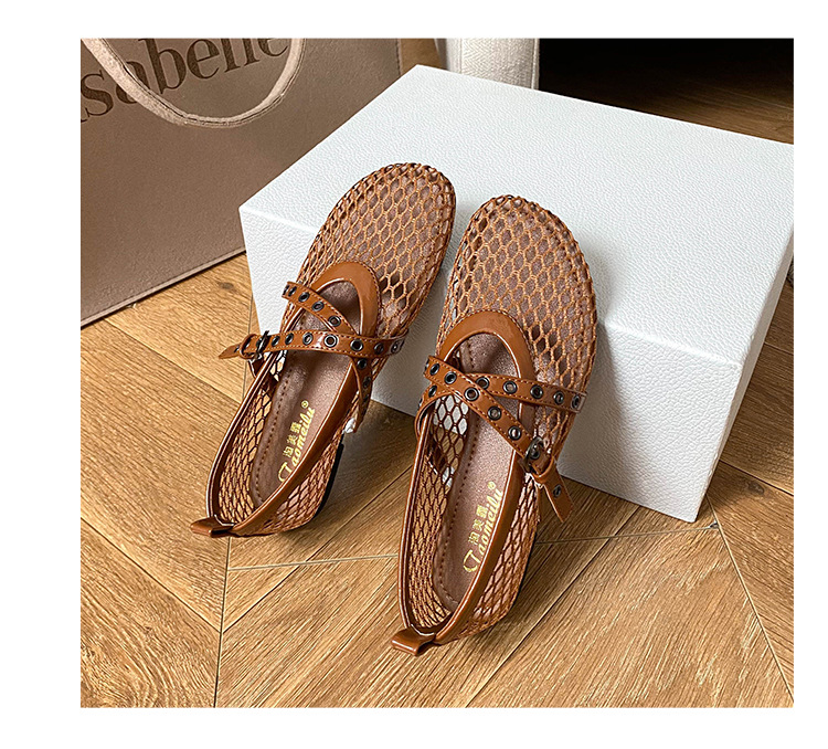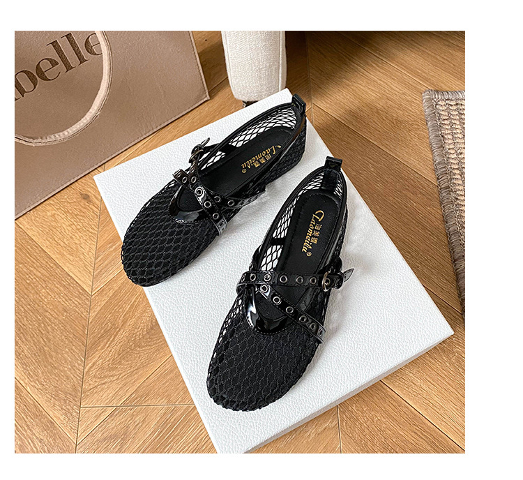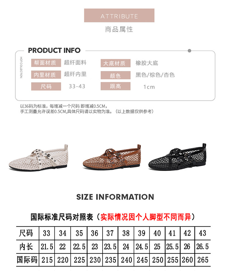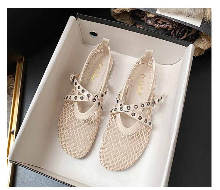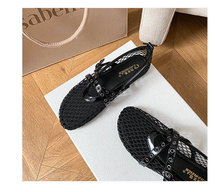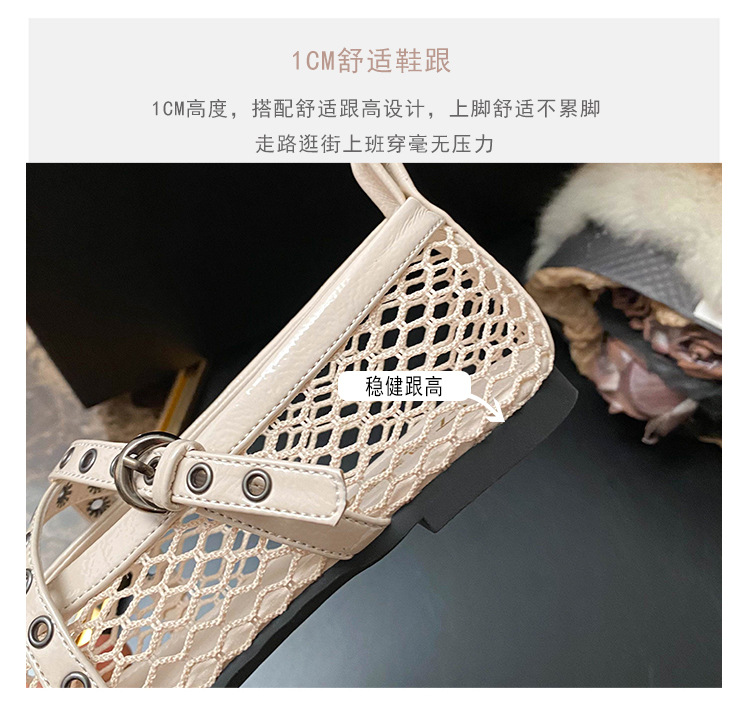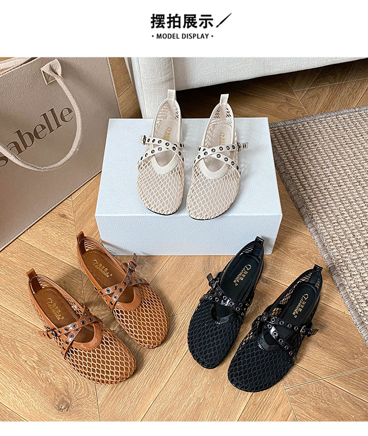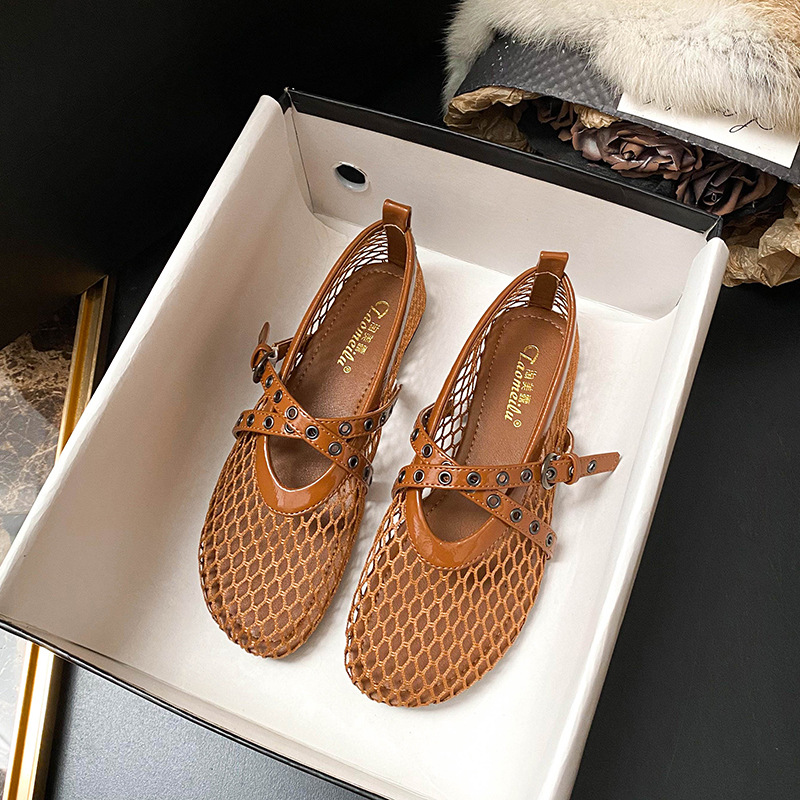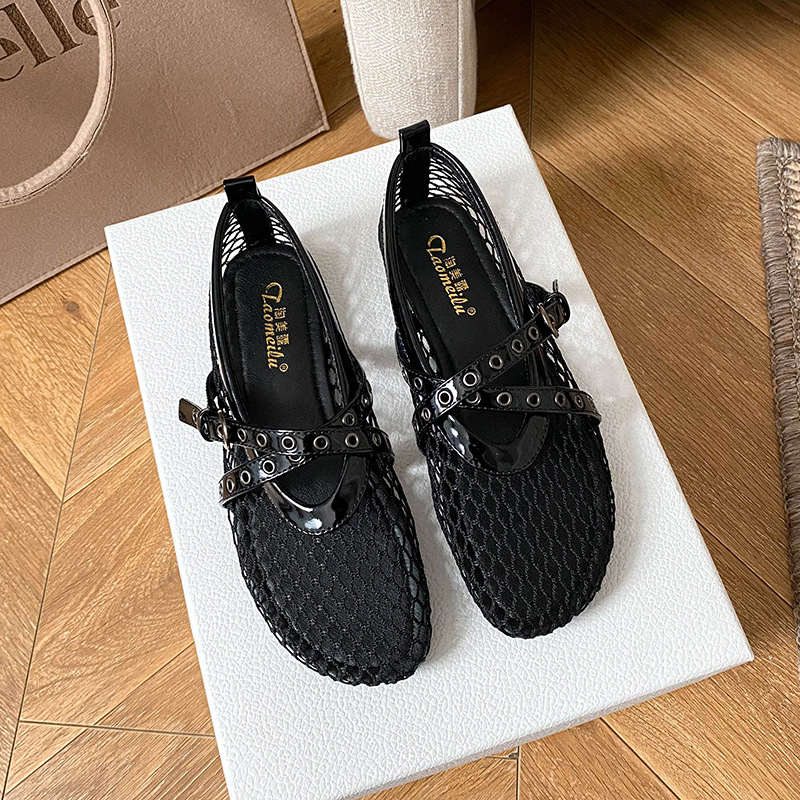 플랫 할로우 여름 새 샌들 여성 낚시 그물 신발 메시 신발 2025 메리 제인 신발 발레 신발 여성
