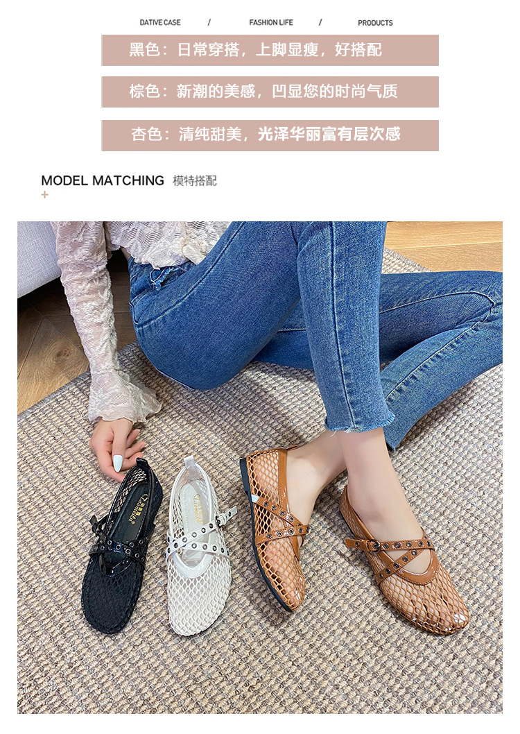 플랫 할로우 여름 새 샌들 여성 낚시 그물 신발 메시 신발 2025 메리 제인 신발 발레 신발 여성스토어 가기