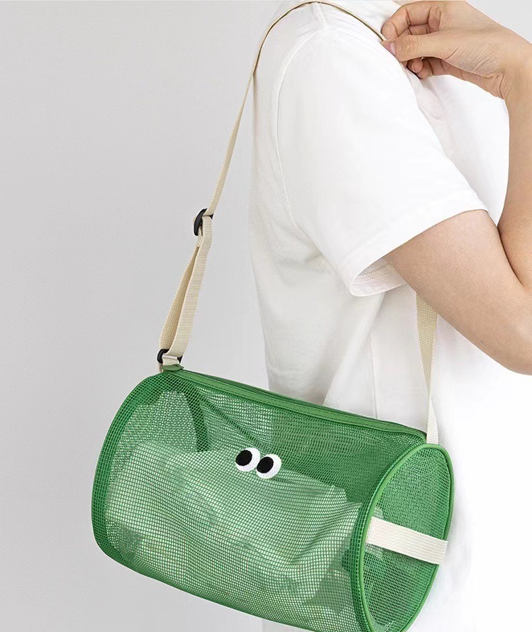 실린더 메쉬 메이크업 가방 여행 크로스 바디 비치 수영 가방 빈 화장실 보관 가방 잡화 가방
