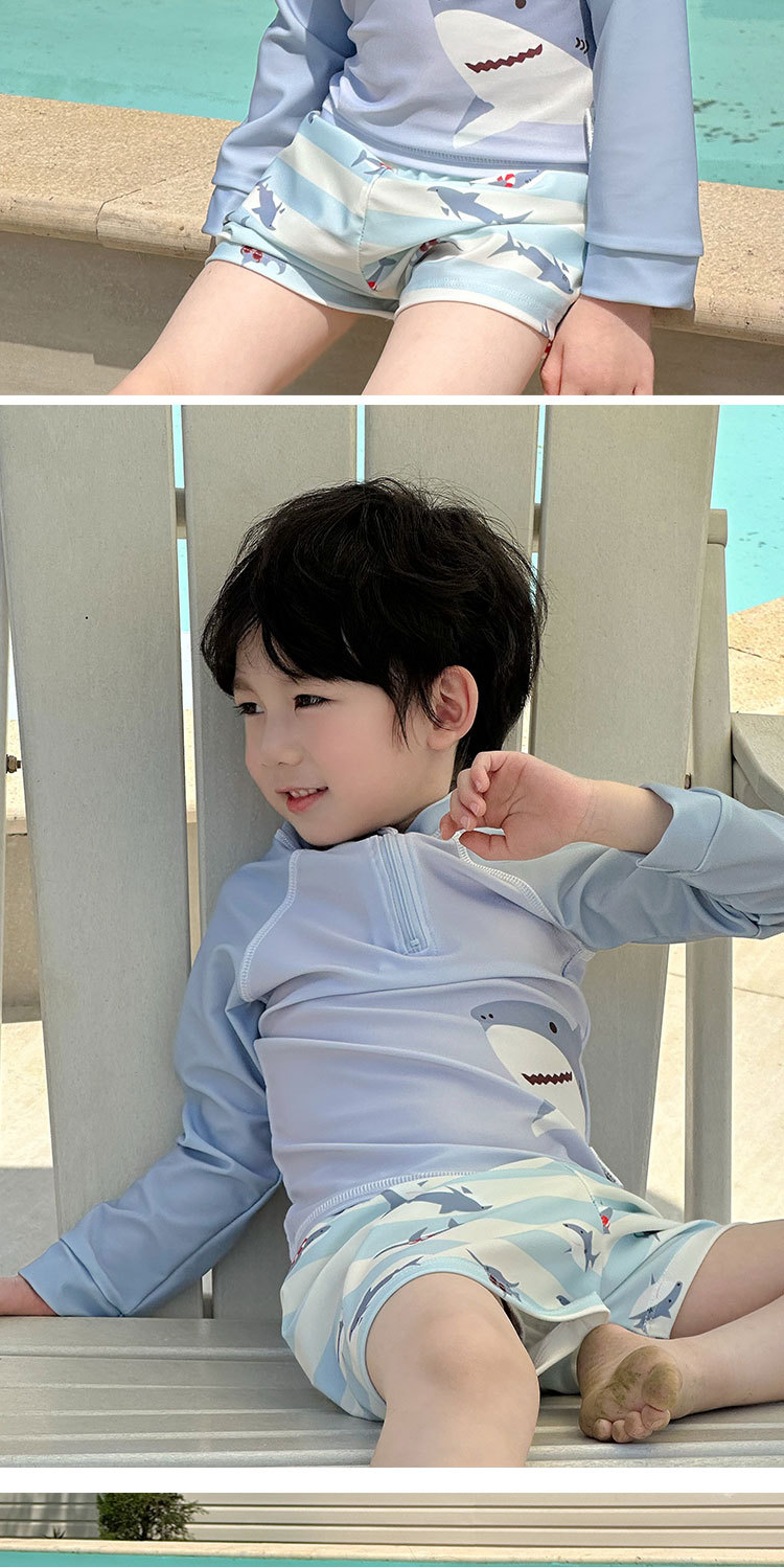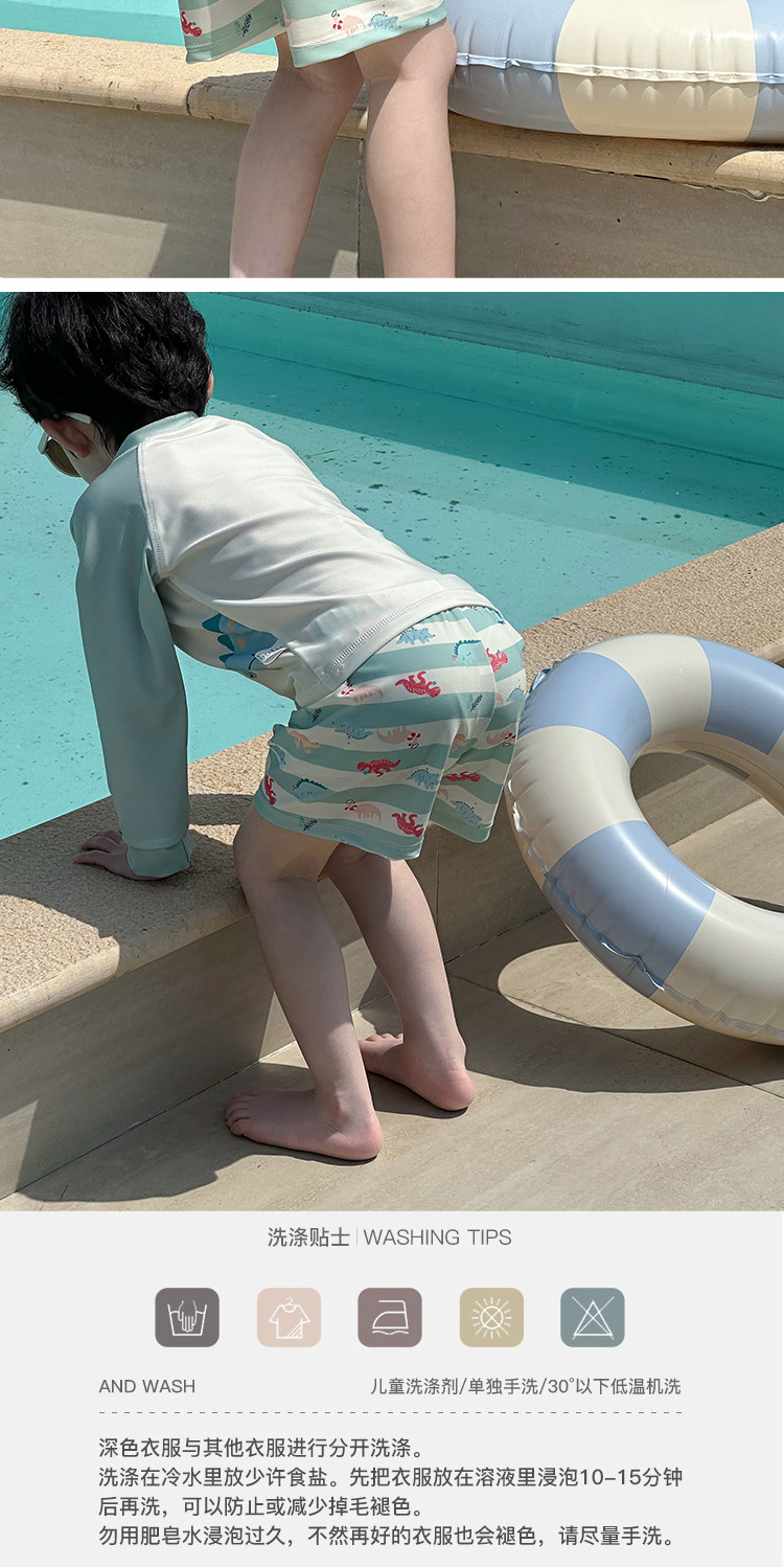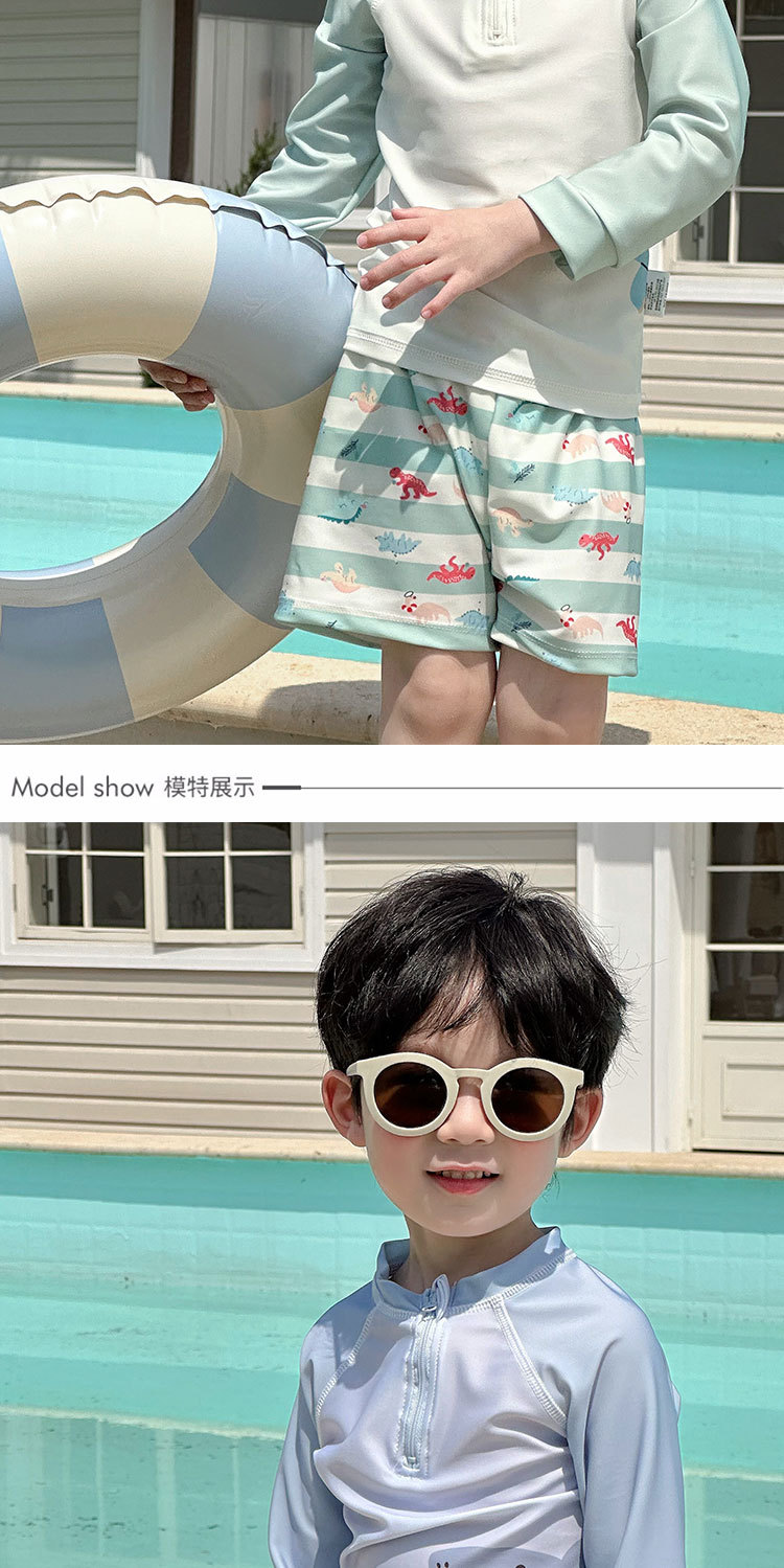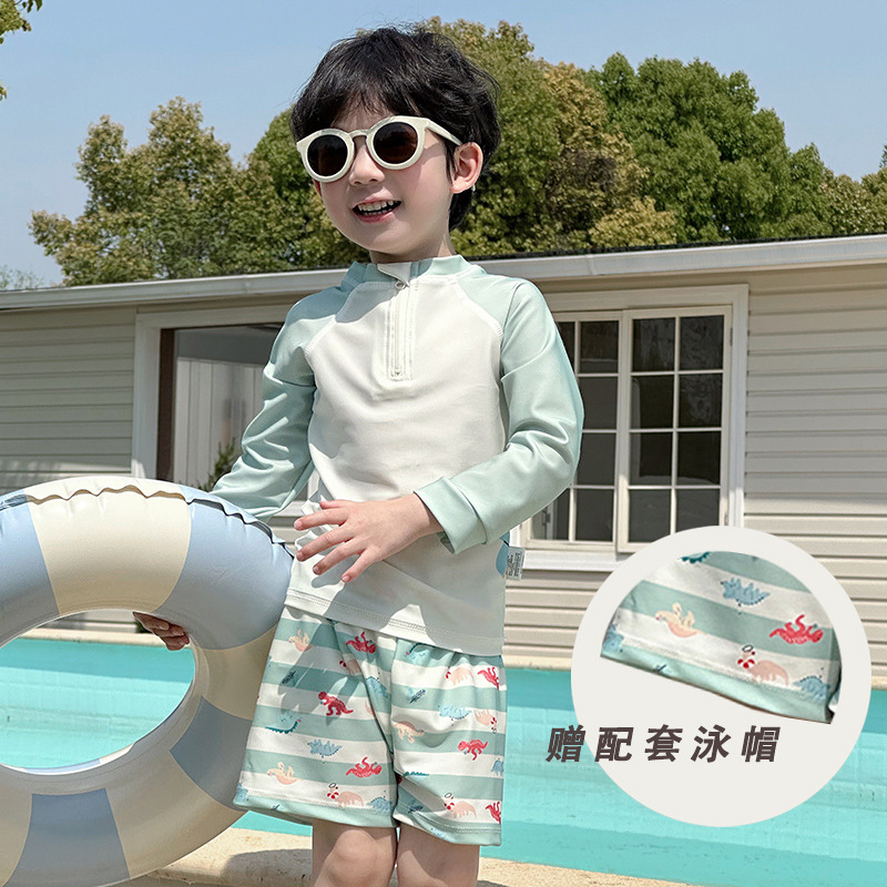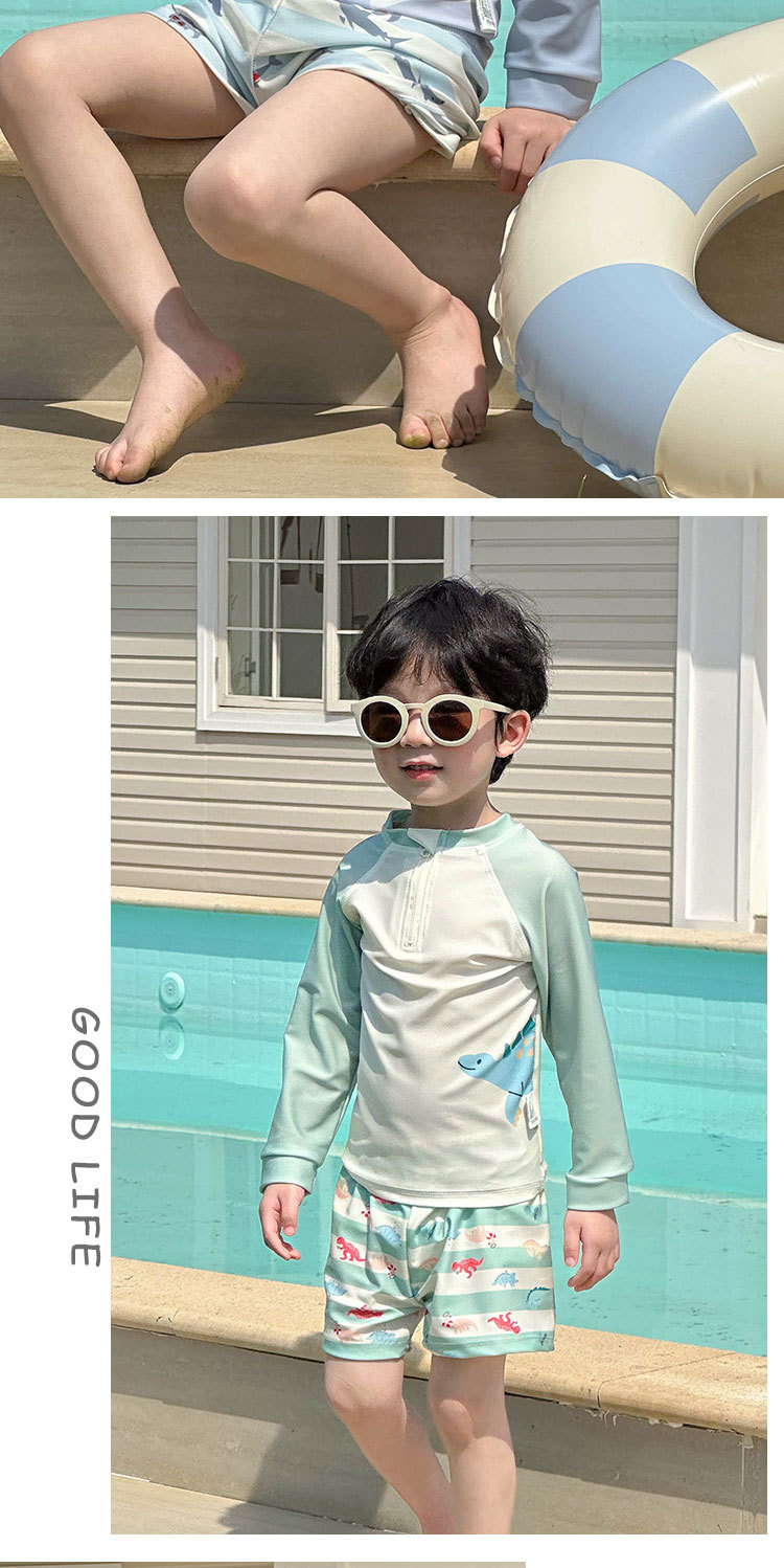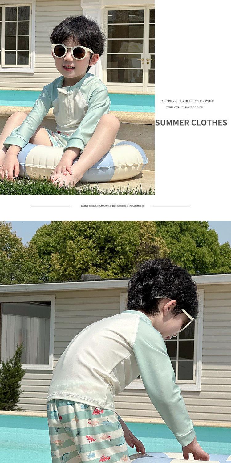 아기 수영복 소년의 긴팔 쪼개진 중소형 어린이 선 스크린 빠른 건조 비치 보이 공룡 온천 수영복 세트