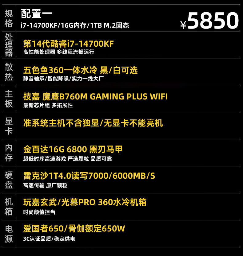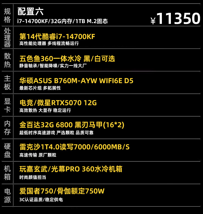 디자인 라이브 스트리밍 e스포츠 하이엔드 구성 i7-14700KF+RTX5070 그래픽 카드 3A 걸작 3D 렌더링 등 전체 세트스토어 가기