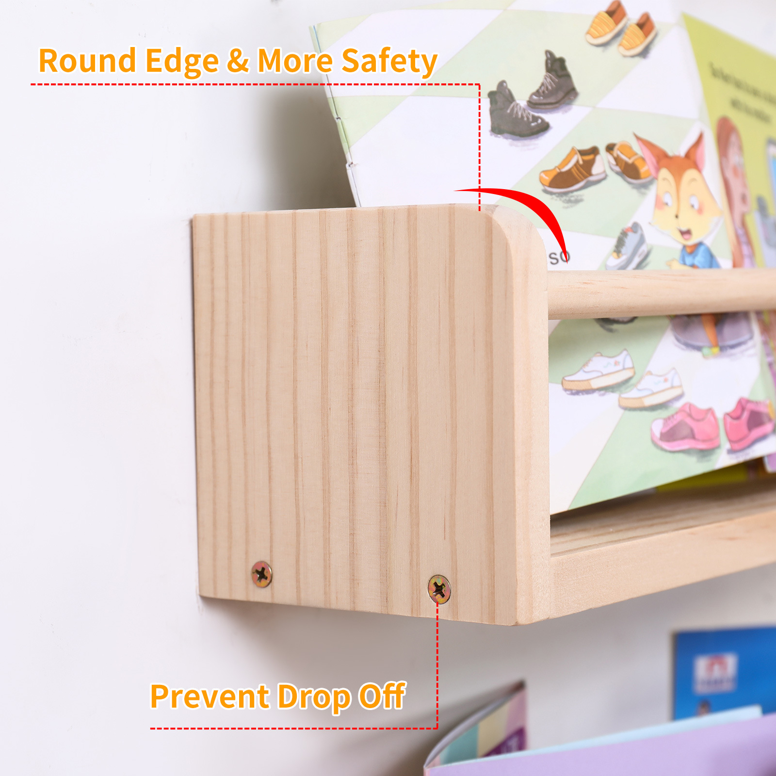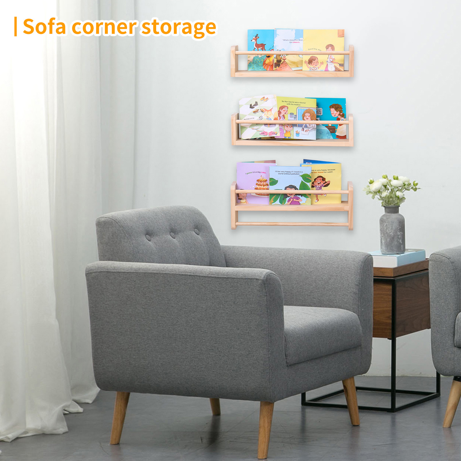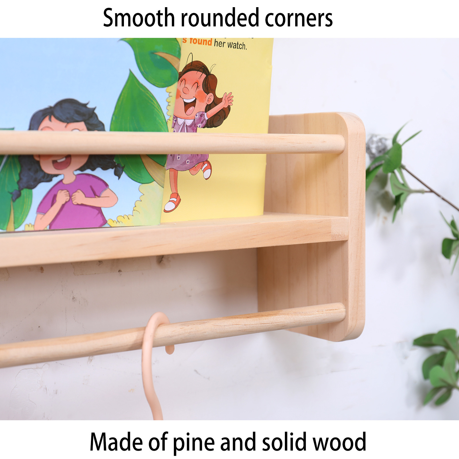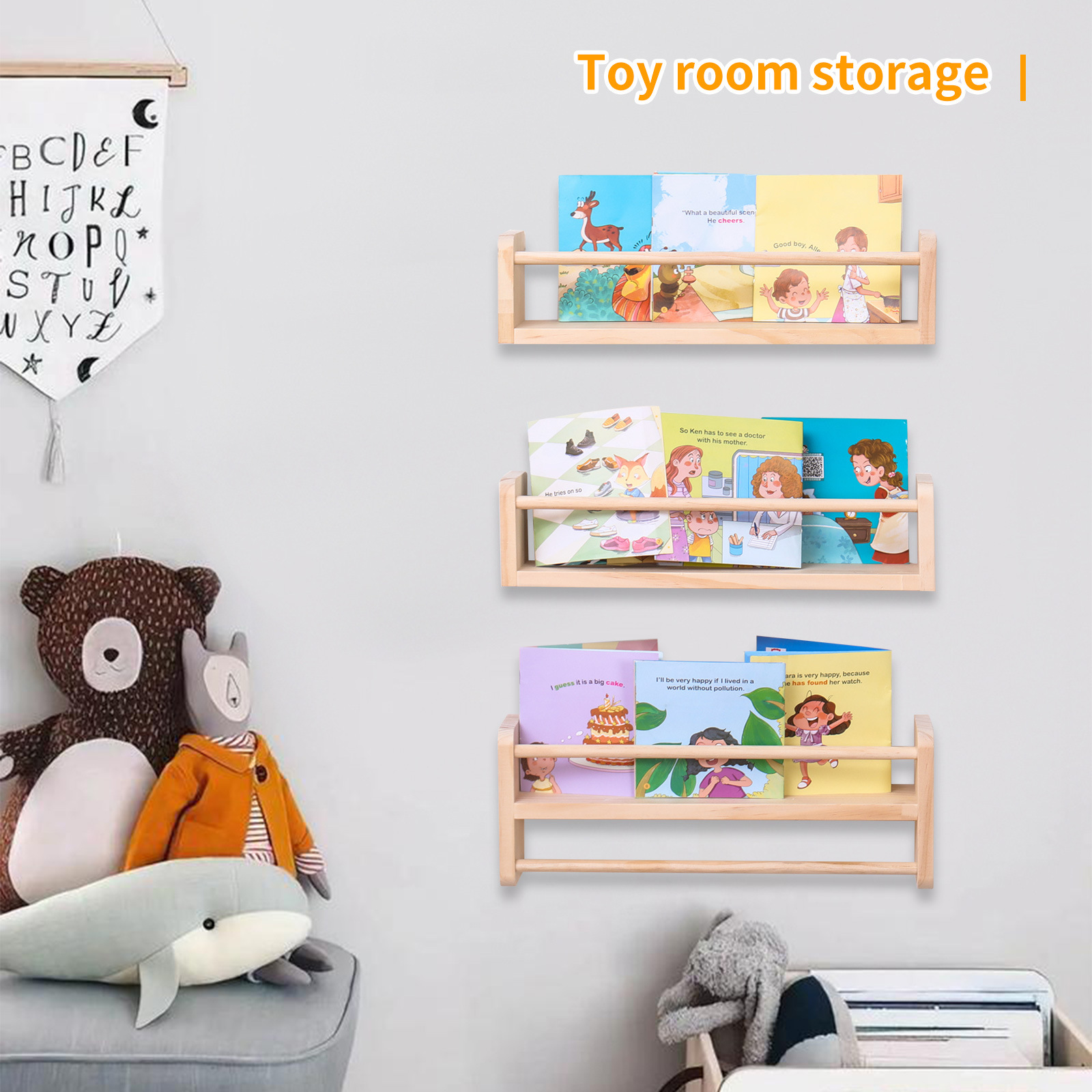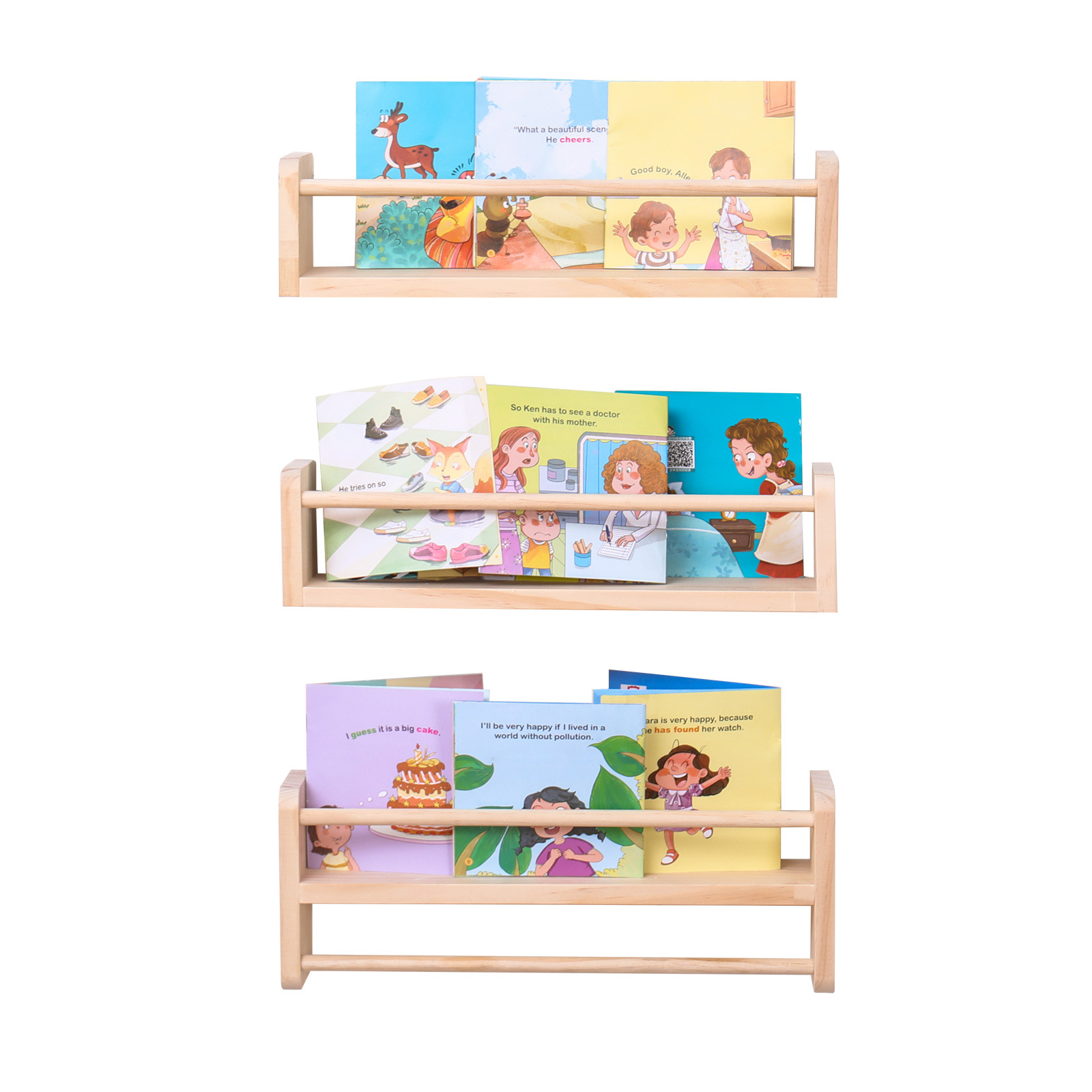 국경을 넘는 원목 어린이 벽걸이형 선반 학생용 간단한 다층 그림책 선반 공간 절약형 제품스토어 가기