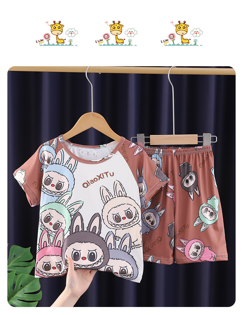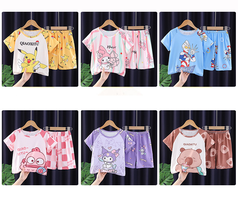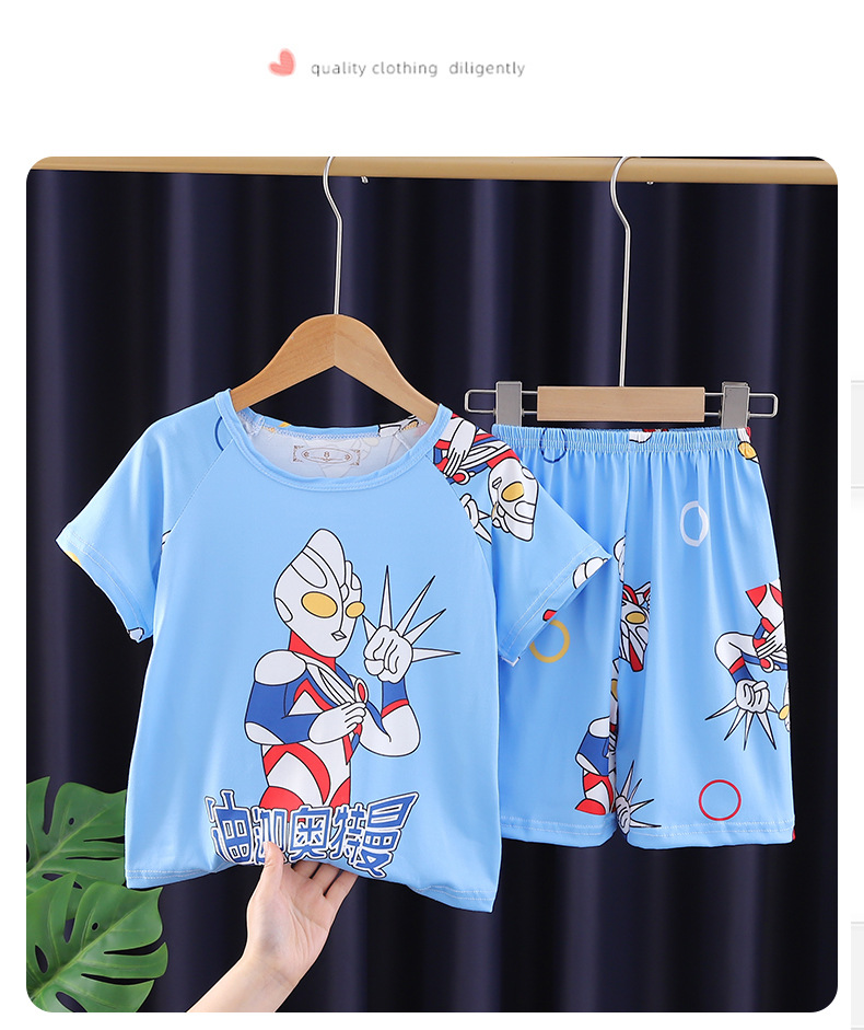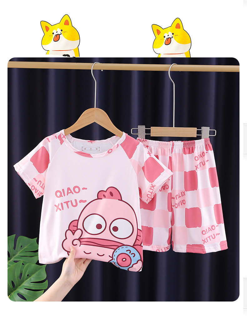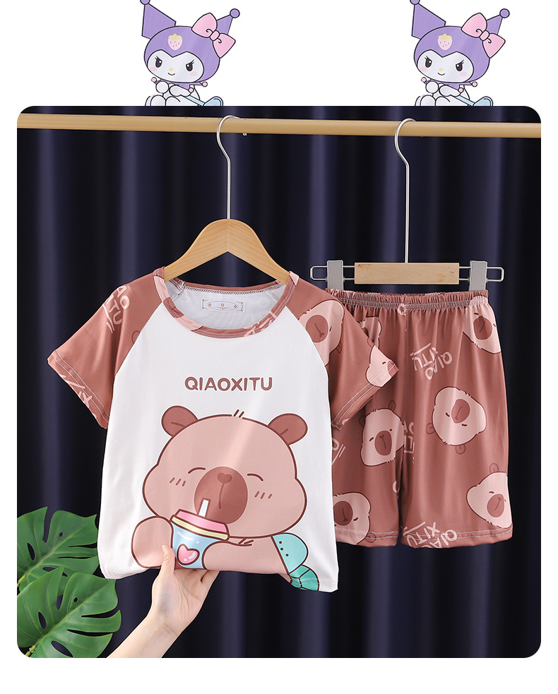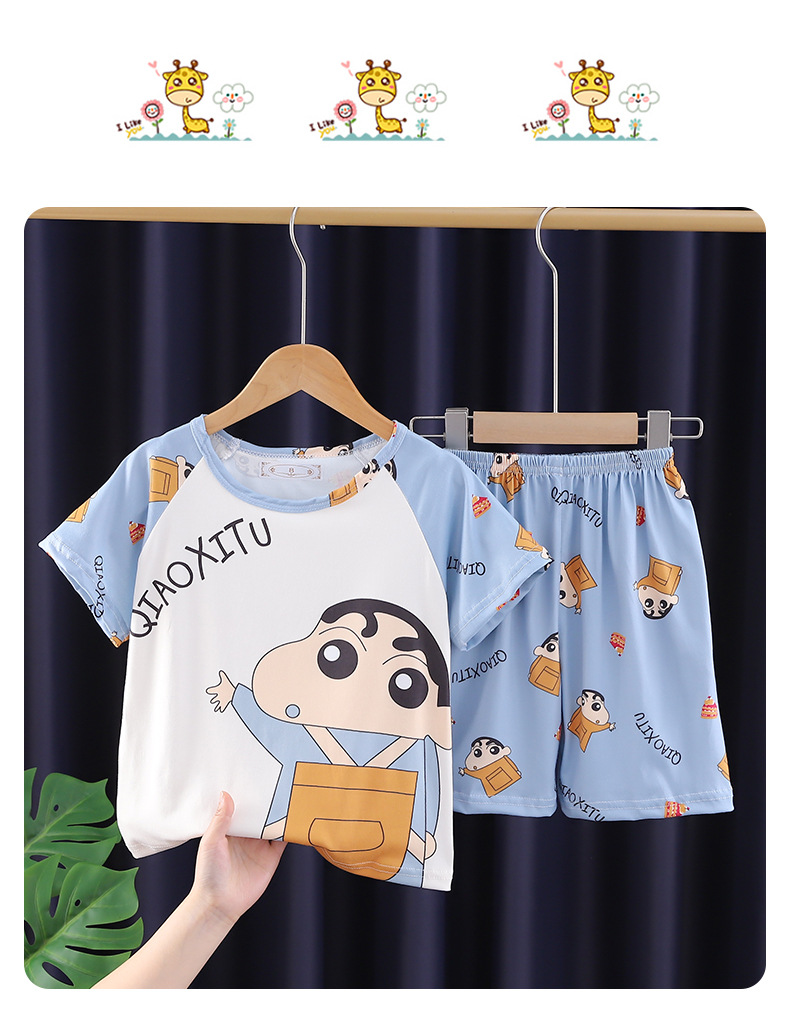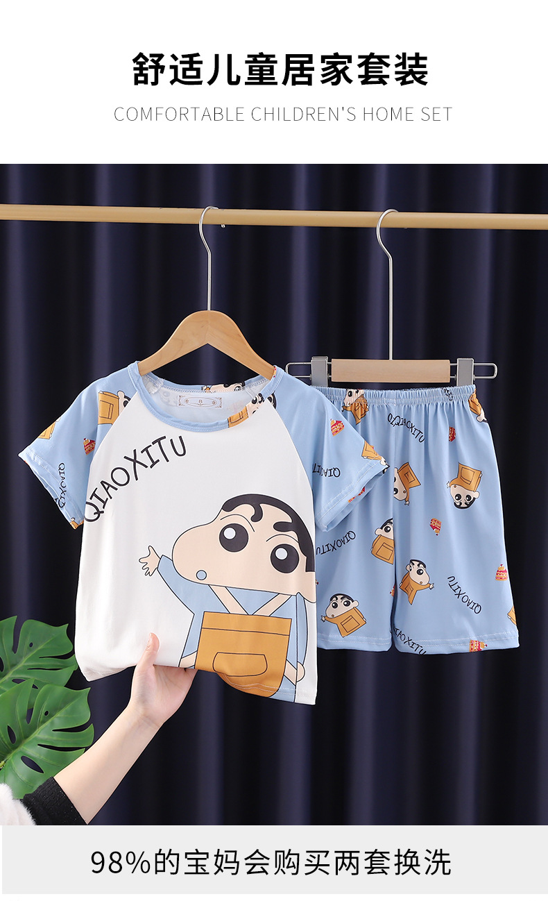 여름 소녀와 소년 잠옷 세트, 중대형 어린이를 위한 에어컨 옷, 얇은 만화 가정복, 짧은 세트, 밀크 실크스토어 가기