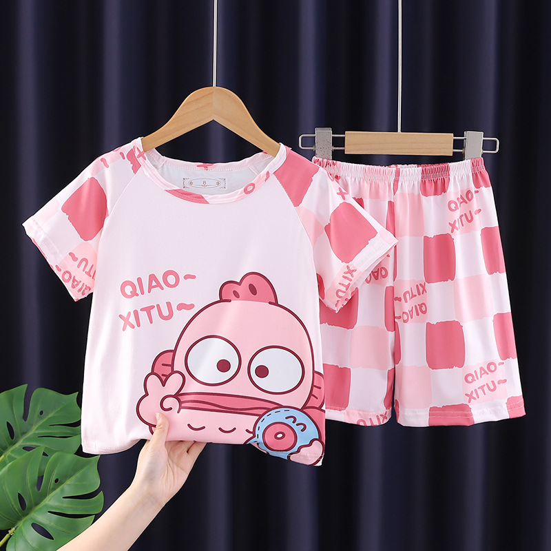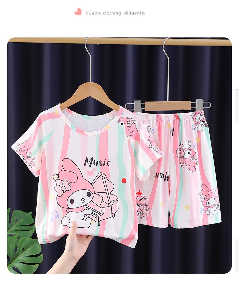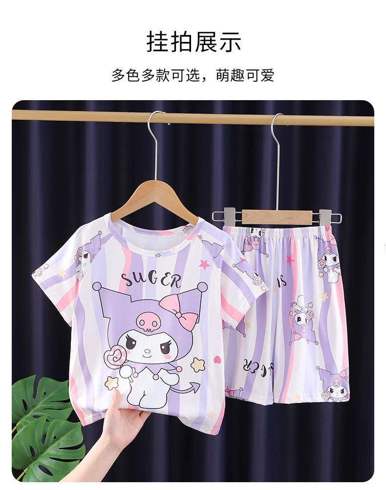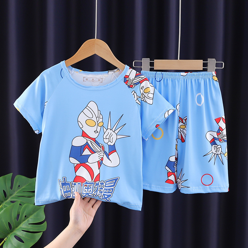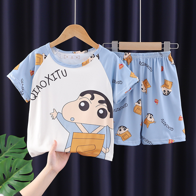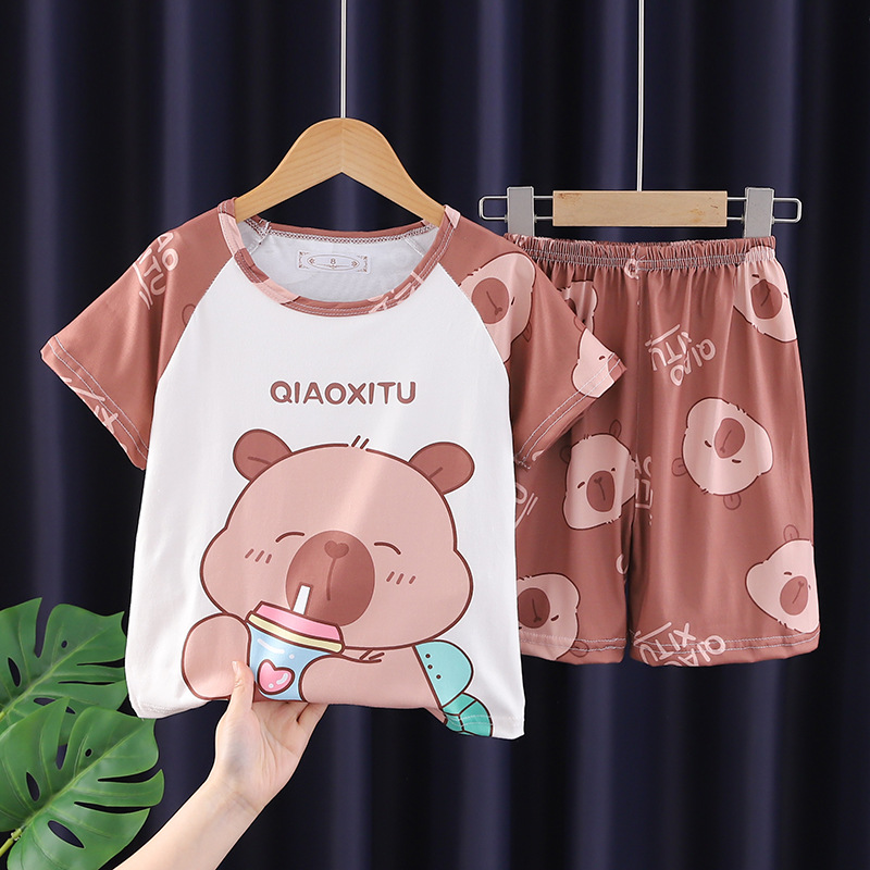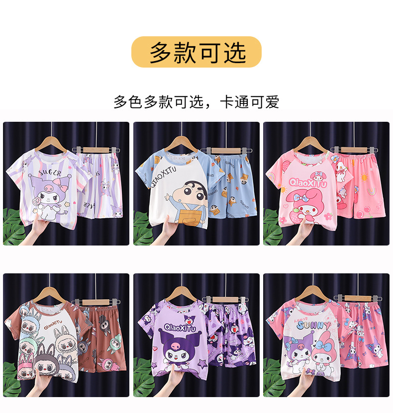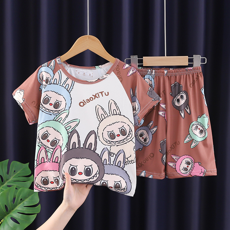 여름 소녀와 소년 잠옷 세트, 중대형 어린이를 위한 에어컨 옷, 얇은 만화 가정복, 짧은 세트, 밀크 실크스토어 가기