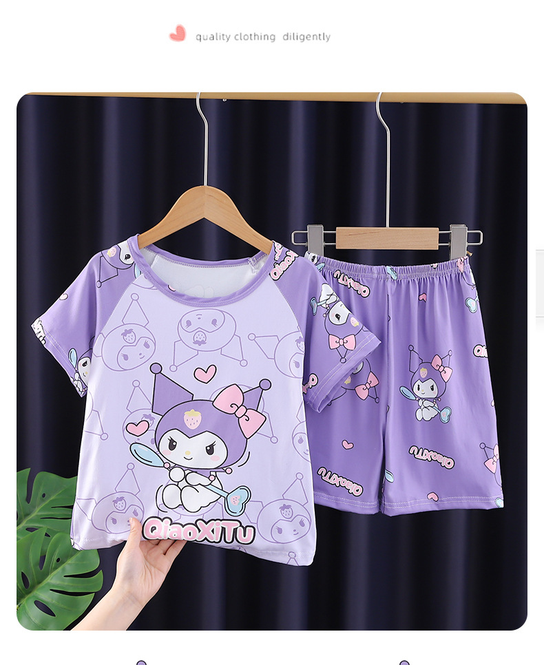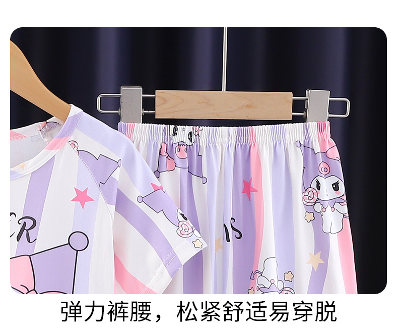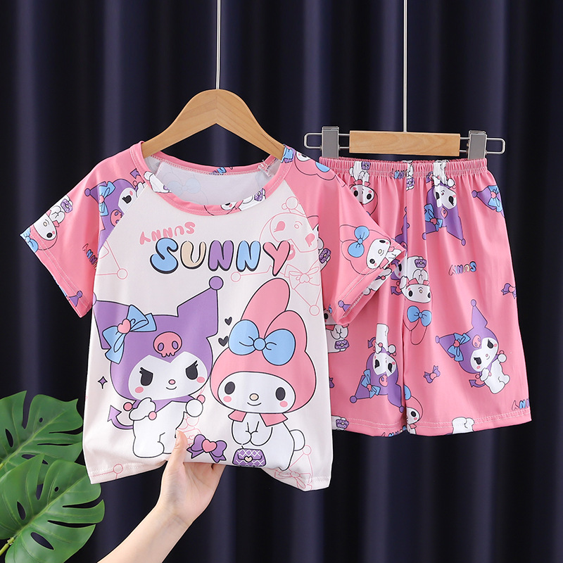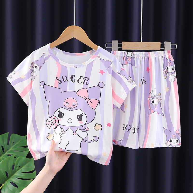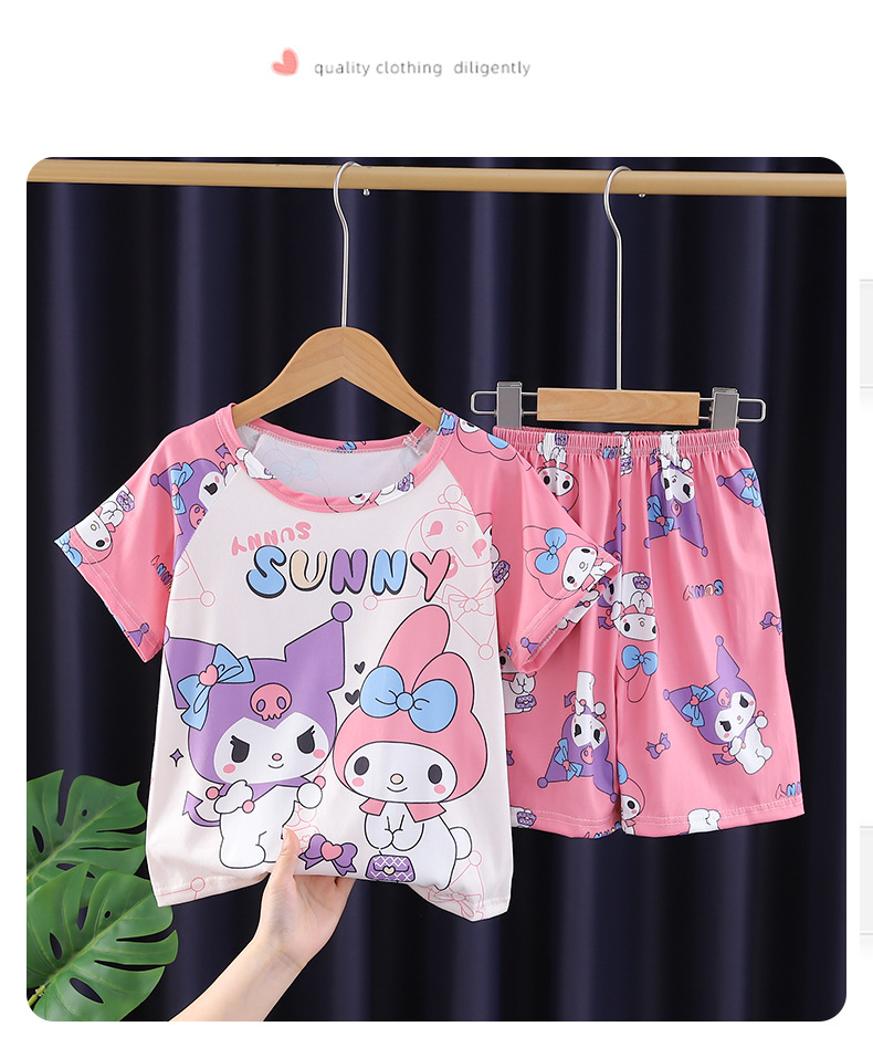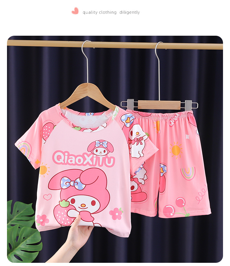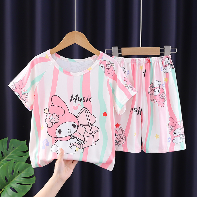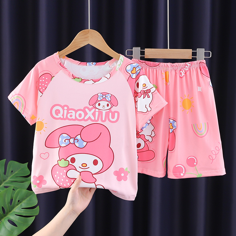 여름 소녀와 소년 잠옷 세트, 중대형 어린이를 위한 에어컨 옷, 얇은 만화 가정복, 짧은 세트, 밀크 실크스토어 가기