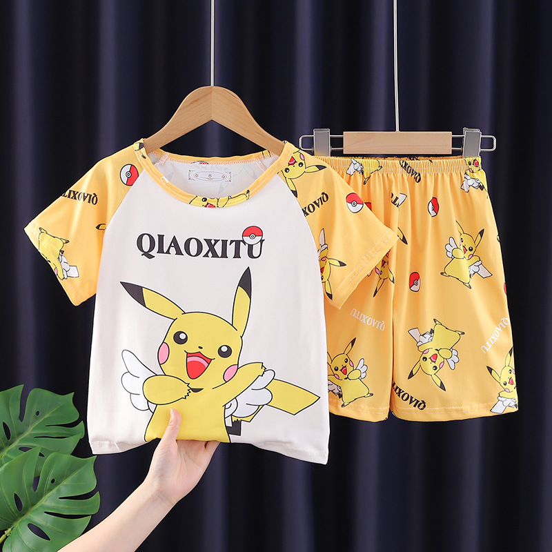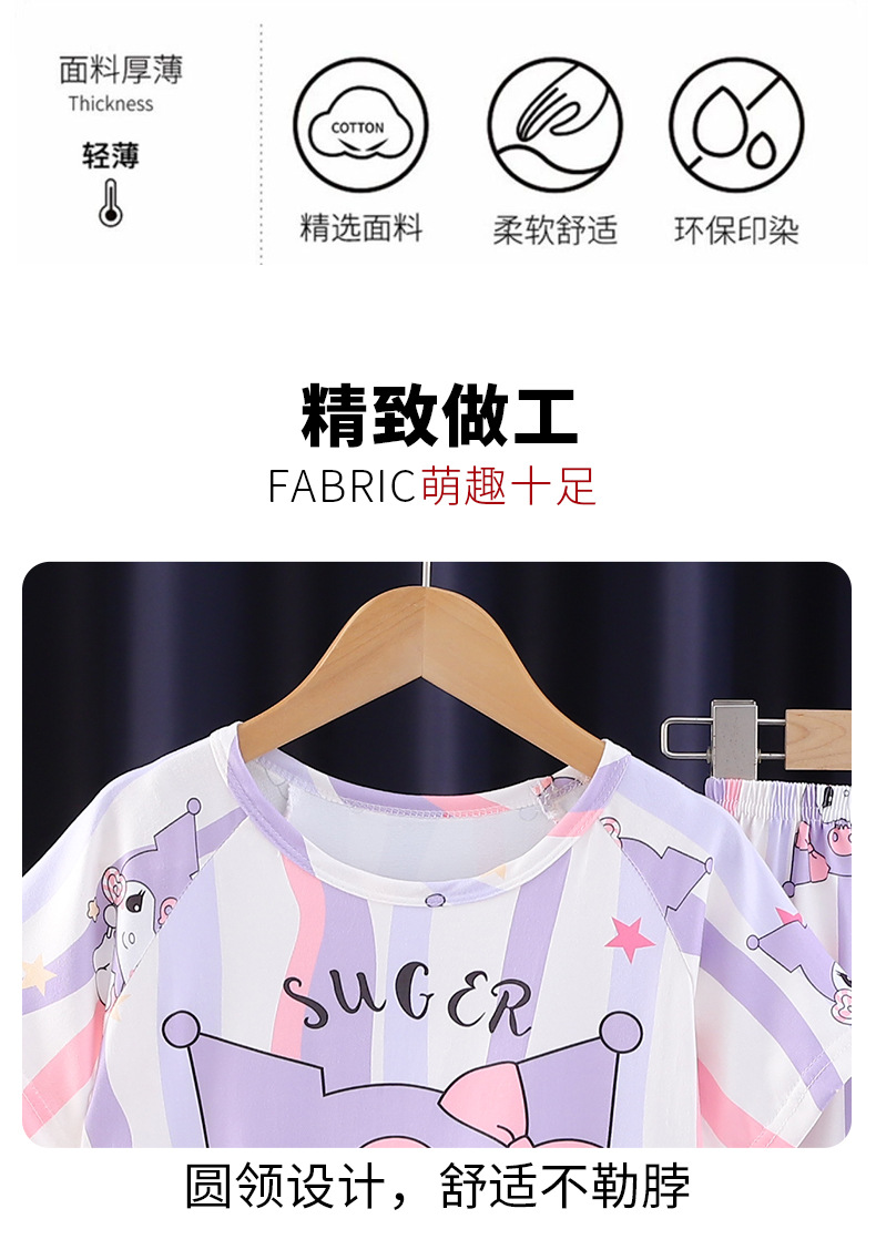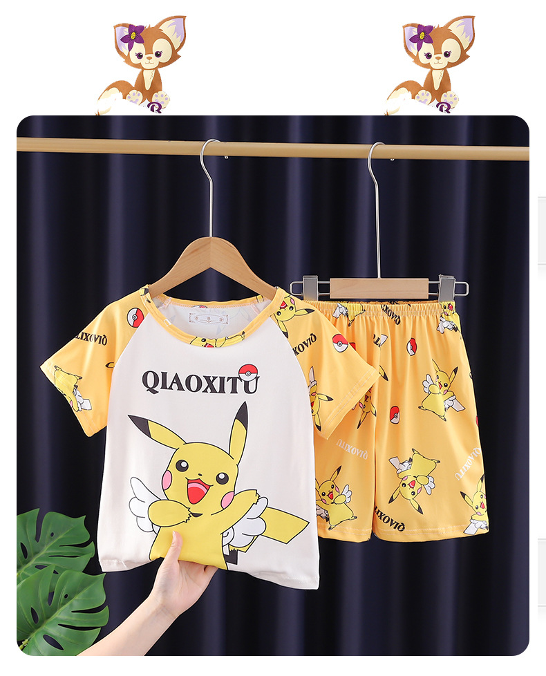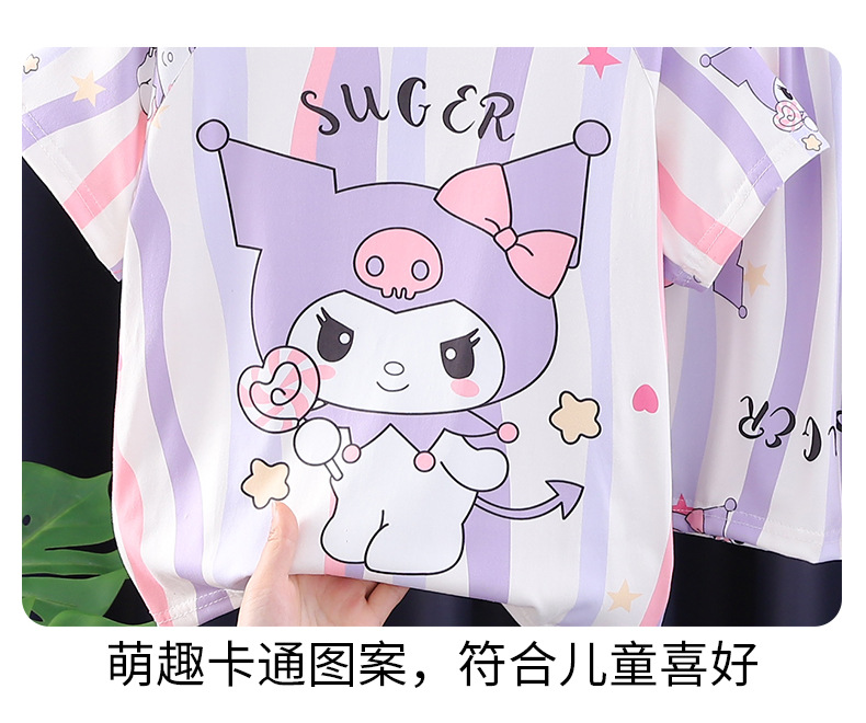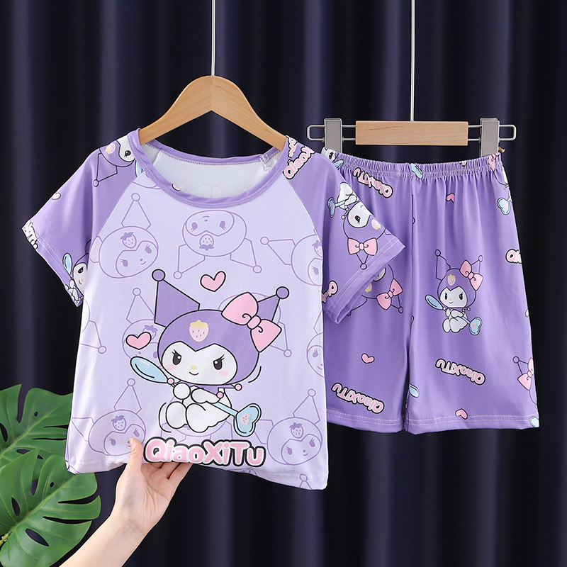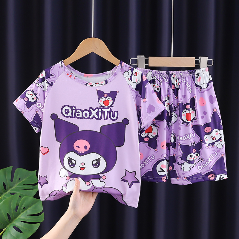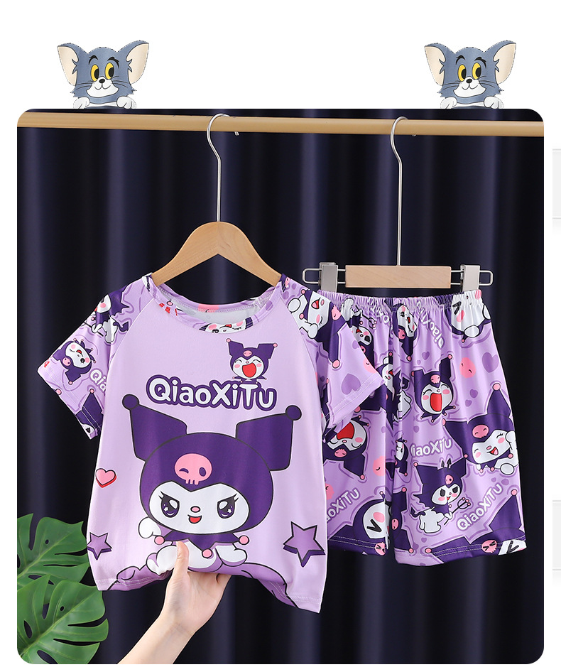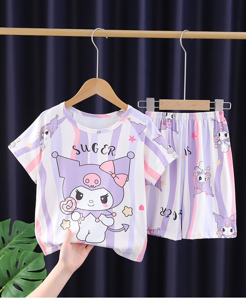 여름 소녀와 소년 잠옷 세트, 중대형 어린이를 위한 에어컨 옷, 얇은 만화 가정복, 짧은 세트, 밀크 실크스토어 가기