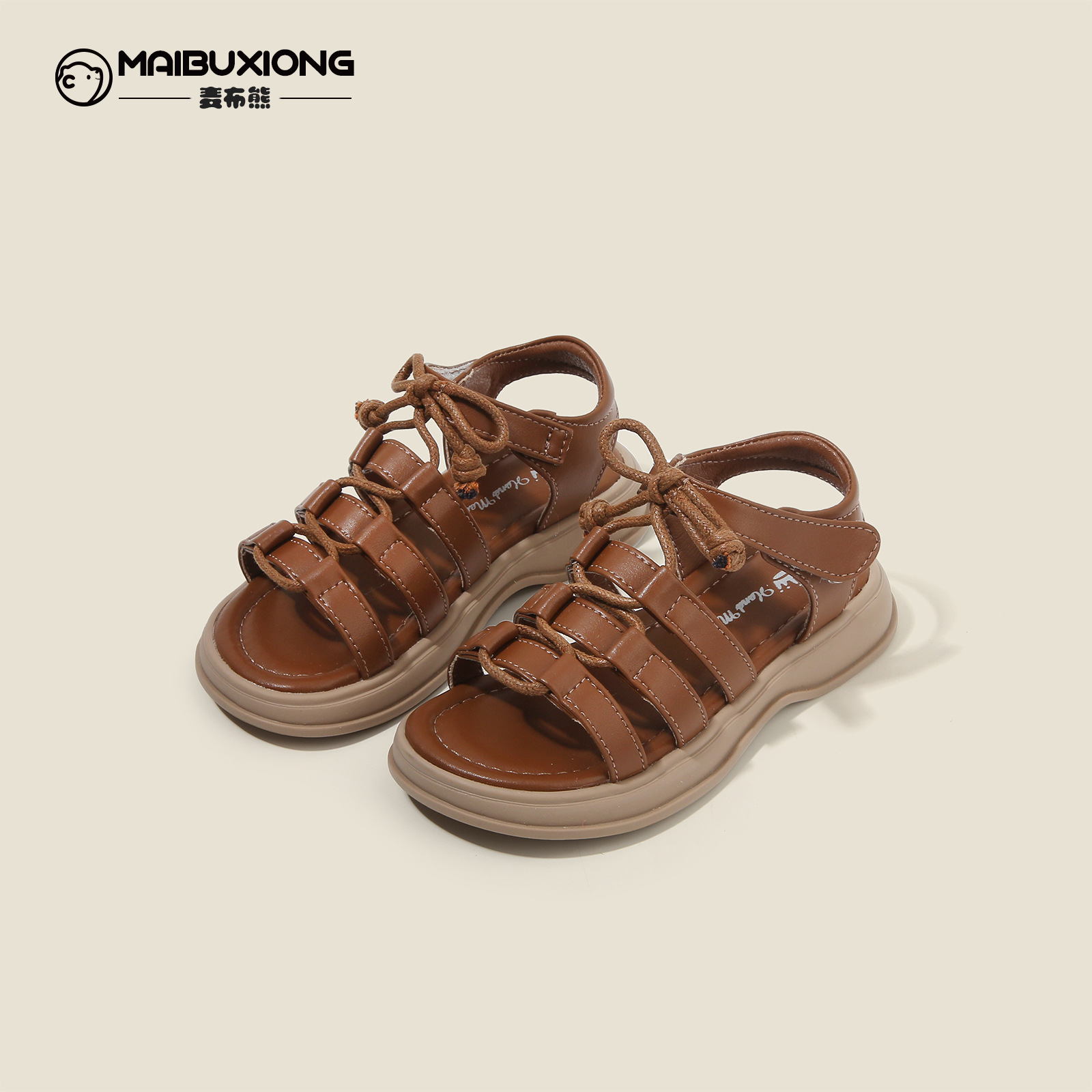 마이크 베어 어린이 신발 여름 어린이 소녀 한 단어 샌들 한국 스타일 중대형 어린이 신발 패션 로마 신발 소프트 솔